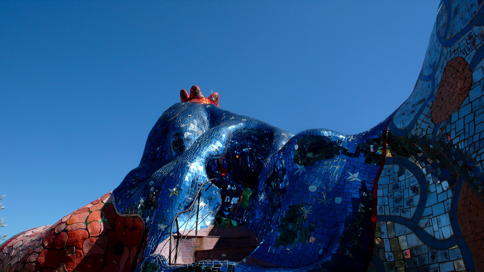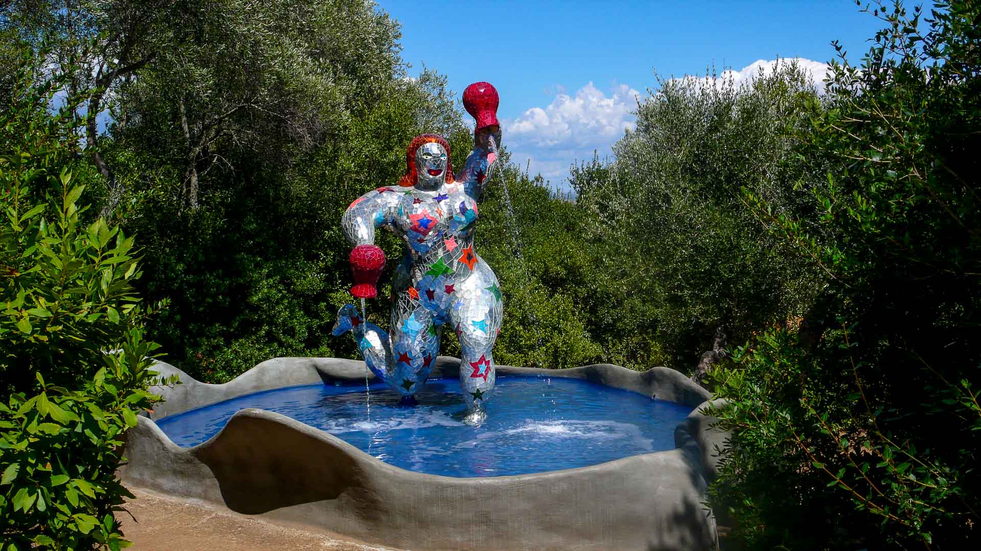 "En 1955 je suis allé à Barcelone ; là je vis le magnifique parc de Gaudi. Ce fut une rencontre importante de mon maître qui devait tracer la suite de mon destin. Je fus prise de panique. Je savais que j’étais incapable de construire un jardin du bonheur, un petit paradis, un point de rencontre de l’homme et de la nature et que 24 ans plus tard, je m’embarquerais dans la plus grande entreprise de ma vie "le jardin des tarots". Il est construit en Toscane, dans la propriété de mon ami Marella."