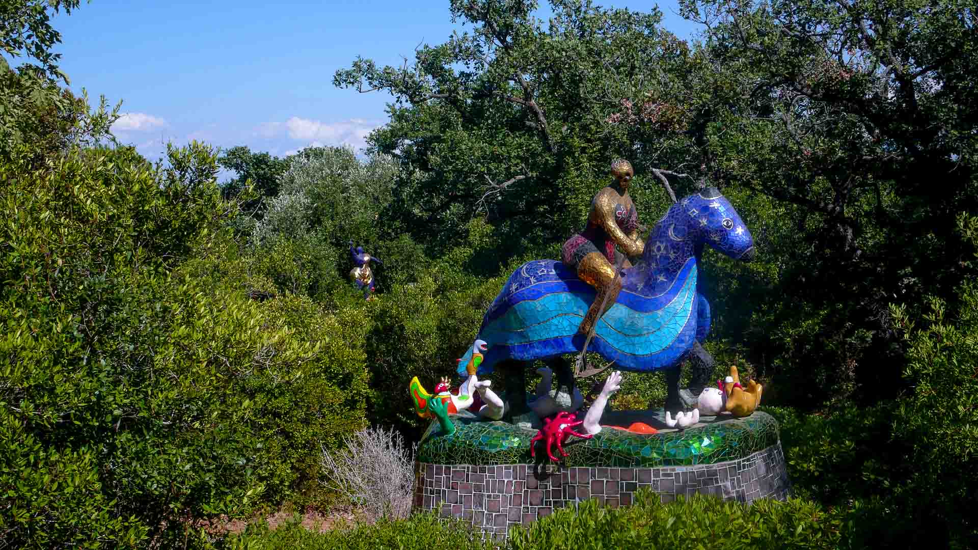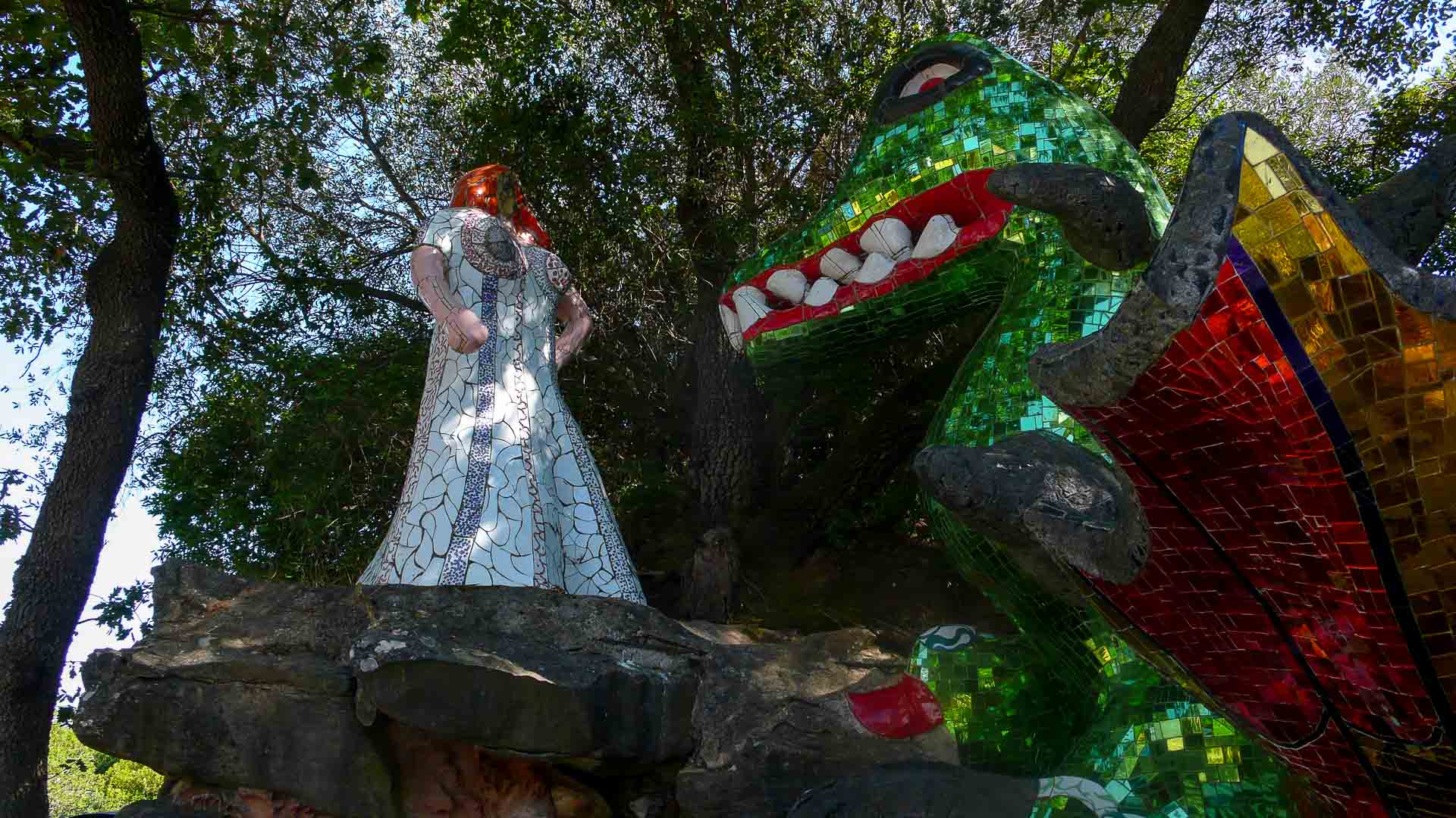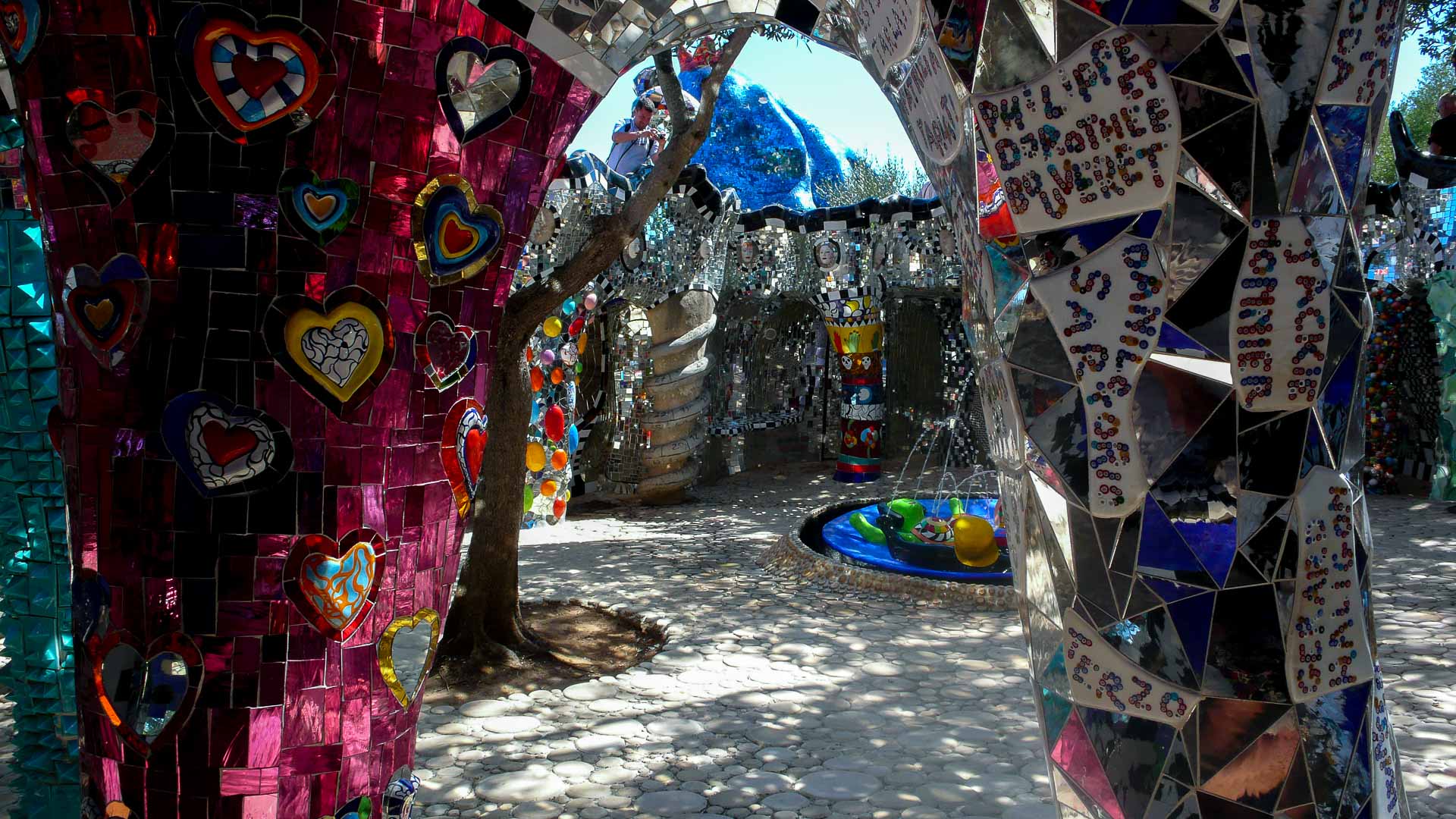 Le jardin des Tarots (Giardino dei Tarocchi) est une œuvre enchantée réalisée entre 1979 et 1993 par Niki de Saint Phalle (1930-2002) à Garavicchio de Pescia Fiorentina, une frazione de Capalbio en Toscane. Regroupés autour de l’impératrice, les vingt et une arcanes majeurs du tarot sont dispersés dans un jardin où la magie et l'imaginaire rencontrent l'esprit du jeu, du rêve et de la poésie.