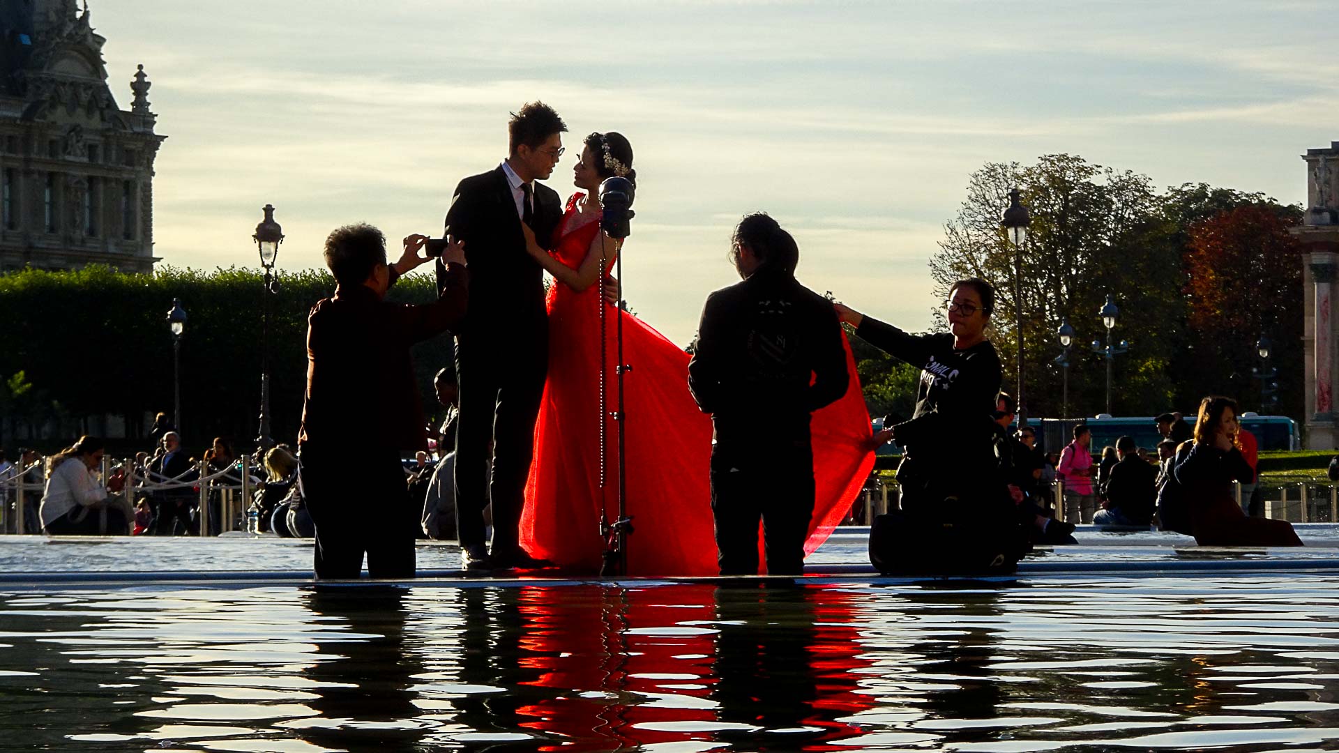 À quoi rêvent les acteurs de ces images du bonheur au cours de leur épuisant marathon photographique ? Les shoots parisiens de photos de mariages de ressortissant chinois tiennent plus de l'exploit sportif que du voyage romantique...