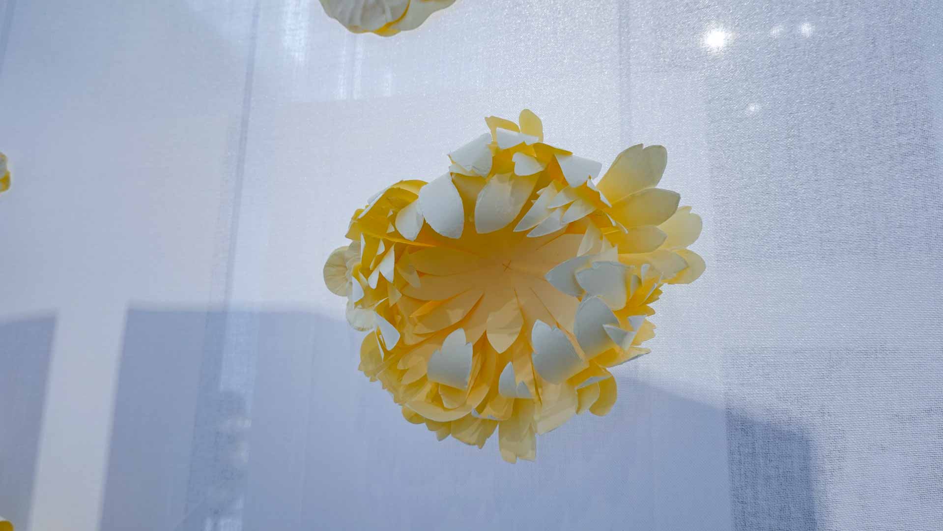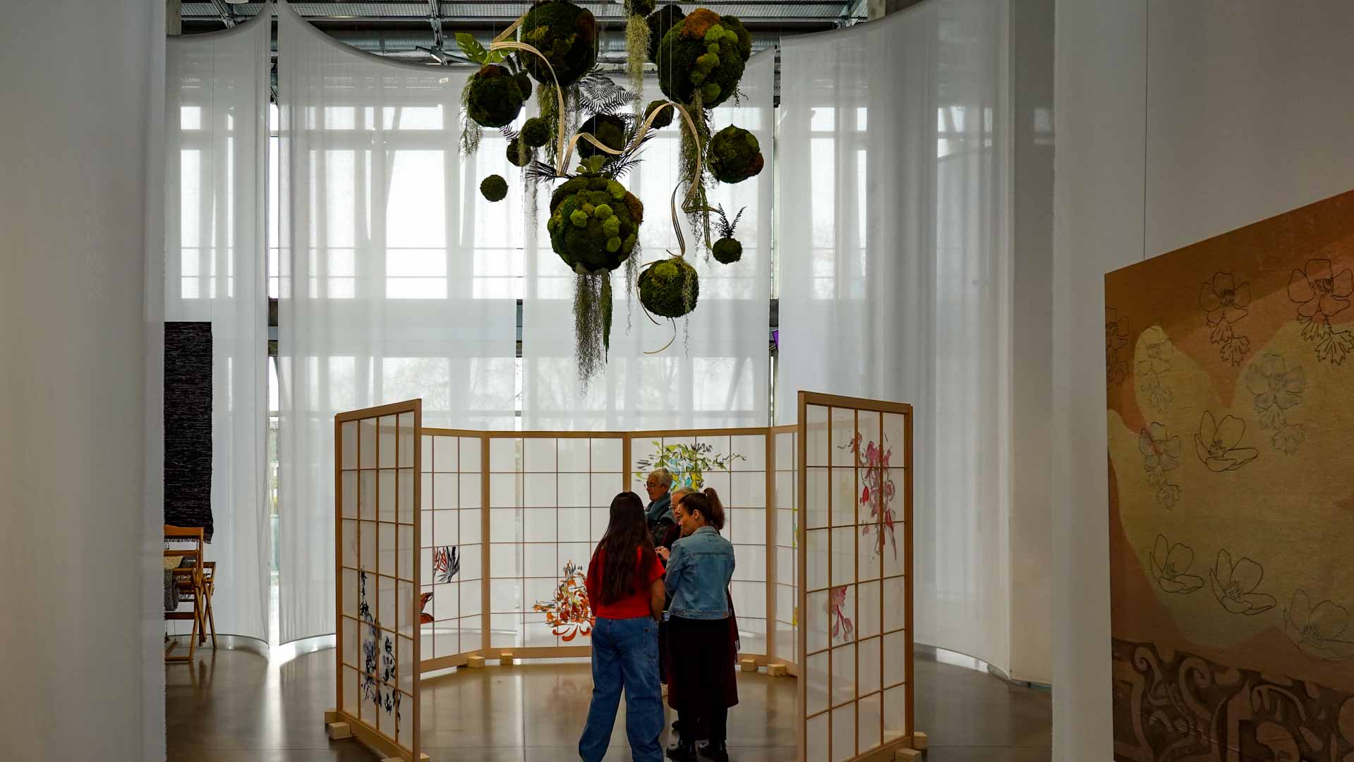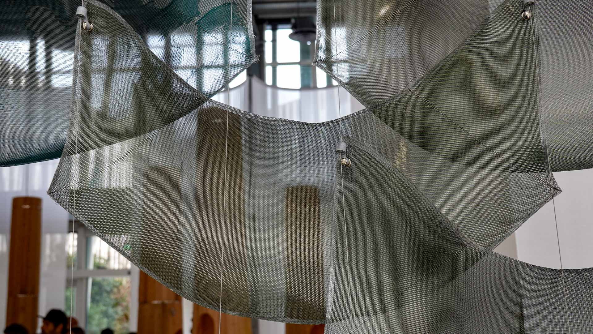 Le vent introduit le mouvement et la légèreté. Installations suspendues, textiles plissés ou formes aériennes jouent avec la transparence et la circulation de l’air, donnant au parcours un rythme et une respiration.