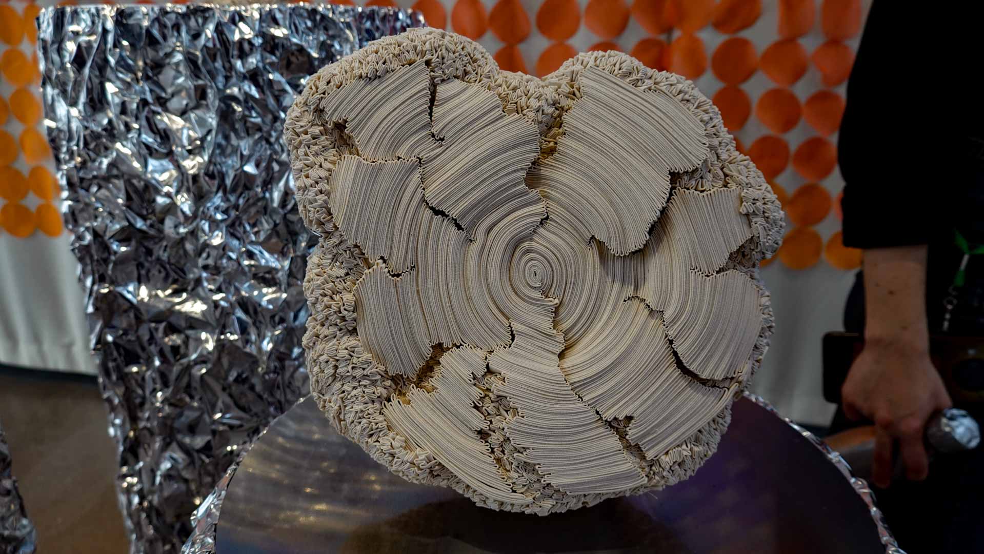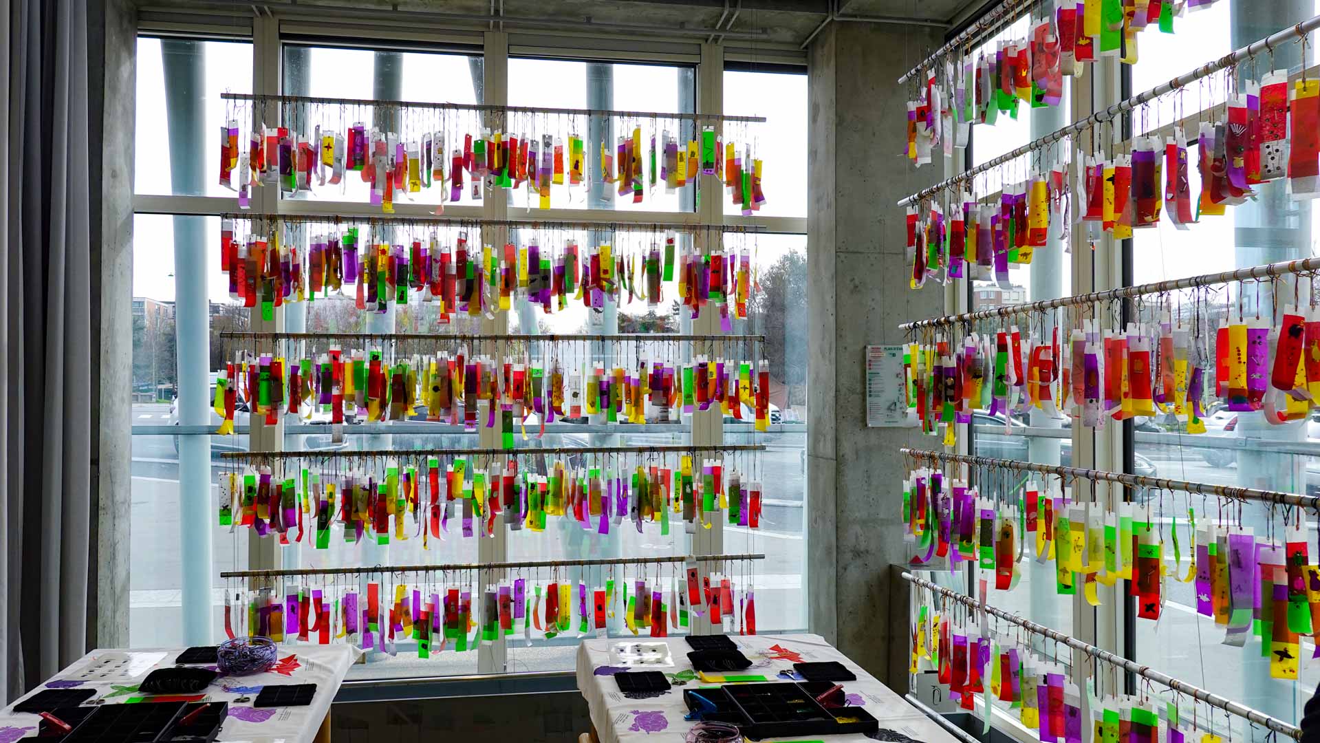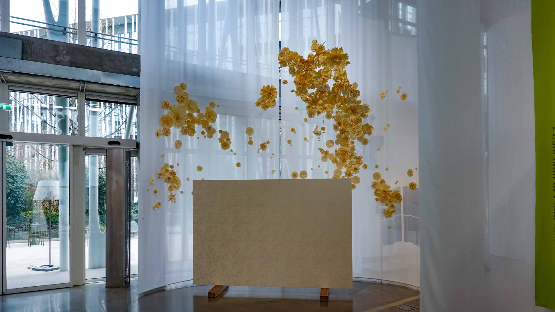 Le vent introduit le mouvement et la légèreté. Installations suspendues, textiles plissés ou formes aériennes jouent avec la transparence et la circulation de l’air, donnant au parcours un rythme et une respiration.