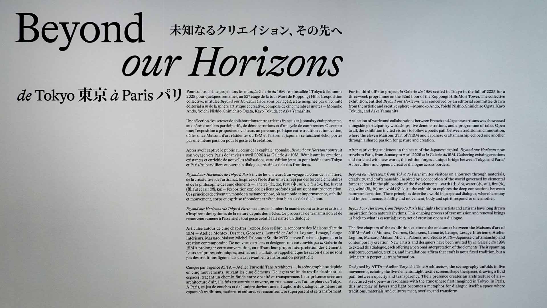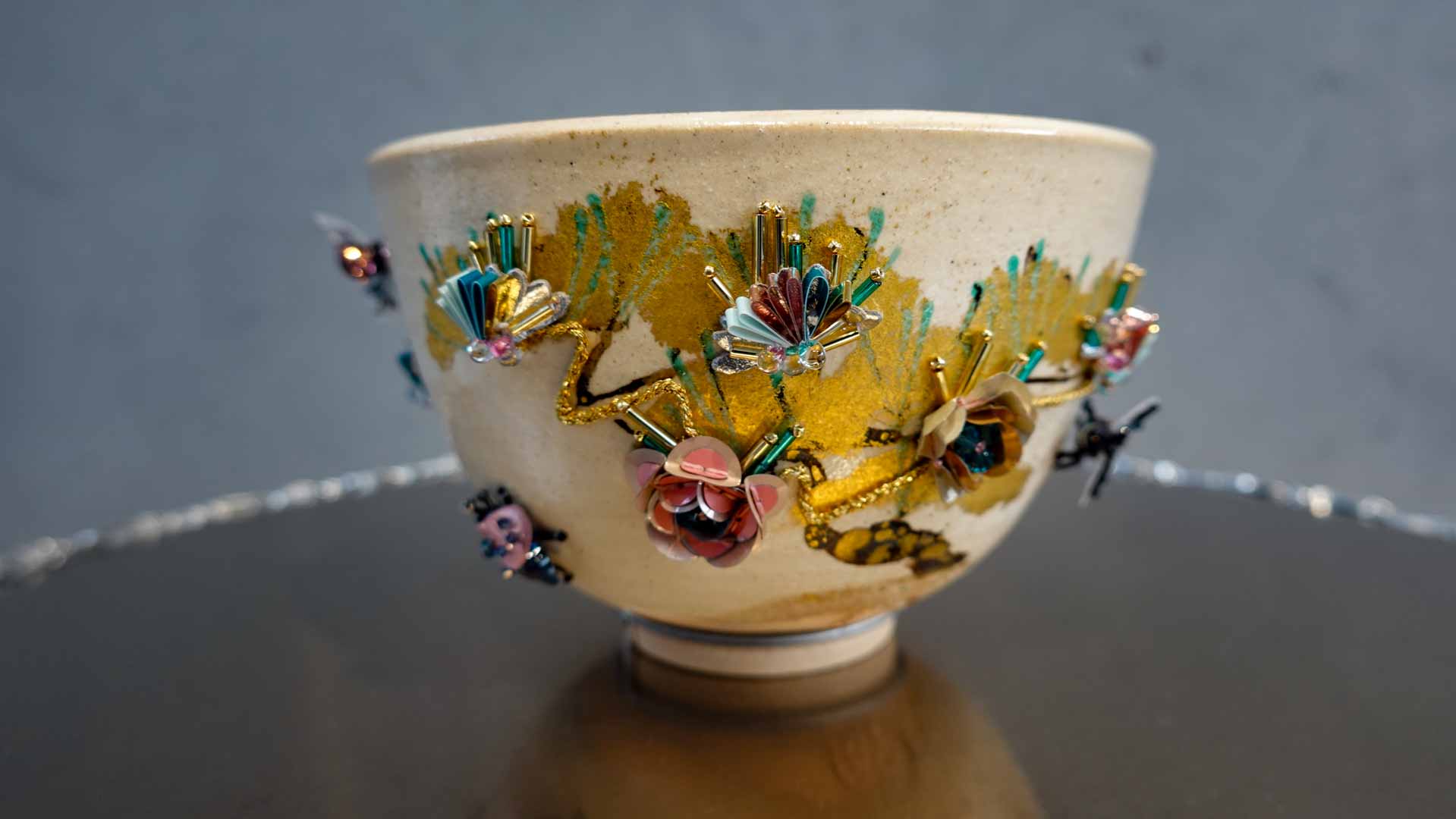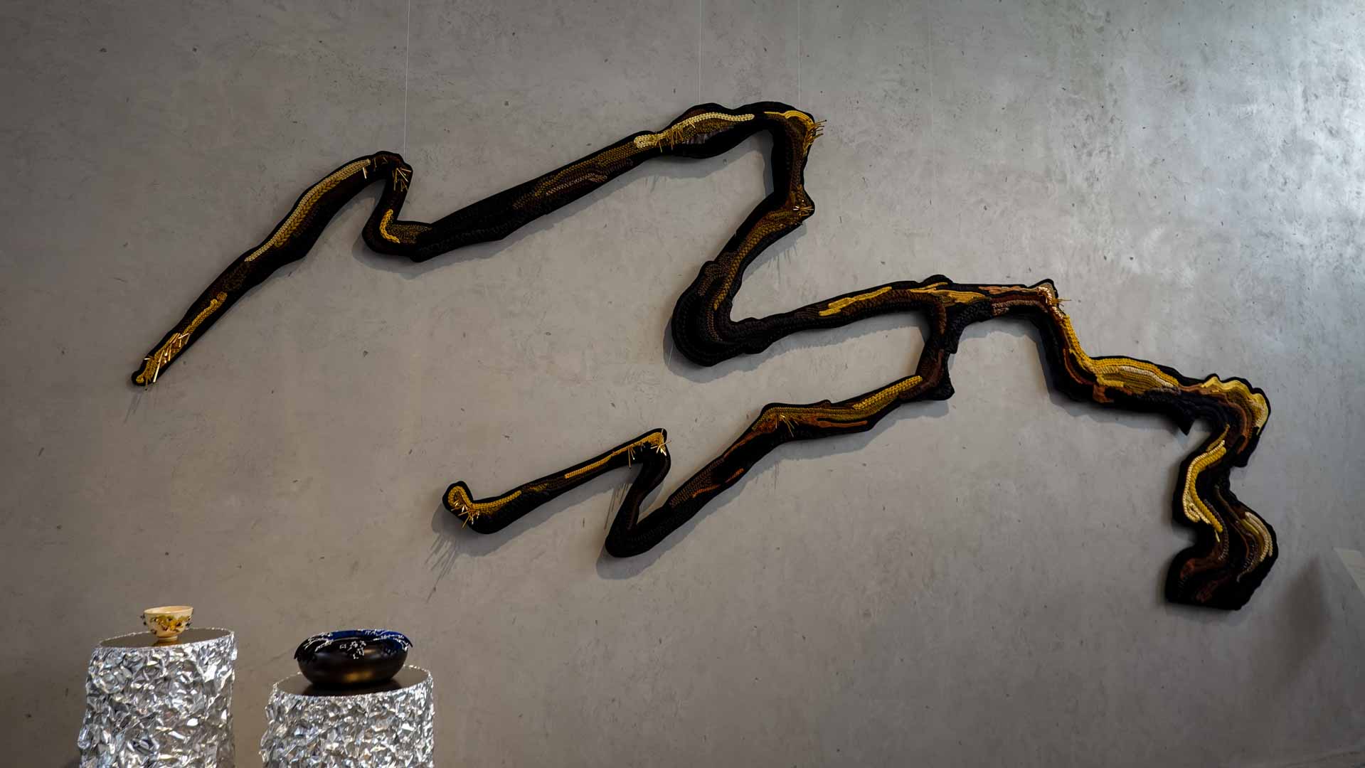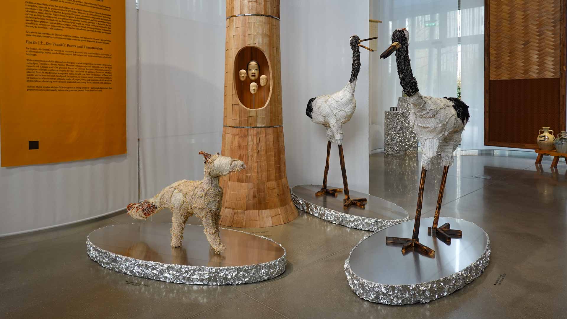 Structurée autour de la symbolique des cinq éléments — terre, eau, feu, vent et air — l’exposition propose un parcours qui explore les relations entre matière, geste artisanal et création contemporaine. À travers des œuvres et des collaborations entre artisans japonais et français, différents savoir-faire — céramique, textile, bois, broderie ou installation — entrent en dialogue et révèlent la richesse des techniques et des matériaux.
