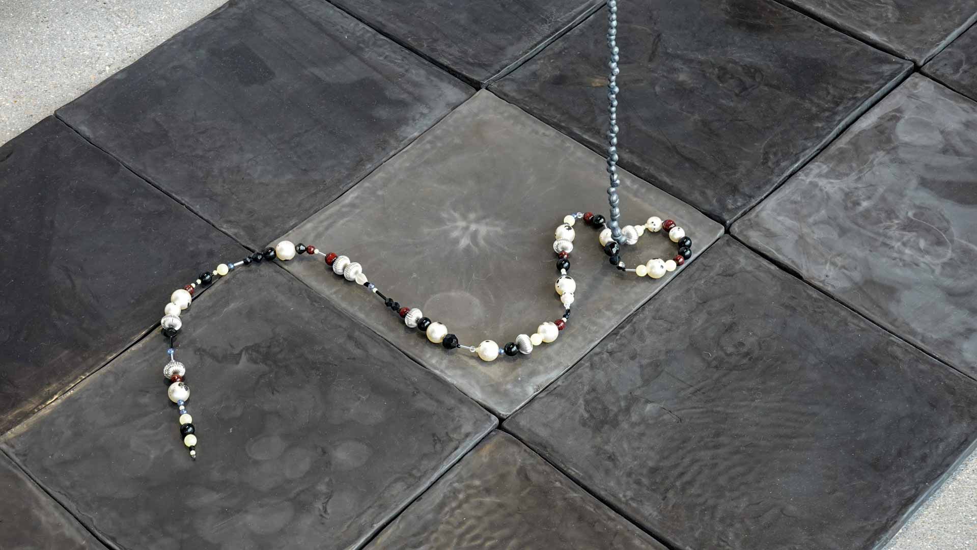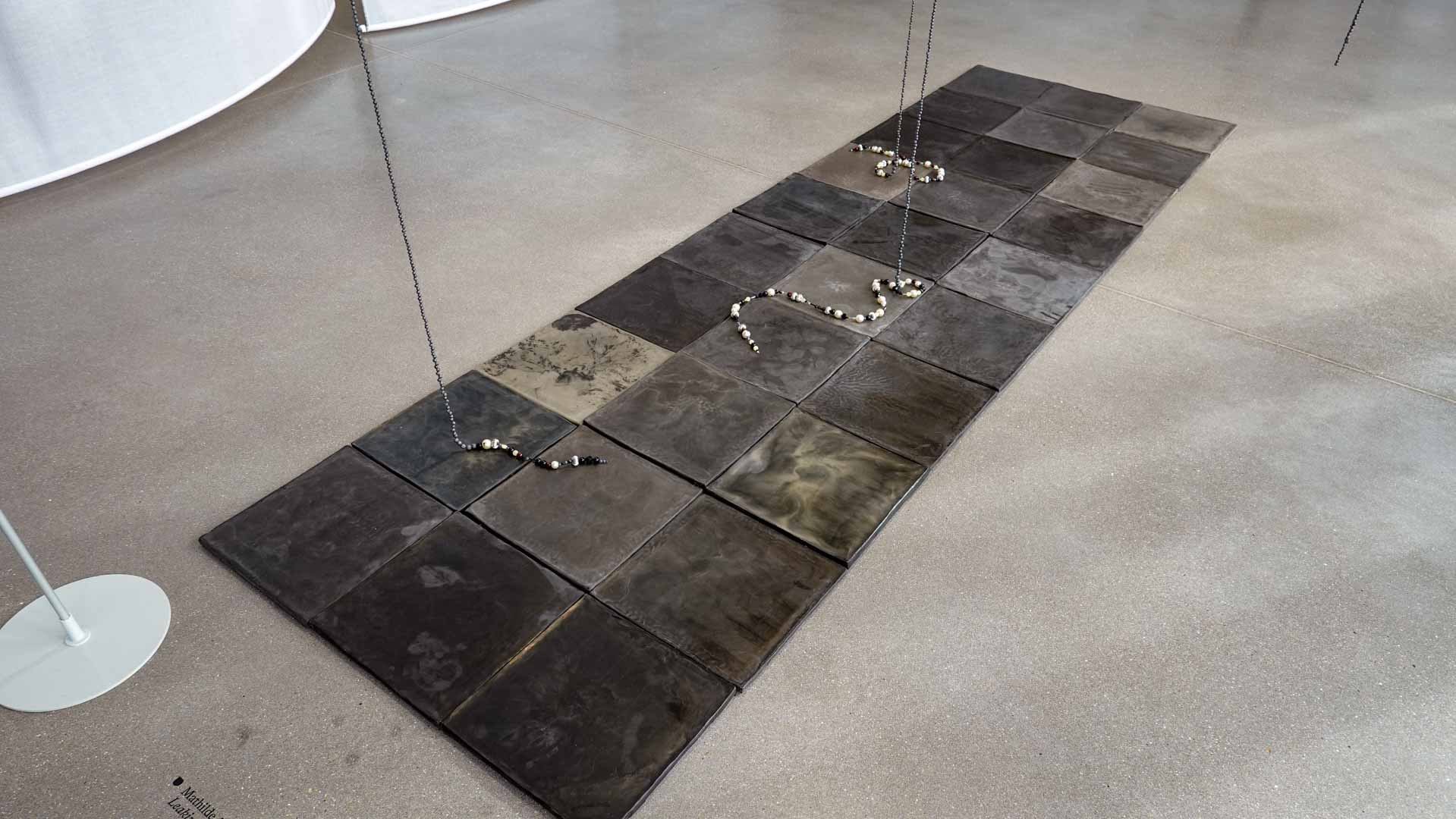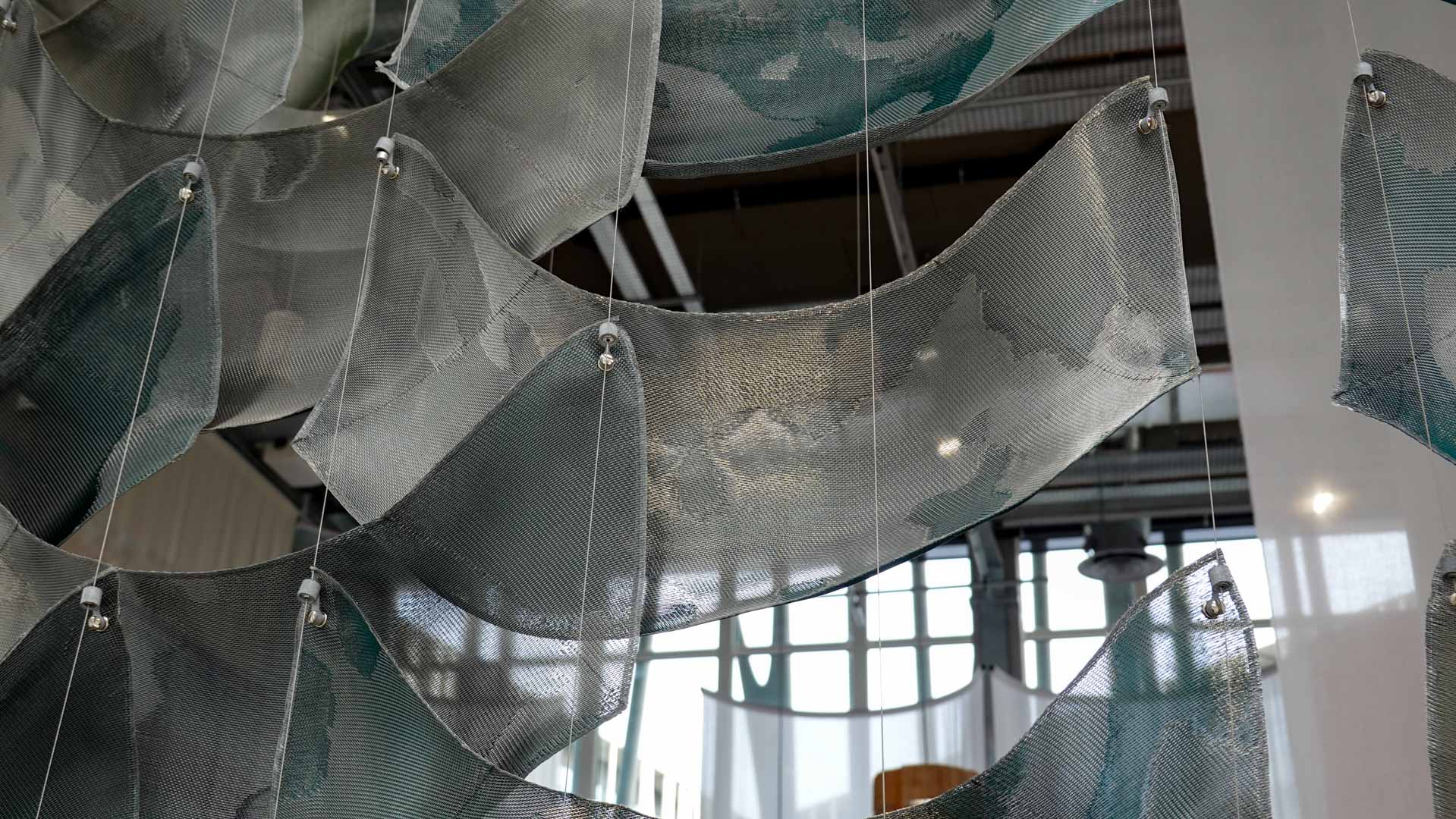 L’eau suggère la fluidité et la circulation. Textiles teints, surfaces souples ou compositions aux formes ondoyantes évoquent les mouvements et les transformations qui accompagnent les processus de création.