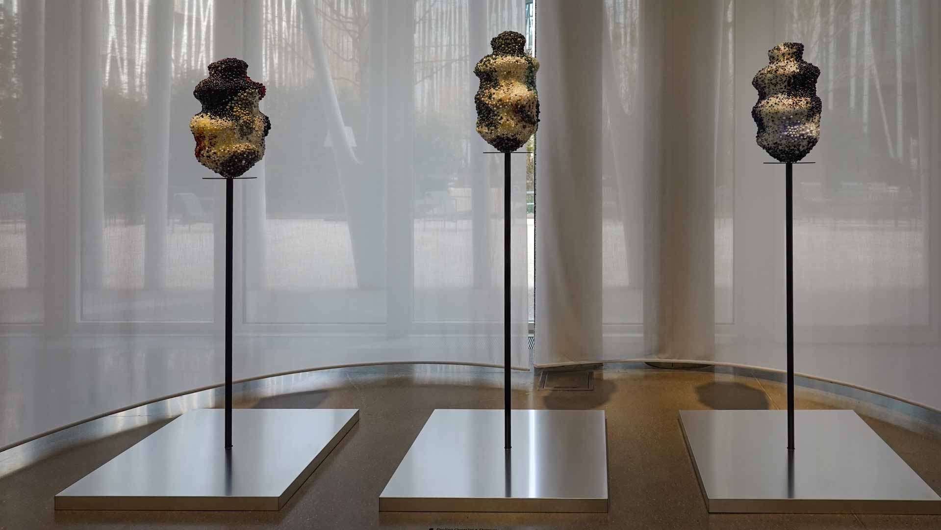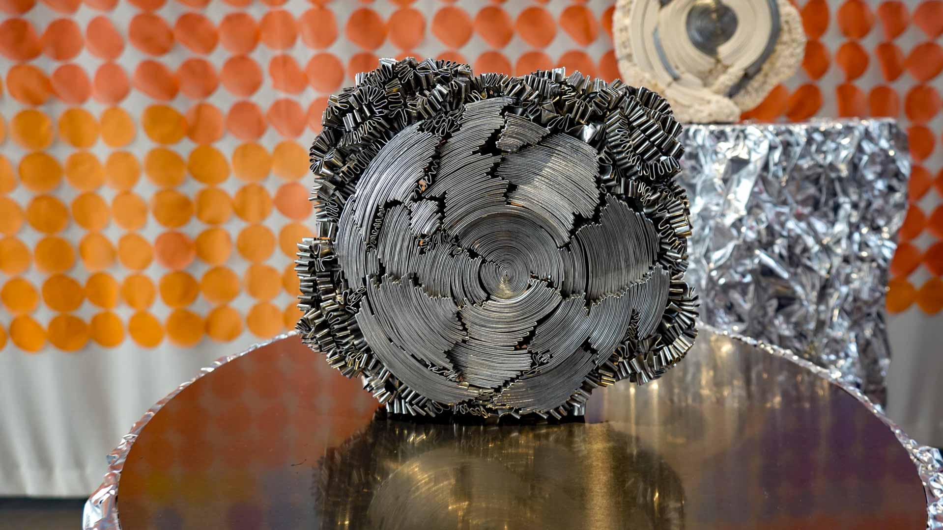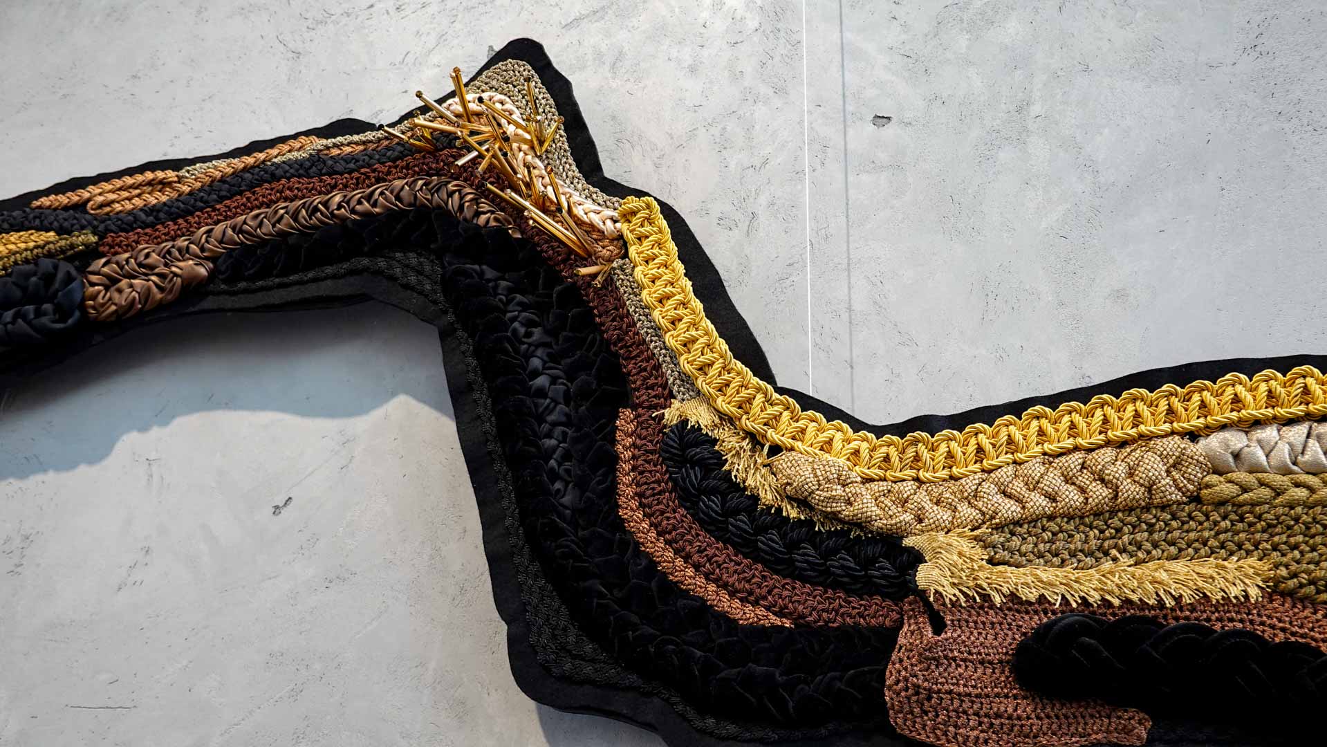 L’eau suggère la fluidité et la circulation. Textiles teints, surfaces souples ou compositions aux formes ondoyantes évoquent les mouvements et les transformations qui accompagnent les processus de création.