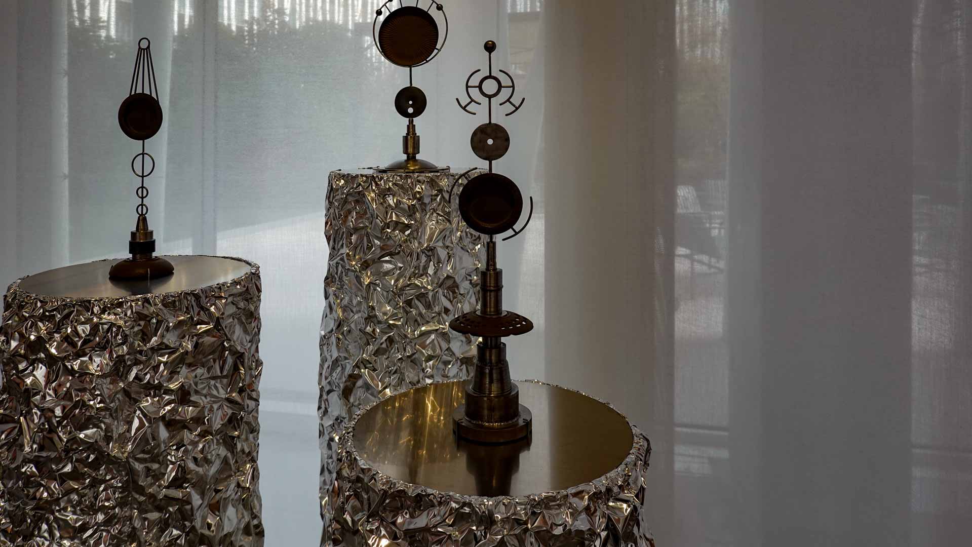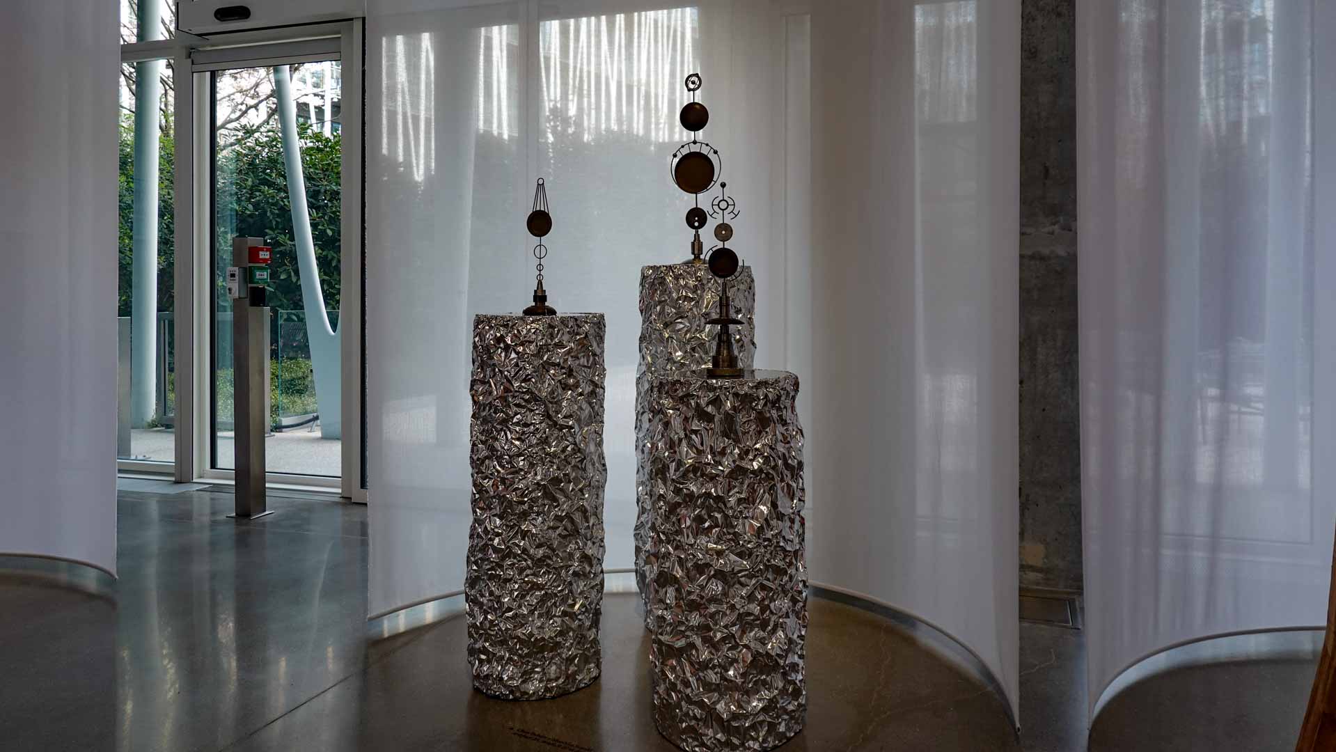 Enfin, l’air renvoie à l’espace et au vide qui relient les œuvres entre elles. Installations lumineuses, structures ouvertes et compositions minimalistes mettent en évidence la dimension immatérielle de l’exposition, où la lumière, la perception et l’équilibre deviennent des éléments à part entière.