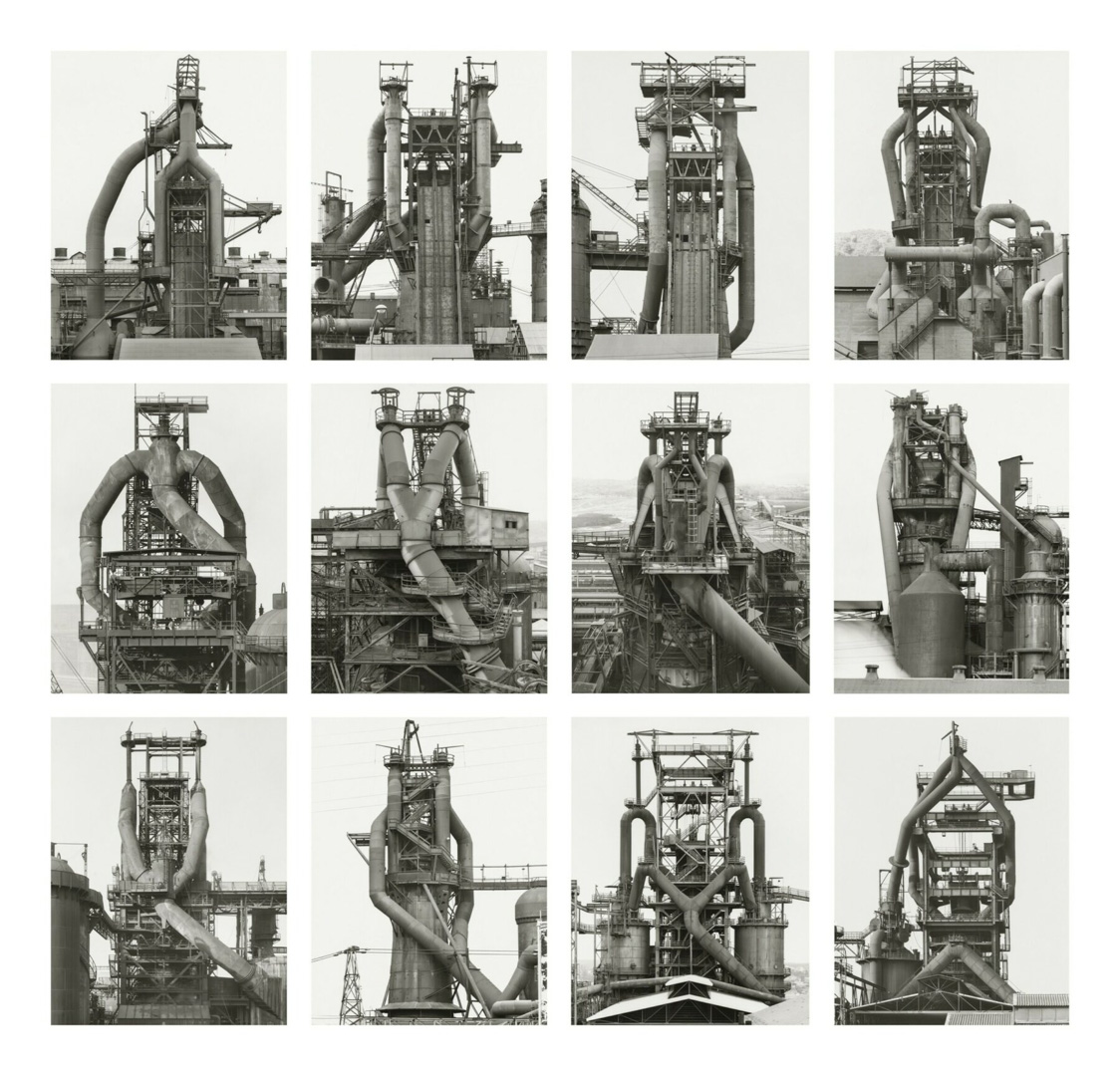 Nés en Allemagne au début des années 1930, ils commencent leur collaboration à la fin des années 1950 dans un contexte de transformation industrielle rapide. Leur projet prend alors la forme d’un inventaire méthodique d’architectures en voie de disparition, parcourant l’Europe et les États-Unis sur plusieurs décennies. À travers cette entreprise, ils documentent non seulement des formes, mais aussi la fin d’un monde industriel, tout en refusant toute dimension nostalgique ou expressive.