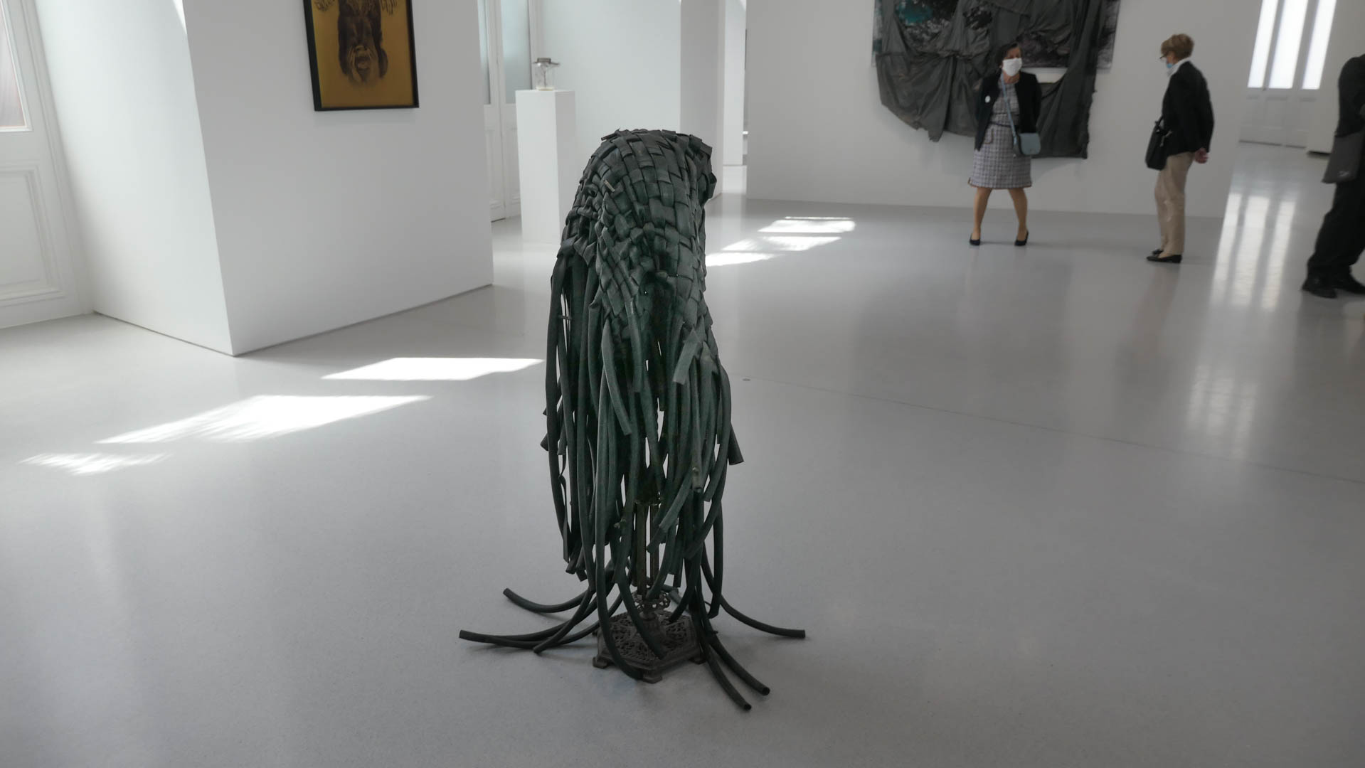 Aiguillonné par le racisme ordinaire et le statut des afro-américains dans la société américaine, marqué par l’Arte povera, Hammons, génie de l’assemblage précaire et de l’infime, recycle les objets glanés dans le quotidien en convoquant de savantes références à l’histoire de l’art… Ces trouvailles, dérisoires bric-à-brac, errances, protestations politiques, braquent une lumière crue sur la misère d’Harlem, spolié de sa culture originale – le jazz – par le consumérisme.