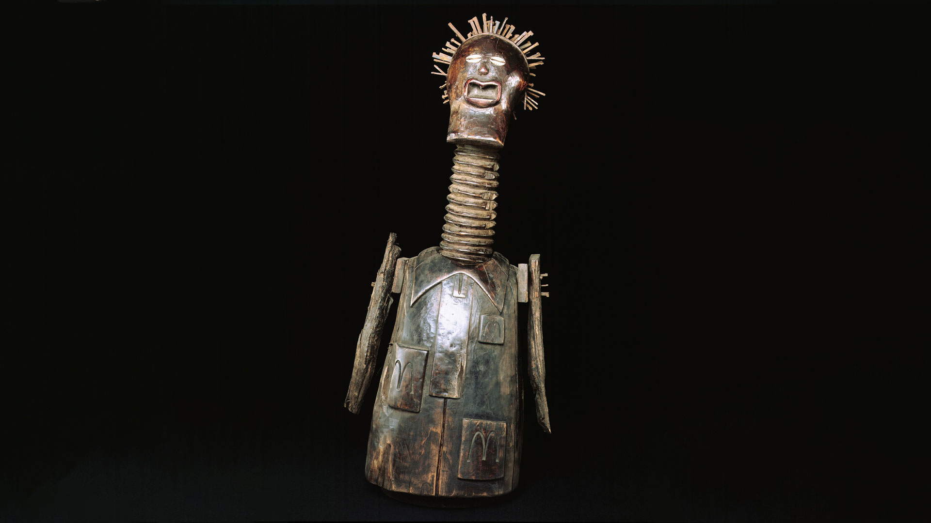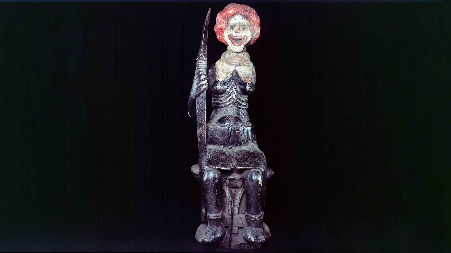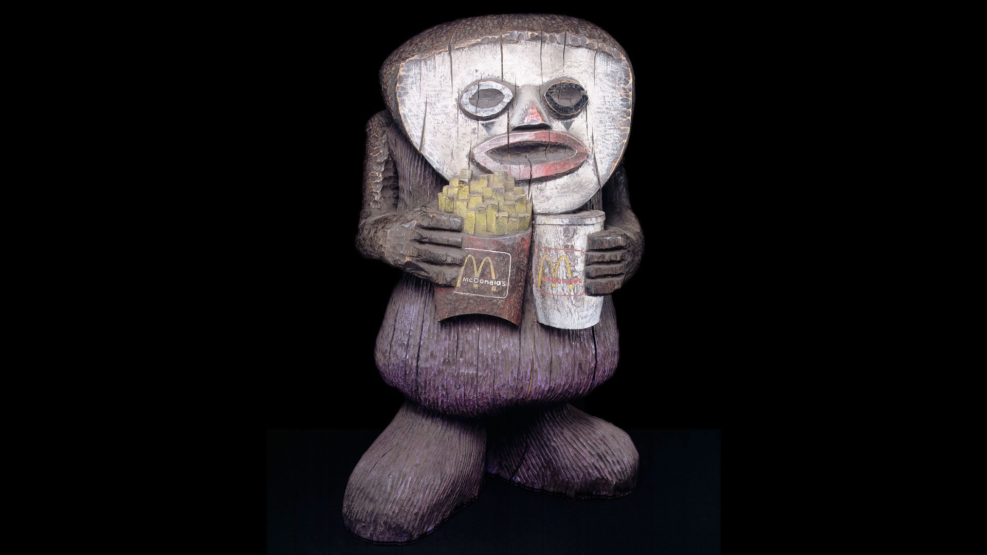 En réalité, ces sculptures, récemment réalisées à la demande des frères Chapman dans divers ateliers africains, sont inspirées des symboles emblématiques de la chaîne de restauration McDonald’s : le clown Ronald, les produits alimentaires et les logos.