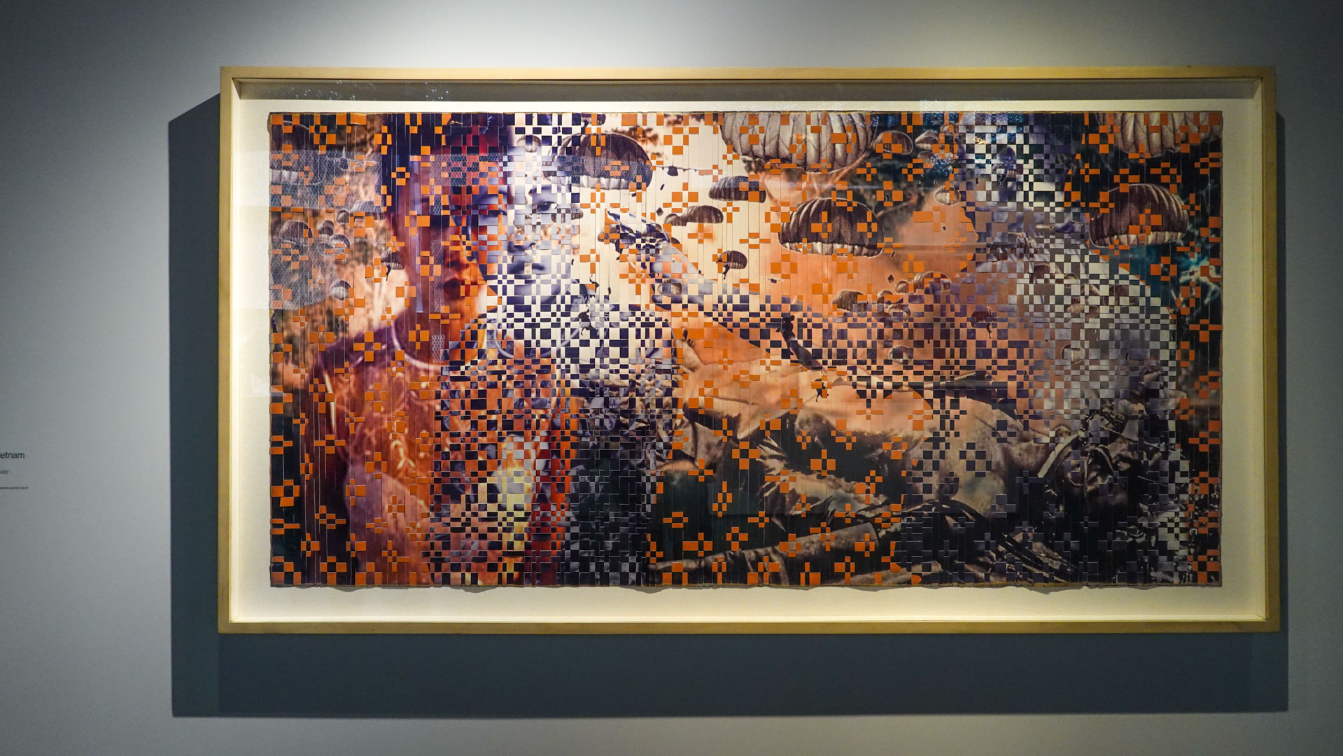 "Dinh Q. Lê conçoit des installations en utilisant des photographies vernaculaires et produit des images hybrides en mêlant divers registres de photographies. Il utilise une technique de tissage d’images inspirée des gestes de sa tante nattant des tapis.