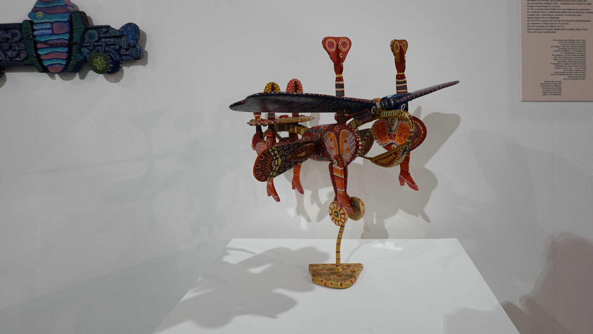 "La Fabuloserie, une collection sous le vent de l’art brut qui, si elle poursuit la démarche initiale de Jean Dubuffet, s’en écarte librement pour imposer le regard, le goût et la sensibilité de ses fondateurs. A la croisée de l’art brut, de l’art naïf et de l’art populaire, également ouvert sur les cultures extra occidentales, l’art hors-les-normes de La Fabuloserie n’a cessé d’accueillir les œuvres singulières de créateurs dépourvus de soucis esthétiques, qui ne se disent ou ne se pensent pas professionnels de l’art.