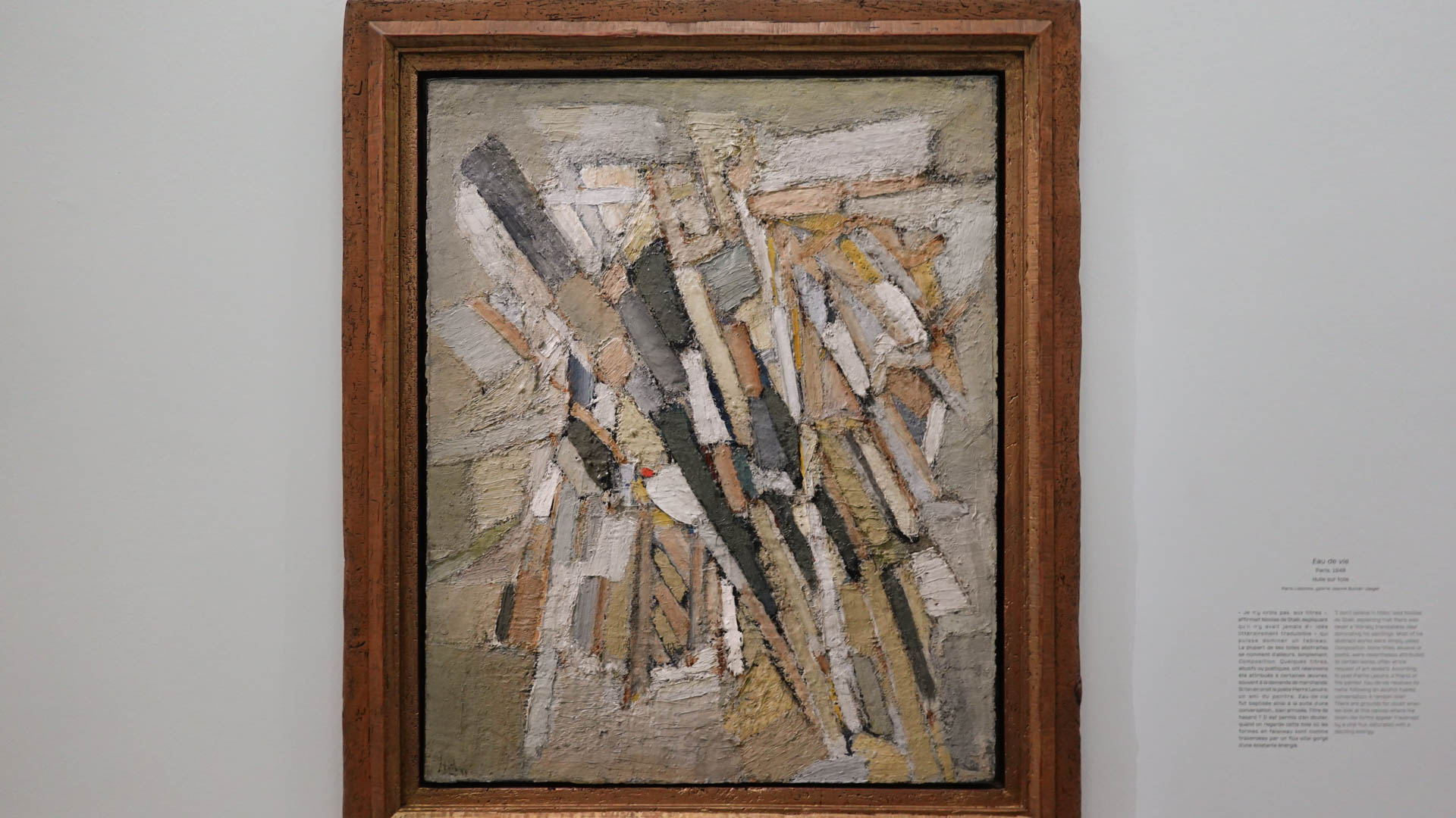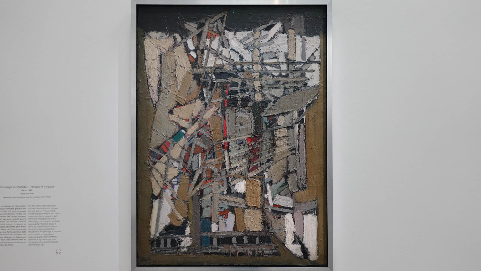 "Enfant exilé devenu voyageur infatigable, Nicolas de Staël se distingue par une fascination profonde pour les spectacles du monde et les jeux de lumière qui les animent. Son exploration artistique couvre une variété de sujets, qu'il s'agisse de la mer, d'un match de football, ou simplement d'un fruit posé sur une table. Staël expérimente sans relâche avec différents outils, techniques et formats, passant du tableau intimiste aux compositions monumentales. Il affectionne particulièrement travailler plusieurs toiles simultanément, les superposant et les modifiant au fil du processus créatif, où le dessin joue un rôle crucial pour exprimer sa quête expérimentale.