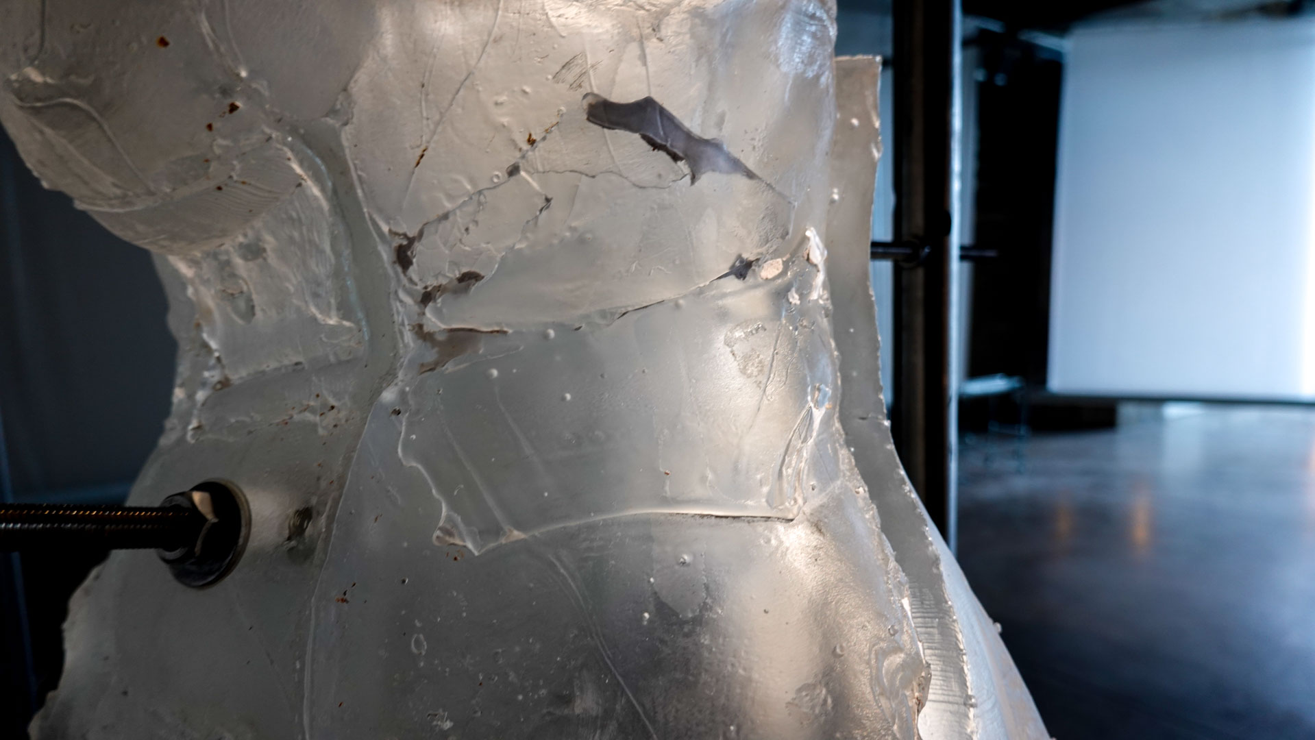 Les fragments ainsi obtenus sont manipulés, augmentés, par la pose de broches, de prothèses, des assemblages et autres interventions chirurgicales. Ils deviennent corps de verre, d’argile et de gypse, à travers la production de tirages qui ont mobilisé de nombreux artisans et nécessité la mise au point d’une ingénierie et de savoir-faire spécialisés. Les figures qui en naissent, hybridées par ces opérations successives, deviennent peu à peu des projections spectrales, des chimères, les membres d’une société post-humaine où cohabitent et fusionnent les corps dans leur diversité.