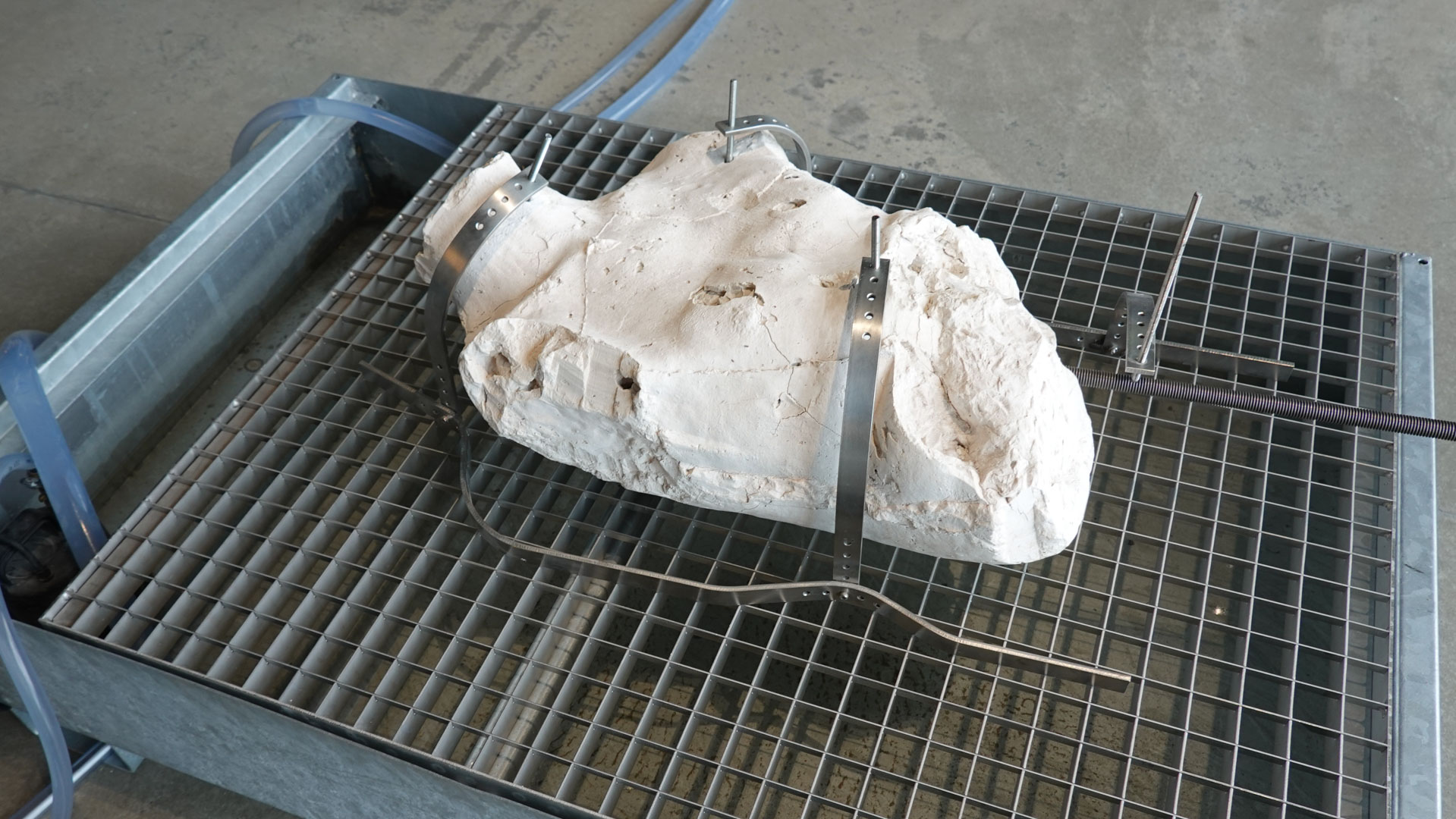 "Tout commence par la constitution d’une bibliothèque de corps, alimentée de moulages réalisés à même la peau par l’artiste dans son atelier. Un processus anatomique intime et minutieux, qui permet de saisir l’empreinte détaillée des chairs des modèles qui ont accepté de se prêter à ce pénible exercice : figer ses mouvements pendant des heures, prisonniers du plâtre qui se rigidifie.