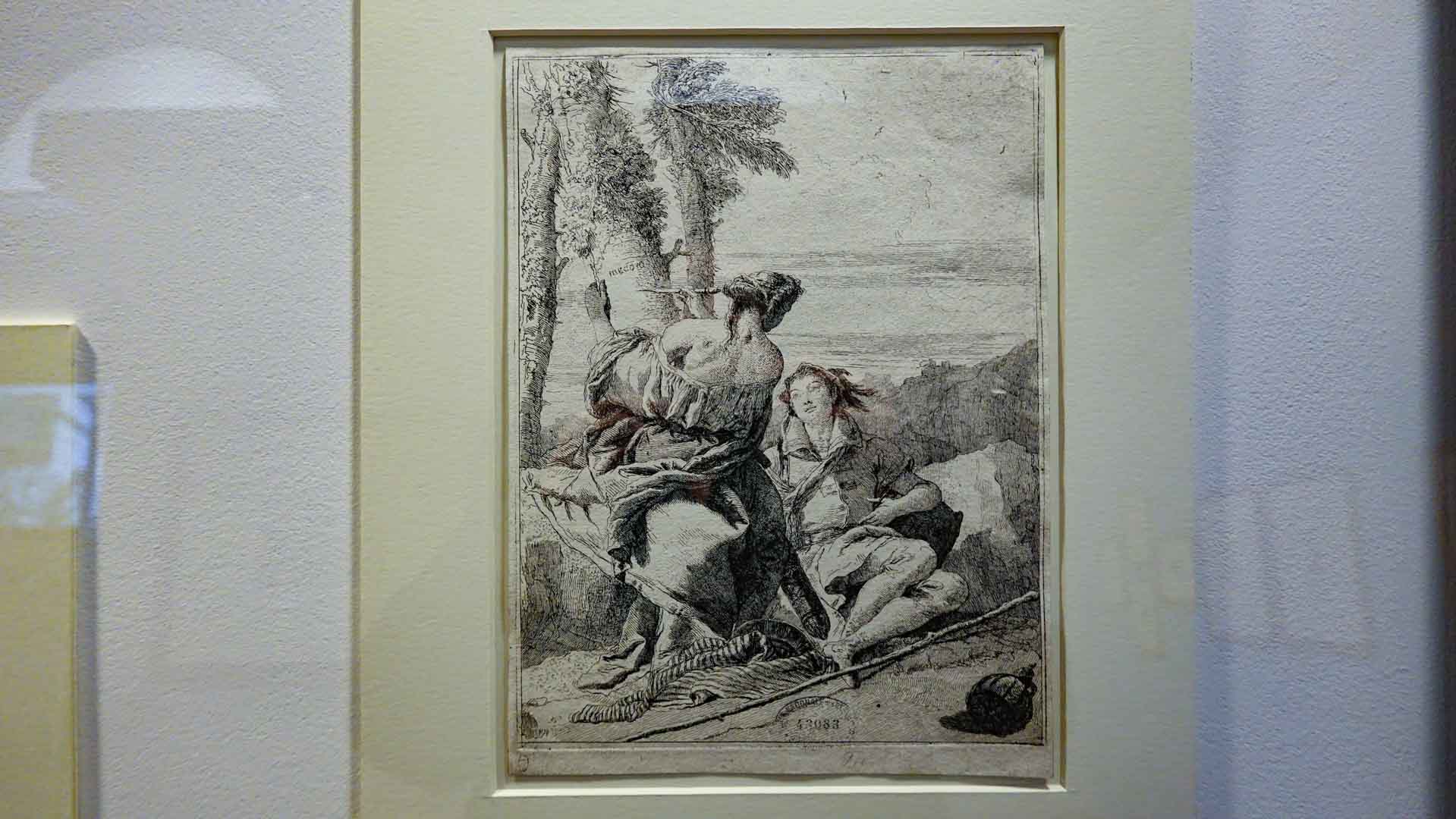 Giovanni Domenico Tiepolo (1727-1804), son fils aîné, développe un style propre, se concentrant sur la peinture de genre et les gravures humoristiques. Il est connu pour les séries de fresques de la Villa Valmarana et ses dessins de Pulcinella, montrant une clarté narrative et une sensibilité aux aspects quotidiens et humoristiques de la vie.