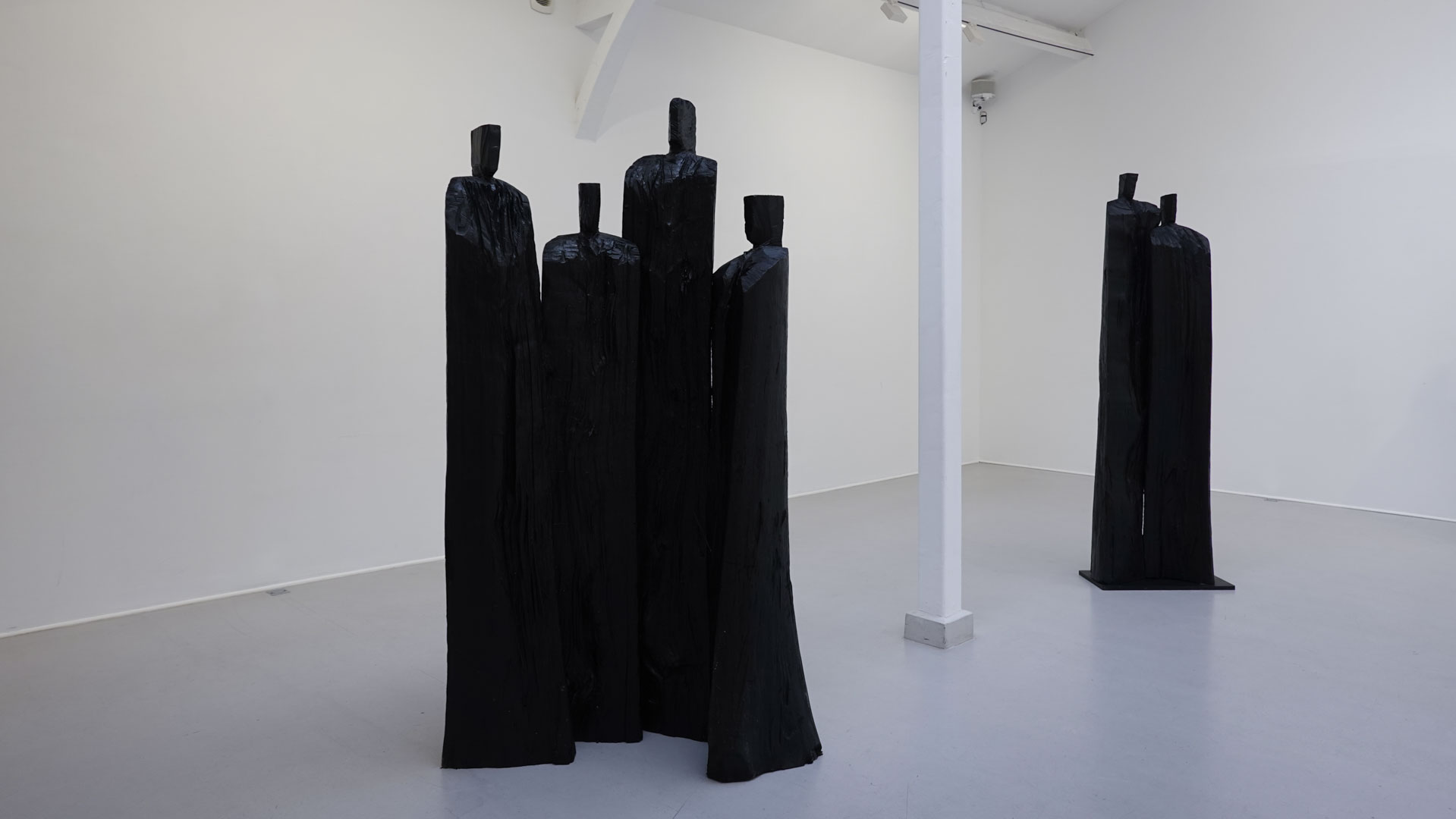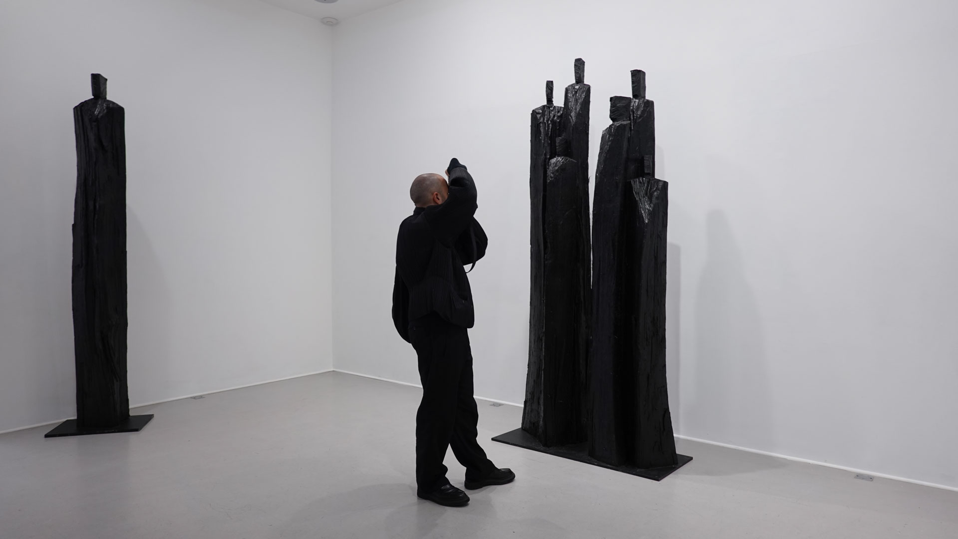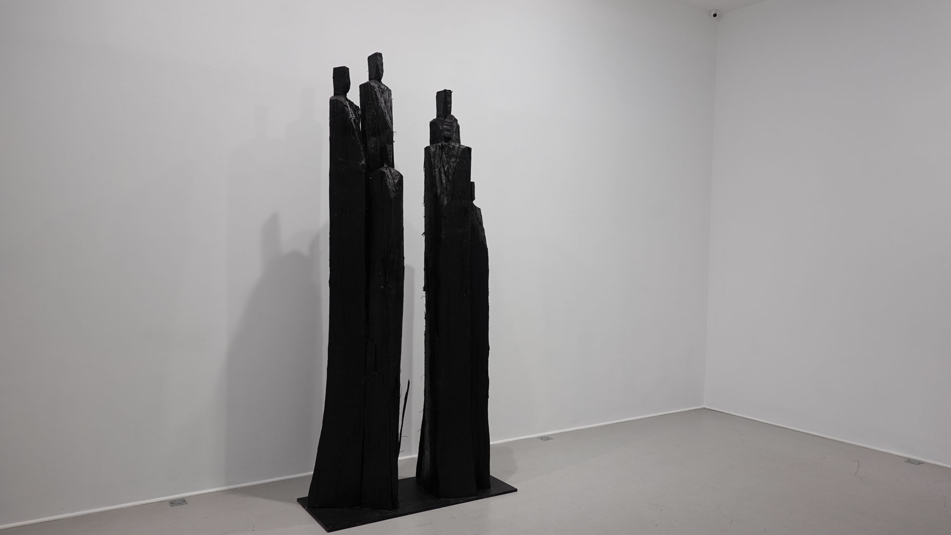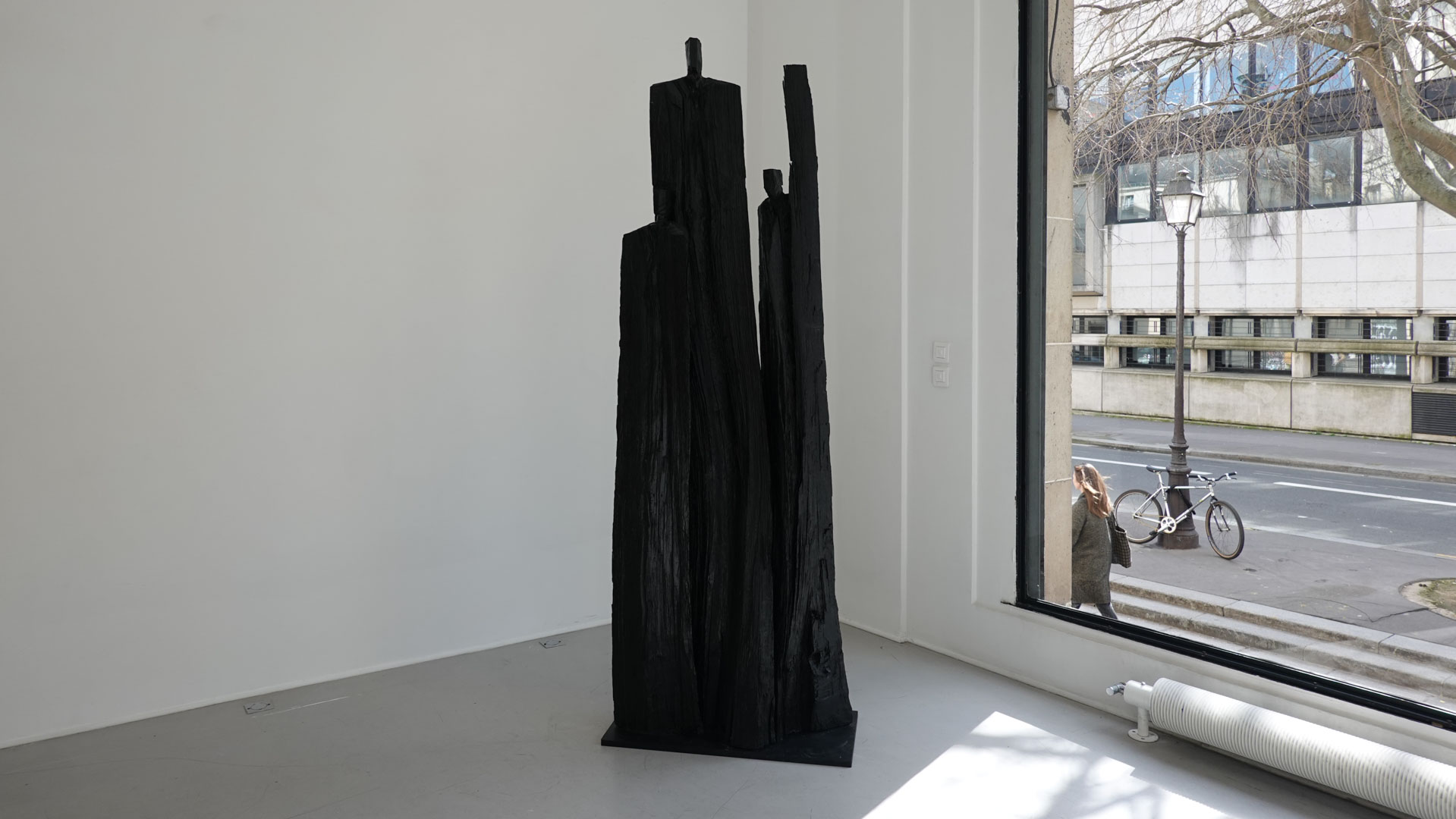 Christian Lapie, né en 1955 à Reims, est connu pour ses sculptures monumentales en bois brûlé ou noirci qui évoquent des figures humaines stylisées, sans visages, ou des formes totémiques. Lapie installe ses œuvres dans des lieux variés, allant de paysages naturels à des sites urbains ou historiques, où les sculptures semblent surgir de terre comme des gardiens silencieux de la mémoire.