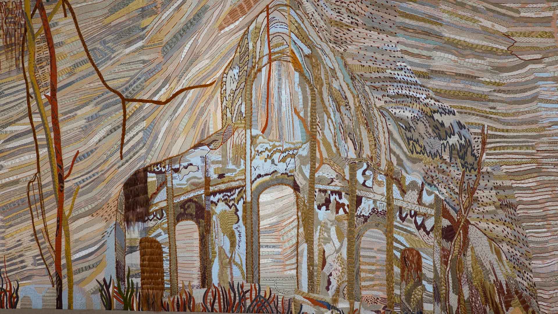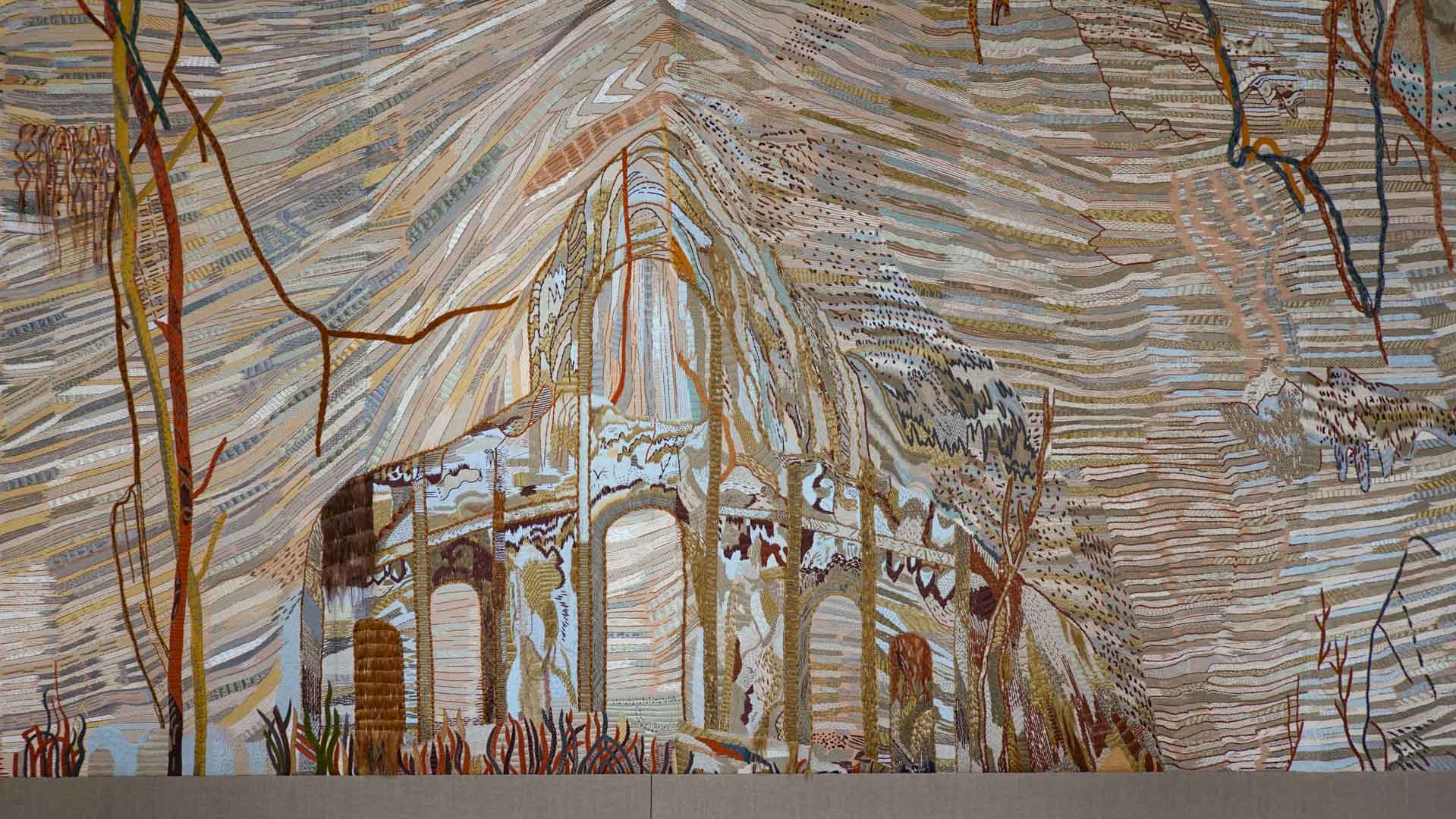 Le style d’Eva Jospin est une harmonie entre nature, architecture et rêve. À l'orangerie du château de Versailles, Chambre de soie se présente sous la forme d'une promenade initiatique dans un jardin de broderies.