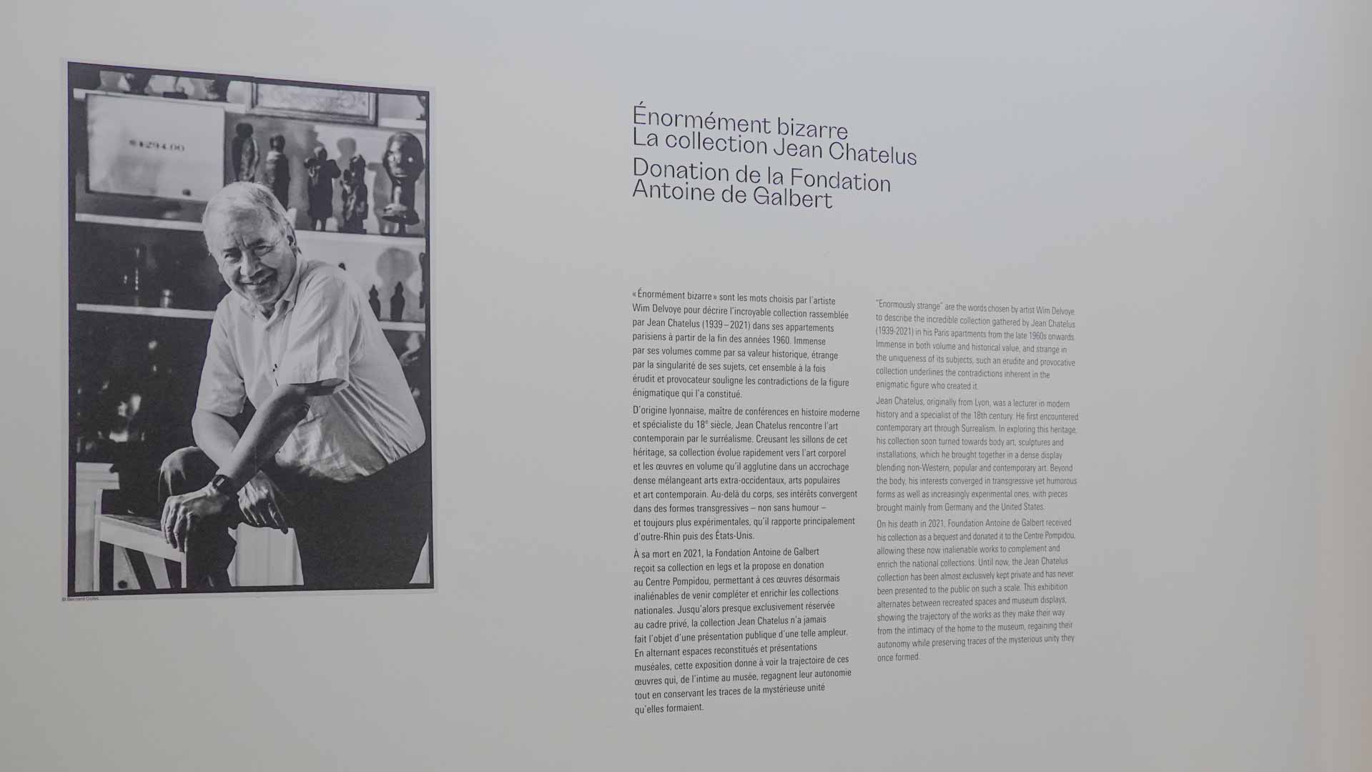 La donation de la Fondation Antoine de Galbert au Centre Pompidou célèbre l'indépendance de Jean Chatelus et enrichit les collections du Musée avec des œuvres d’artistes n’y figurant pas encore ou demeurant mal représentés. Dans le respect du collectionneur, de son esprit éclectique et de ses choix, cette exposition reconstitue intégralement certains de ses espaces et en restitue d’autres alternant citation et muséalisation.