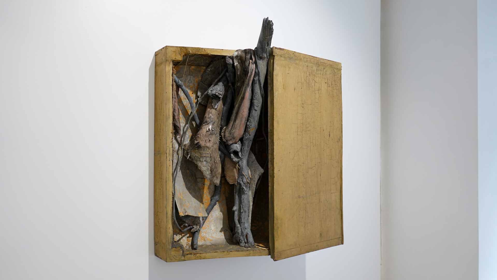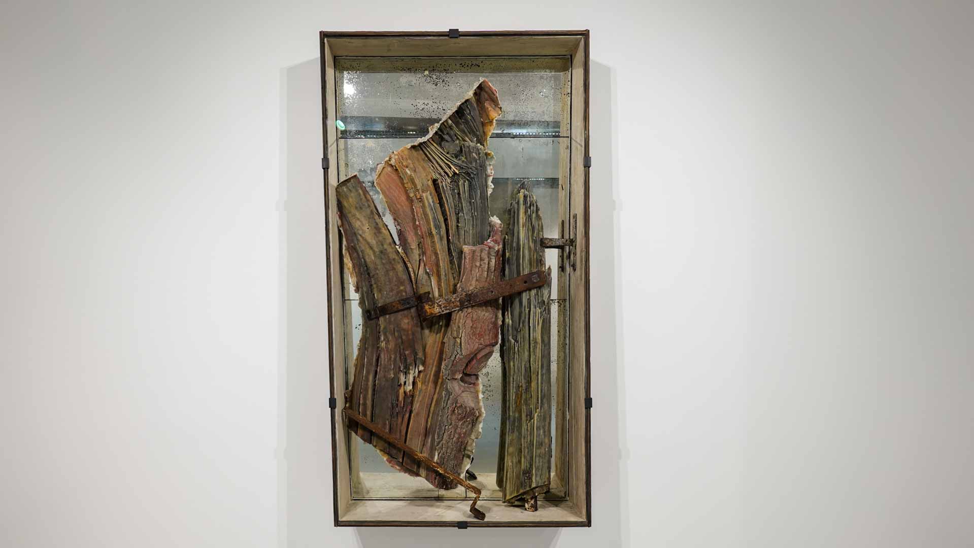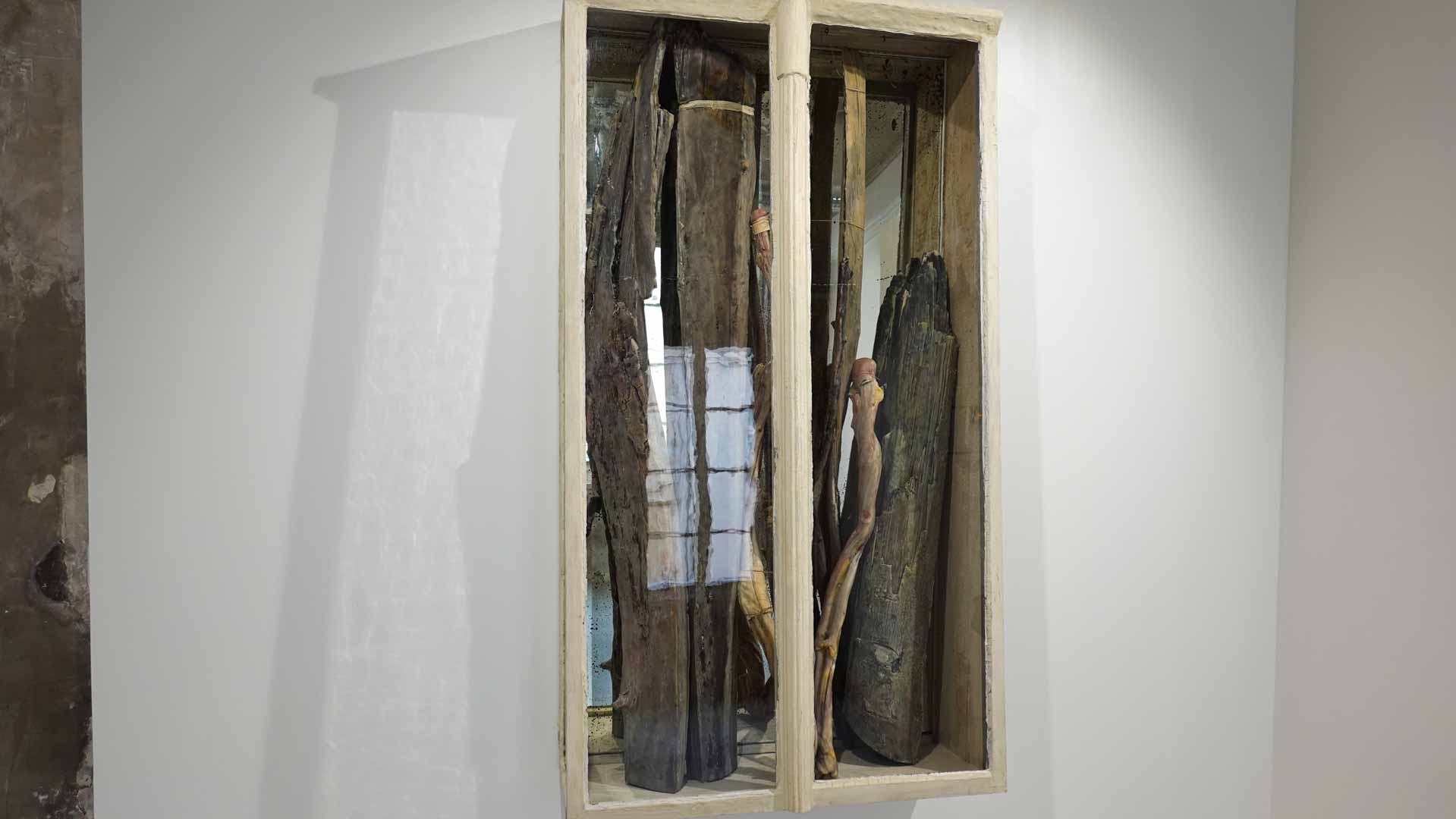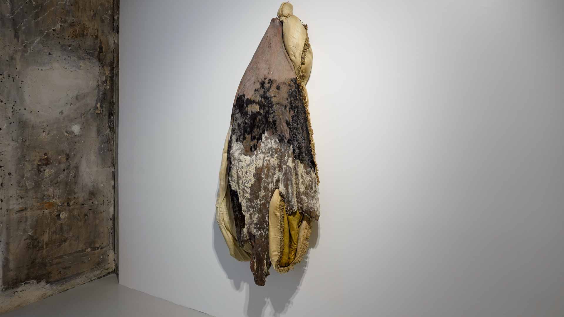 Les œuvres exposées utilisent des matériaux comme la cire, peaux animales, bois, textiles usés, rappelant la chair et l’organique. Parmi les pièces marquantes : les vitrines *Need VI* et *Need VII*, qui associent branches, peaux et corps en cire, ainsi que la sculpture *Madonna del Parto*. Ces œuvres oscillent entre attirance et répulsion, vie et mort, sacré et violence, en s’inspirant de l’iconographie religieuse, mythologique et de la nature.