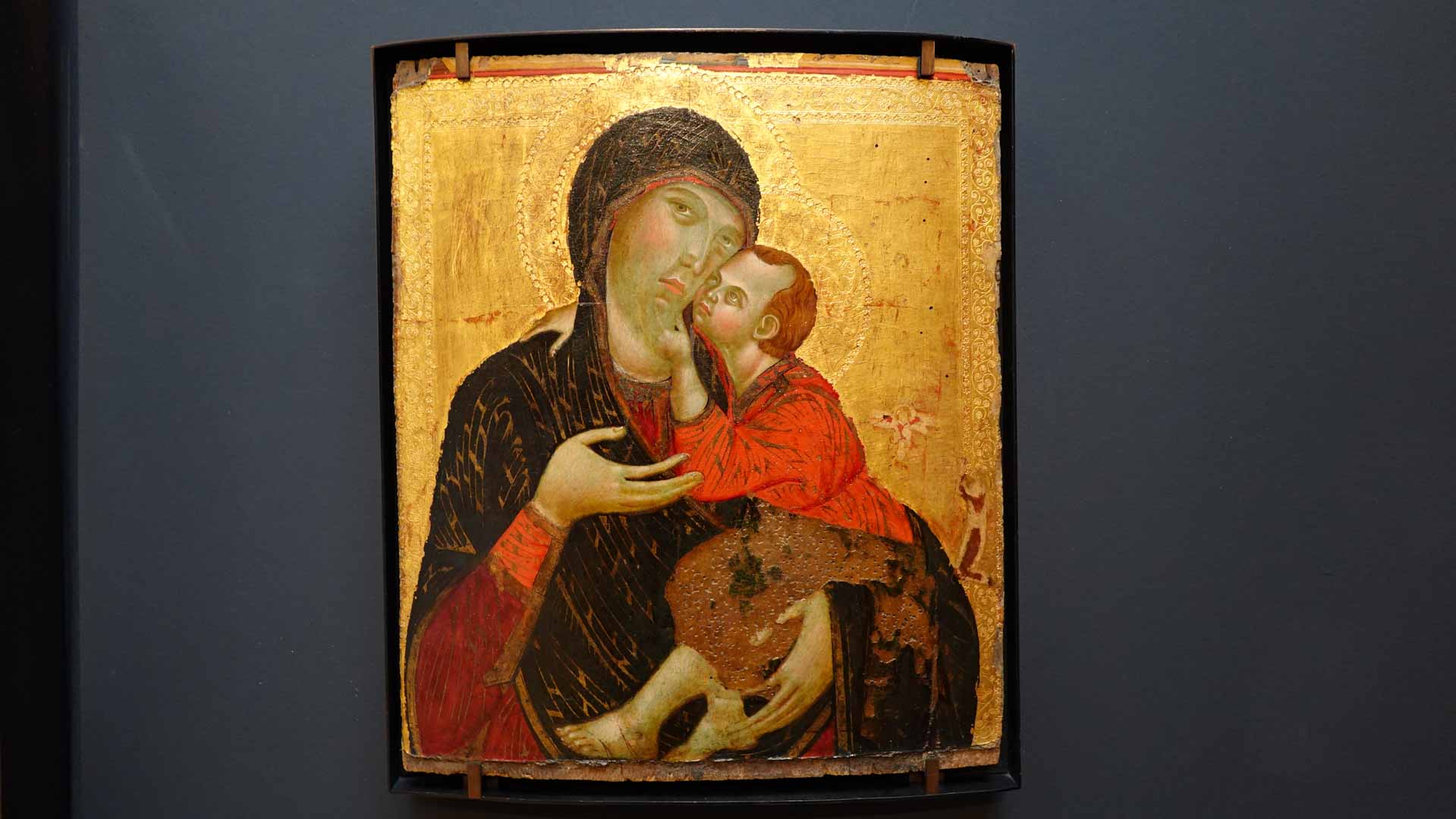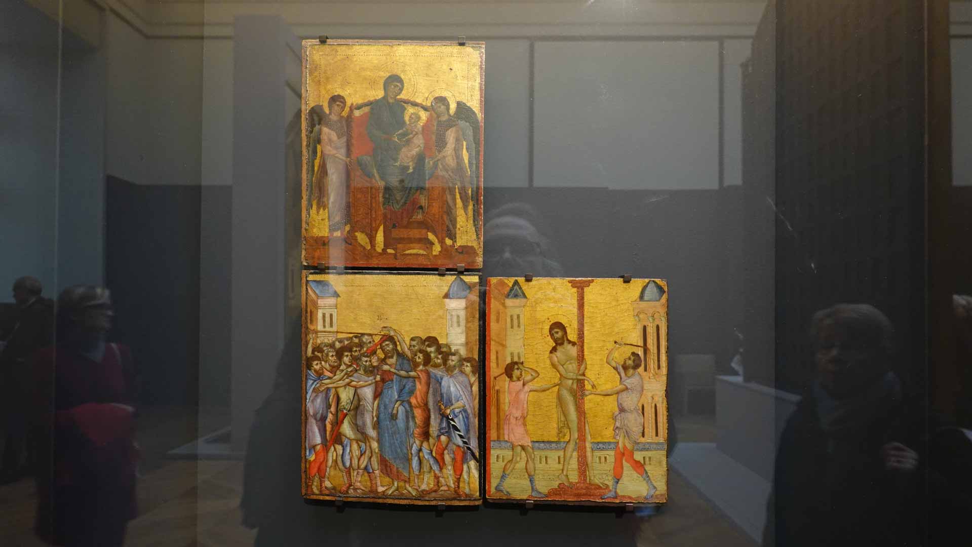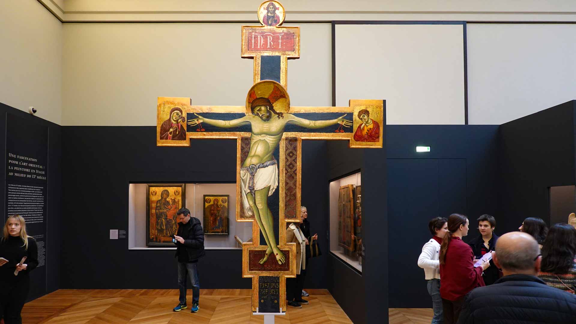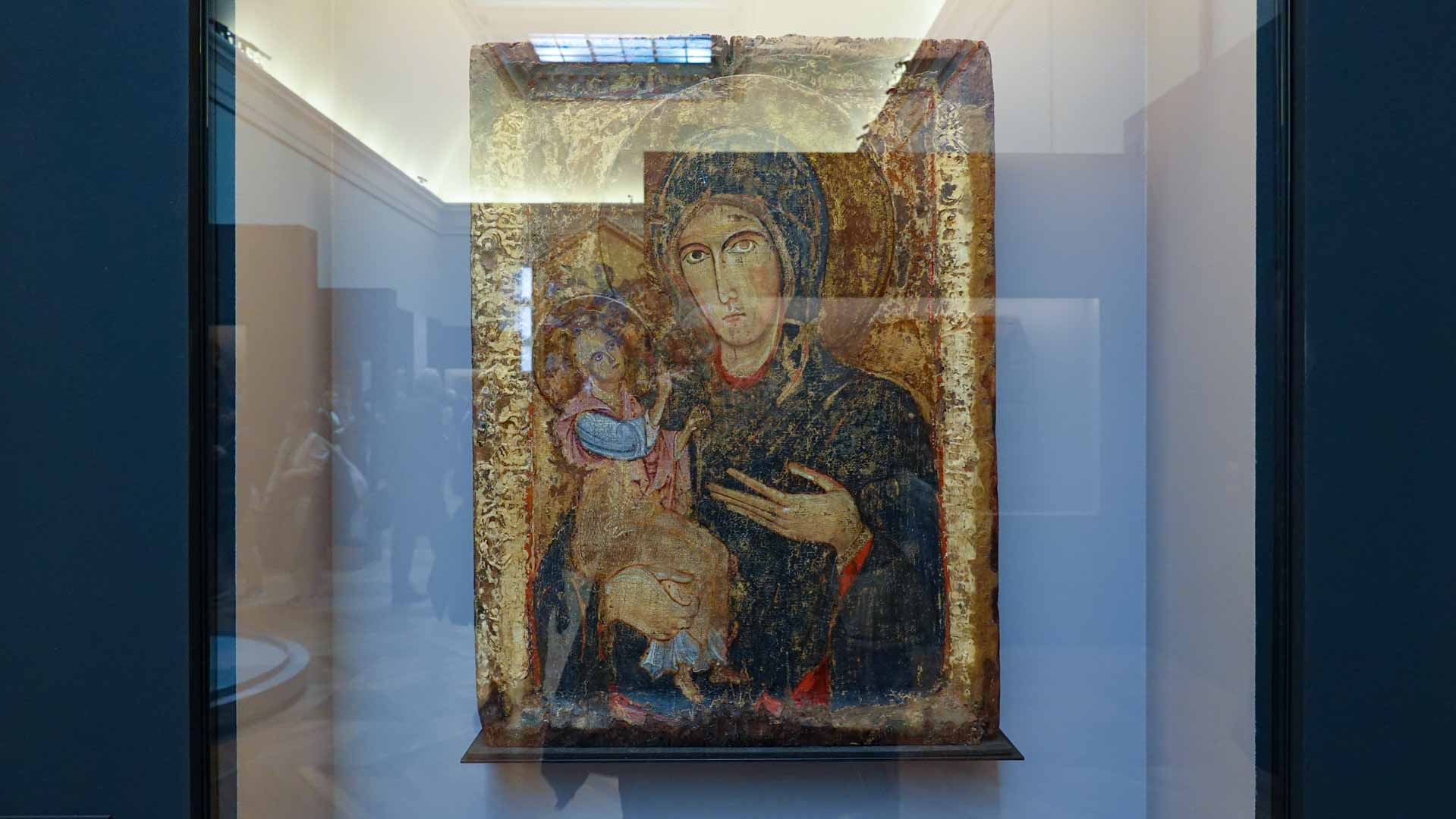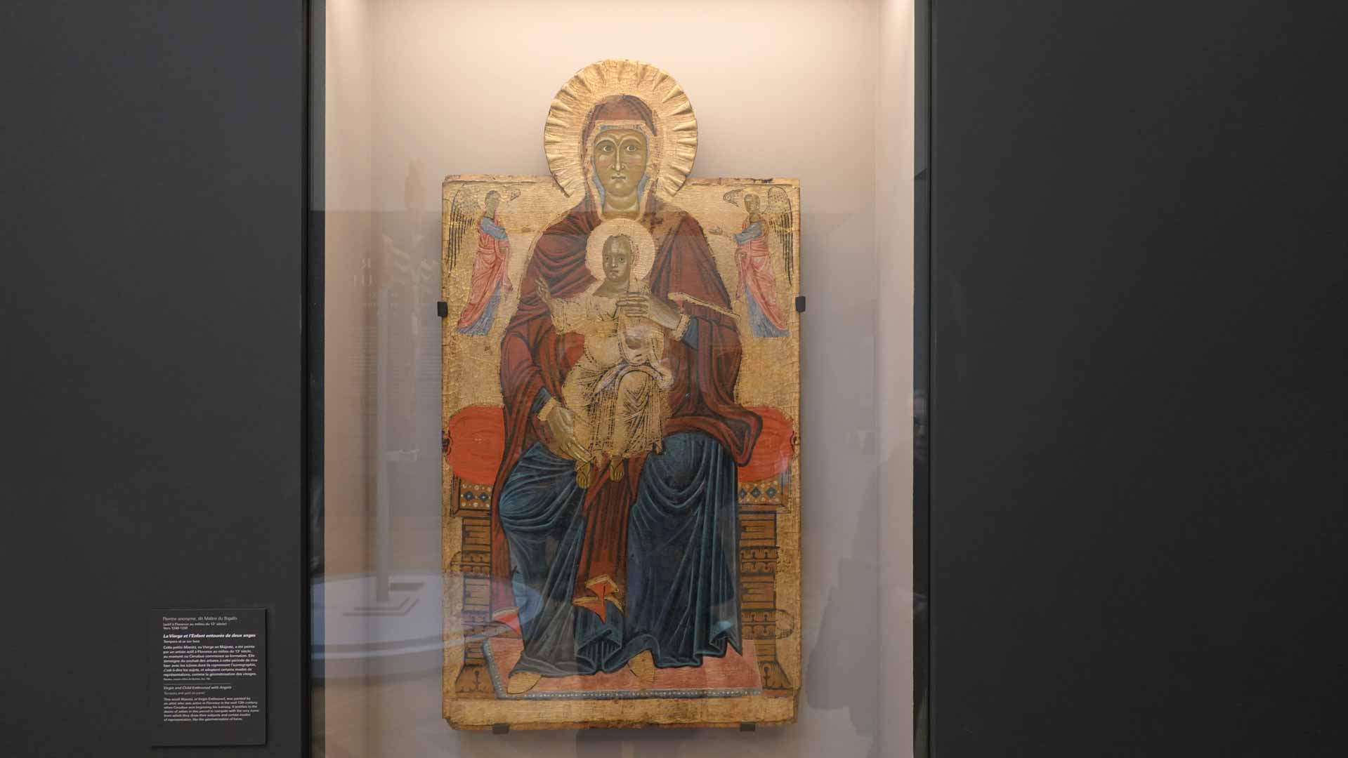 Nos connaissances sur Cenni di Pepo, dit Cimabue, sont très minces, comme le rappelle le prologue de l’exposition : on ignore jusqu’à la signification de son surnom et seuls quelques documents d’archive permettent d’identifier l’artiste et de donner de rares repères dans son parcours. C’est Dante, dans un passage de La Divine Comédie, qui forge le mythe au début du XIVe siècle : en établissant son importance, il est à l’origine de la fascination que le nom de Cimabue exercera des Médicis jusqu’à aujourd’hui.