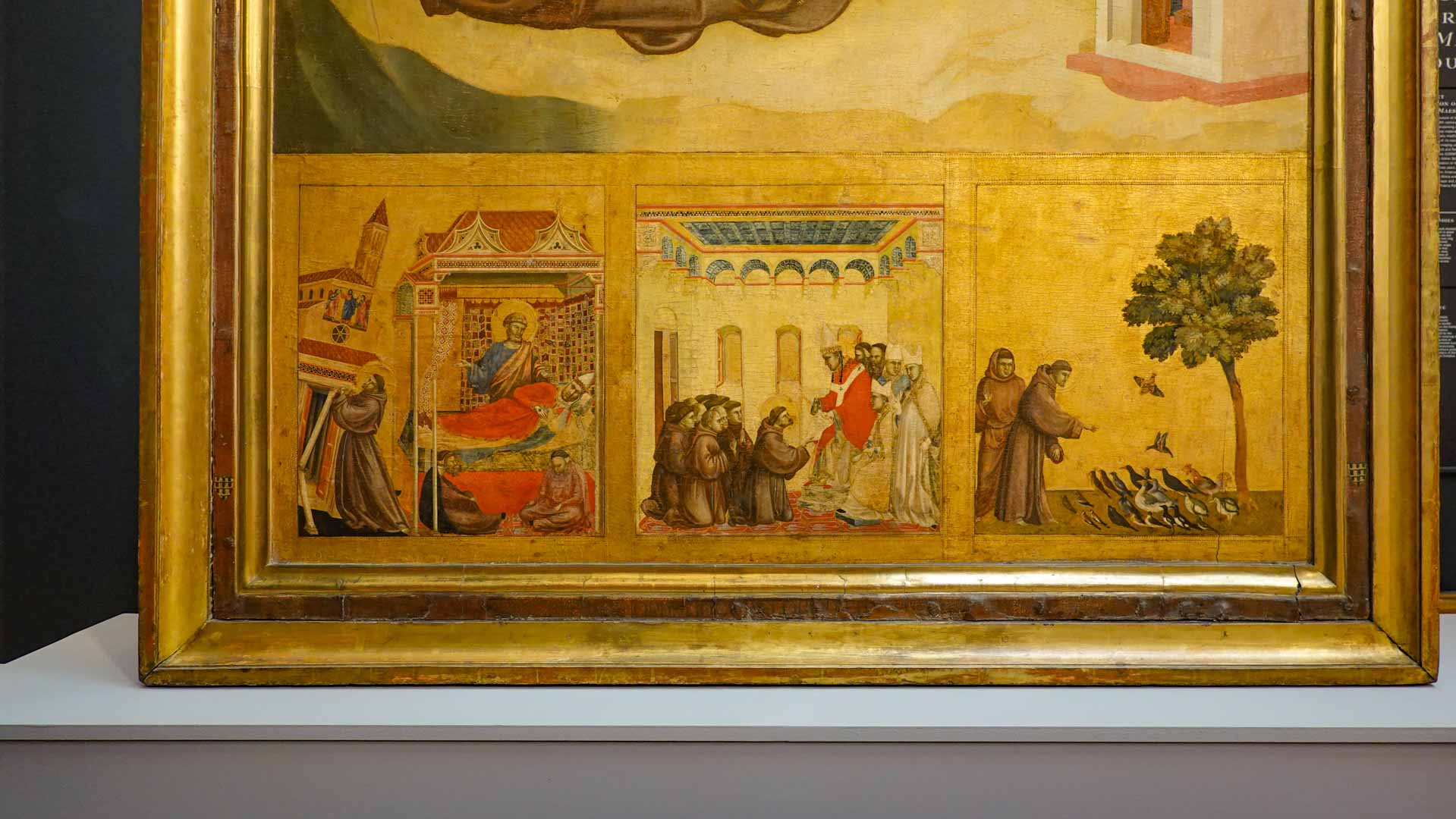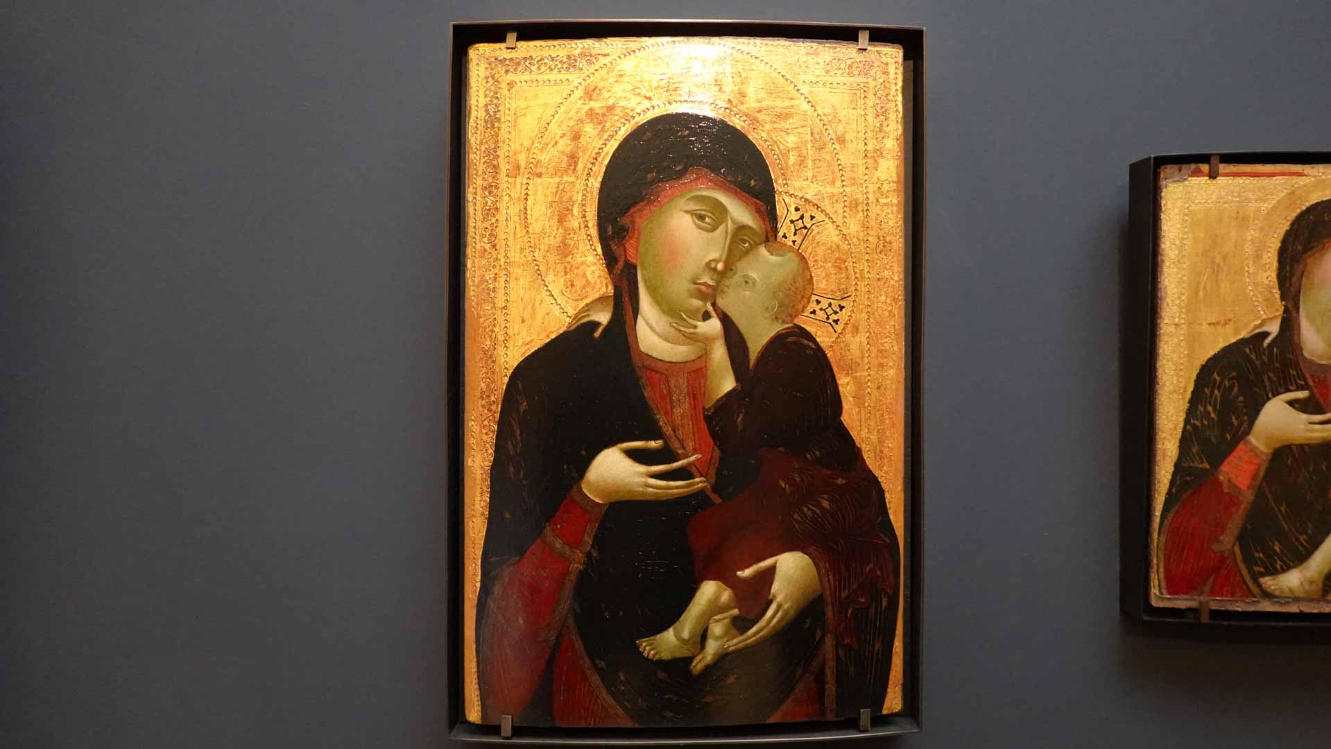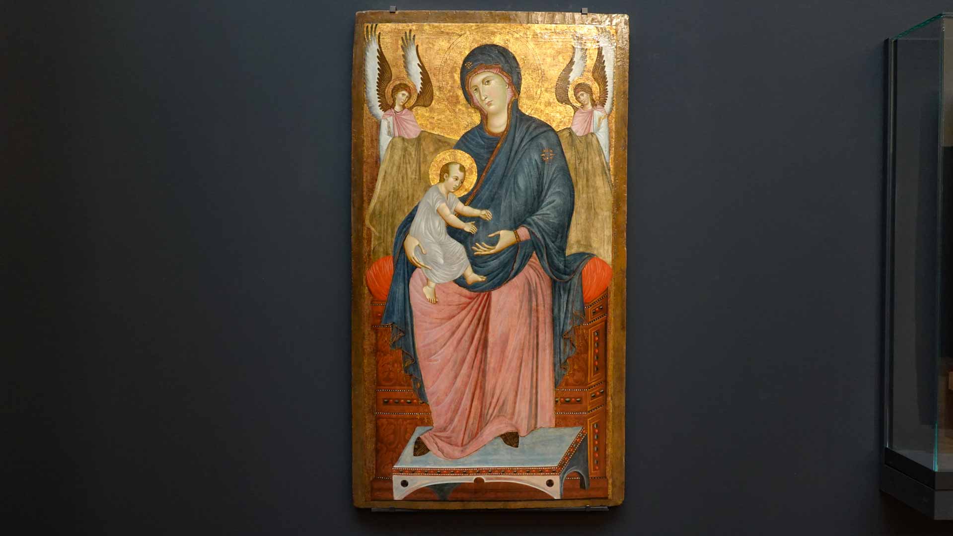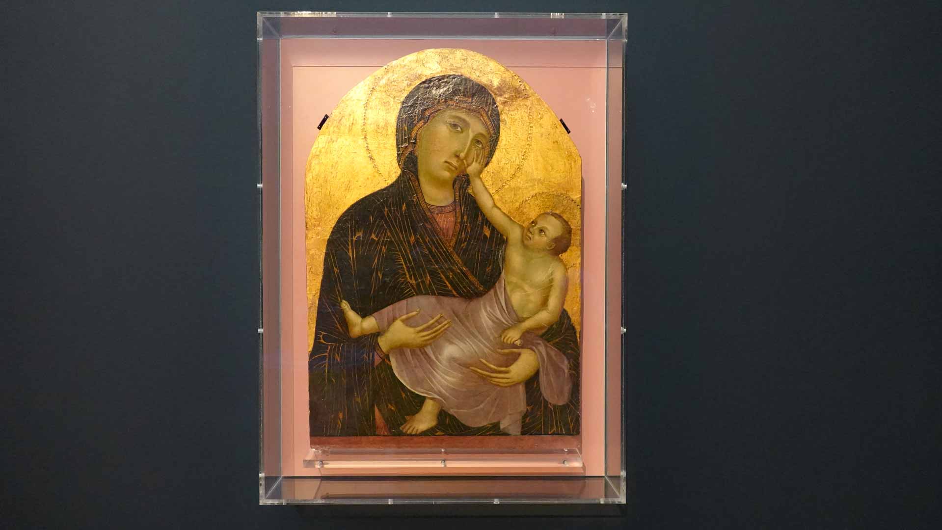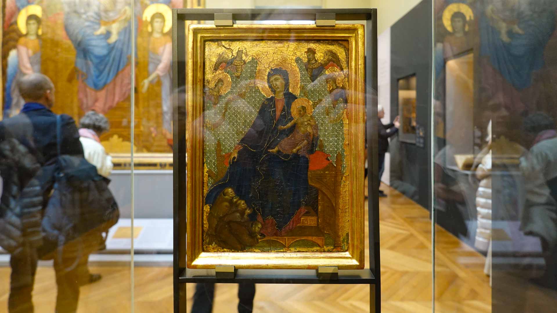 Nos connaissances sur Cenni di Pepo, dit Cimabue, sont très minces, comme le rappelle le prologue de l’exposition : on ignore jusqu’à la signification de son surnom et seuls quelques documents d’archive permettent d’identifier l’artiste et de donner de rares repères dans son parcours. C’est Dante, dans un passage de La Divine Comédie, qui forge le mythe au début du XIVe siècle : en établissant son importance, il est à l’origine de la fascination que le nom de Cimabue exercera des Médicis jusqu’à aujourd’hui.
