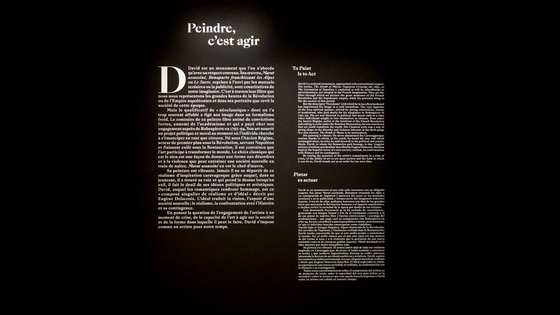 David est considéré comme le père du néoclassicisme français. Ses tableaux, tels que Le Serment des Horaces (1784), La Mort de Marat (1793) ou Le Sacre de Napoléon (1807), allient une rigueur antique à une intensité émotionnelle rare. Son œuvre exalte la vertu, le courage et la grandeur de l’homme face à l’Histoire. Mais au-delà des héros et des symboles, on y lit aussi la fragilité des idéaux révolutionnaires et la complexité du pouvoir. L’exposition du Louvre révèle cette évolution : d’un art de la conviction à une peinture de la mémoire, David y apparaît comme un artiste total, à la fois témoin et acteur de son temps.