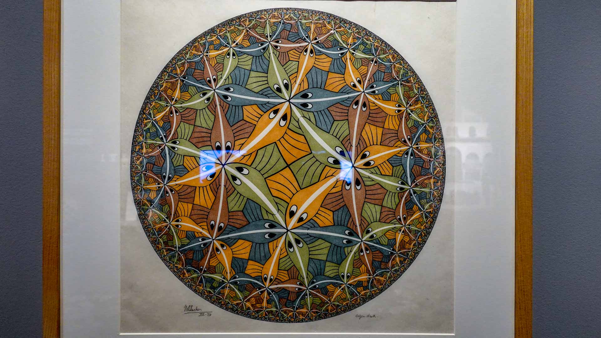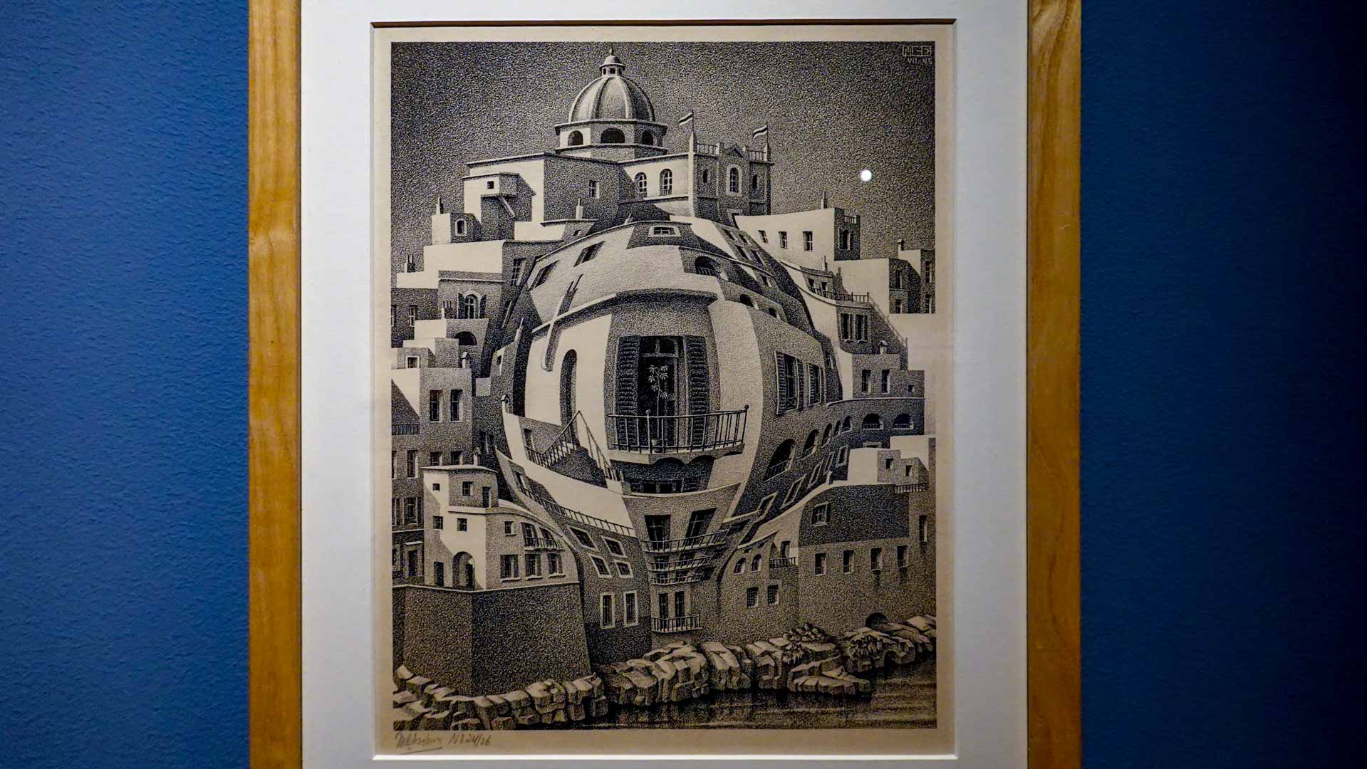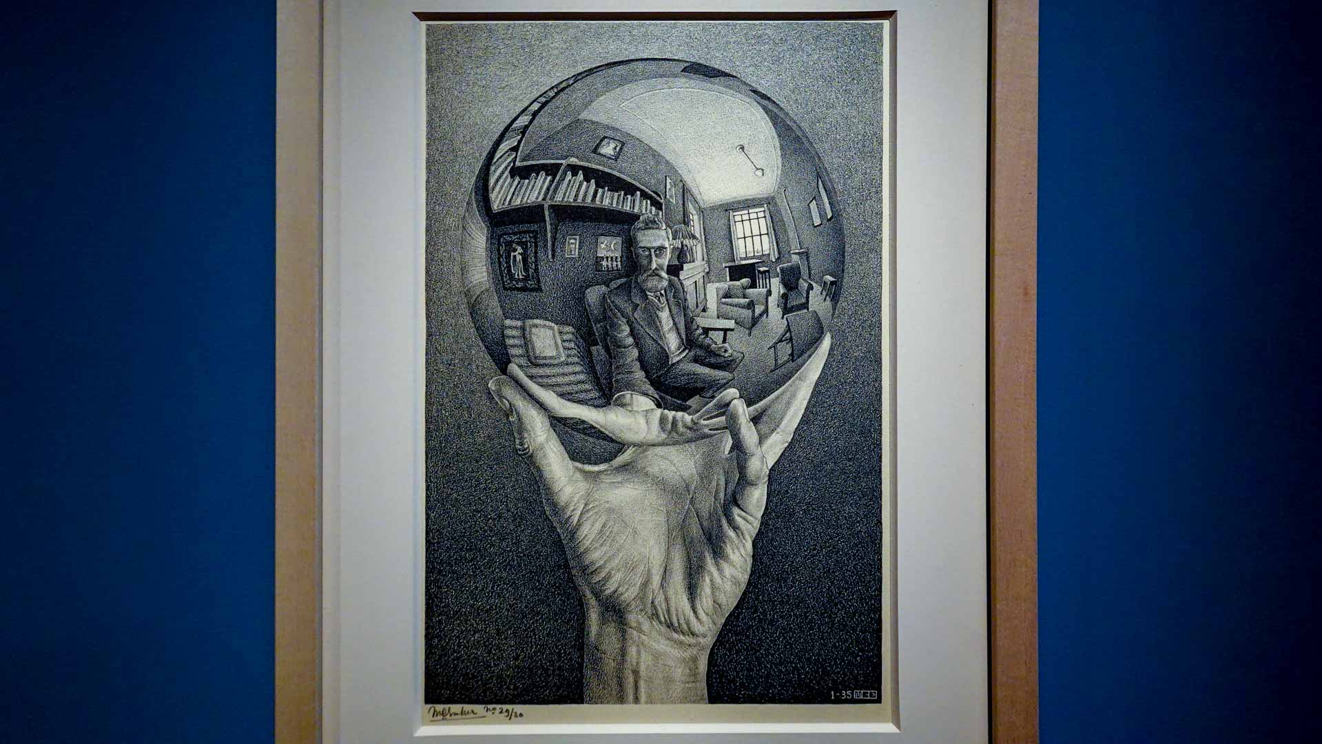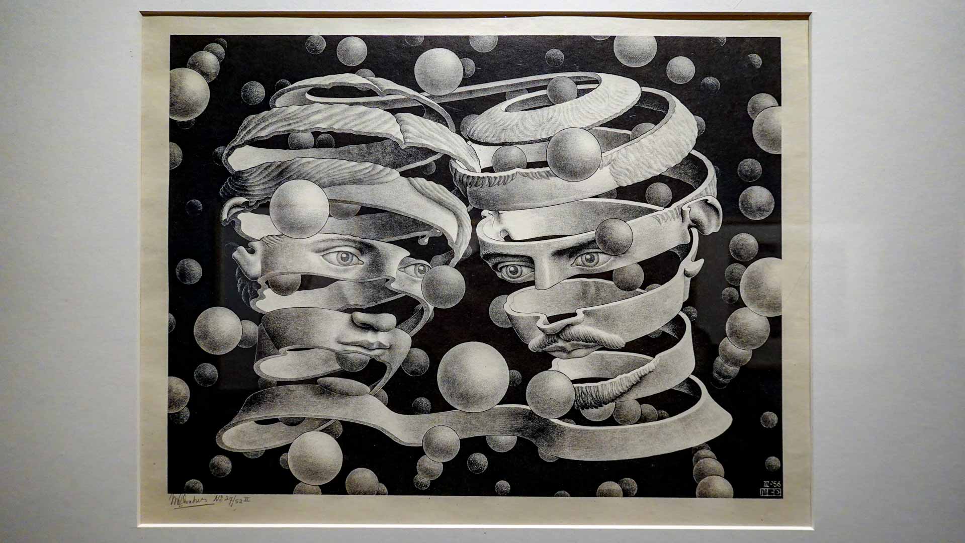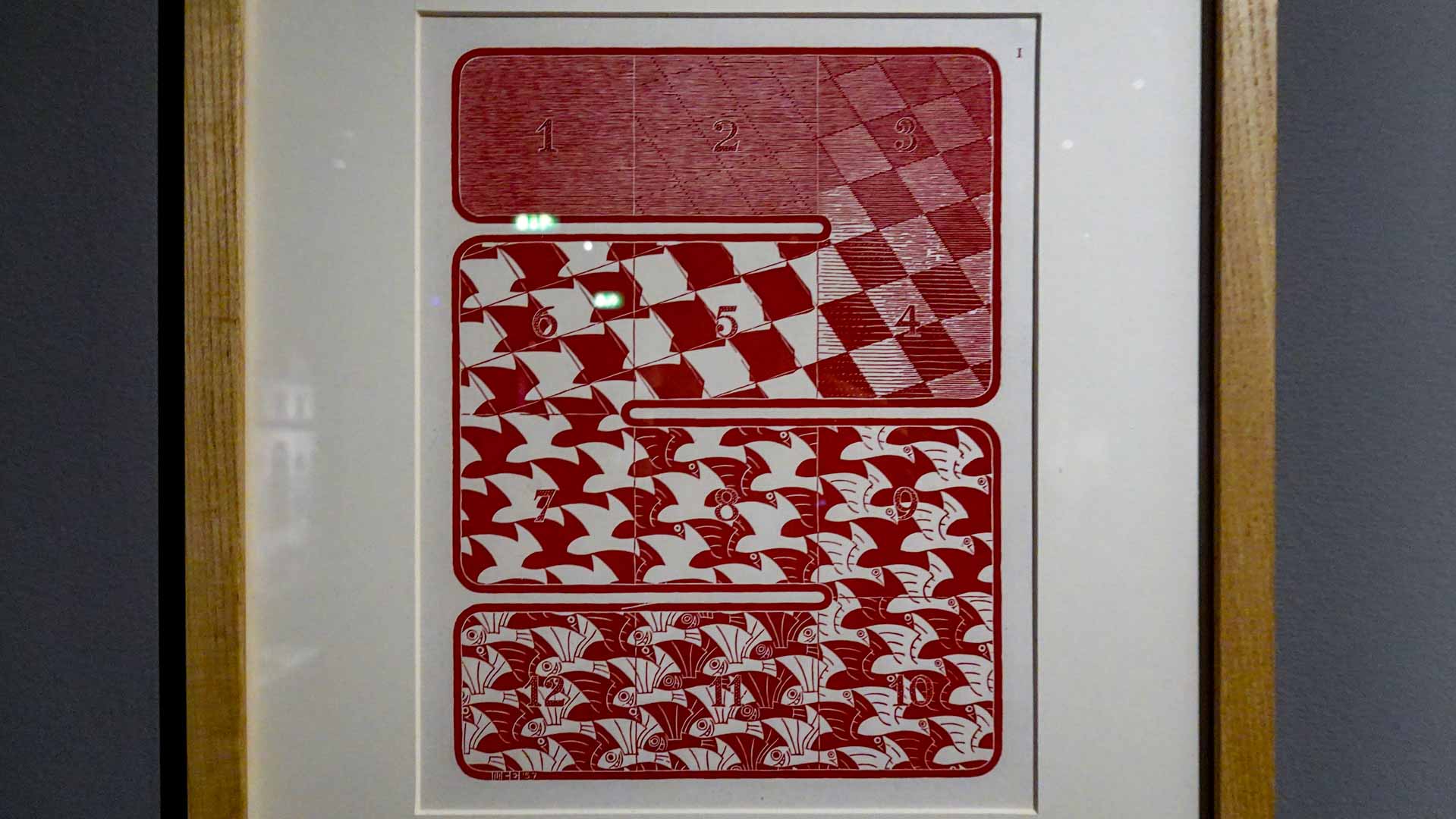 Son œuvre explore des mécanismes spatiaux et mathématiques complexes : perspective classique mais aussi perspective inversée, multiples points de fuite et perspectives impossibles comme dans Relativity, où les repères de gravité se contredisent. Il utilise les tessellations avec une rigueur quasi scientifique, transformant des motifs décoratifs hérités de l’art islamique en créatures qui se métamorphosent et s’emboîtent sans lacune, comme dans Ciel et Eau ou Reptiles. Les séries Circle Limit témoignent de son intérêt pour la géométrie hyperbolique, qu’il rend visible grâce à des transformations continues qui évoquent l’infini.