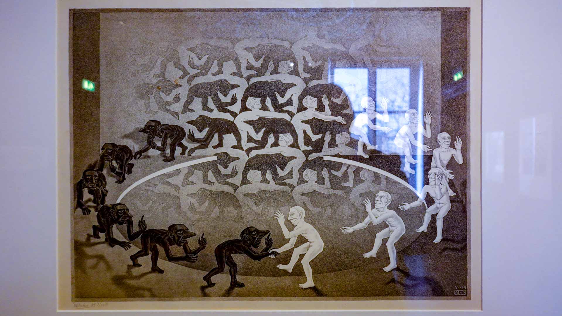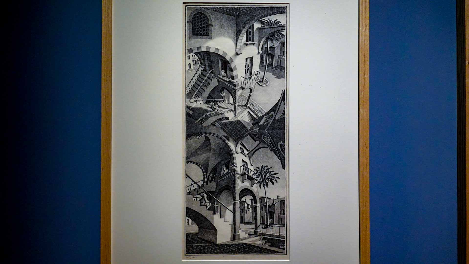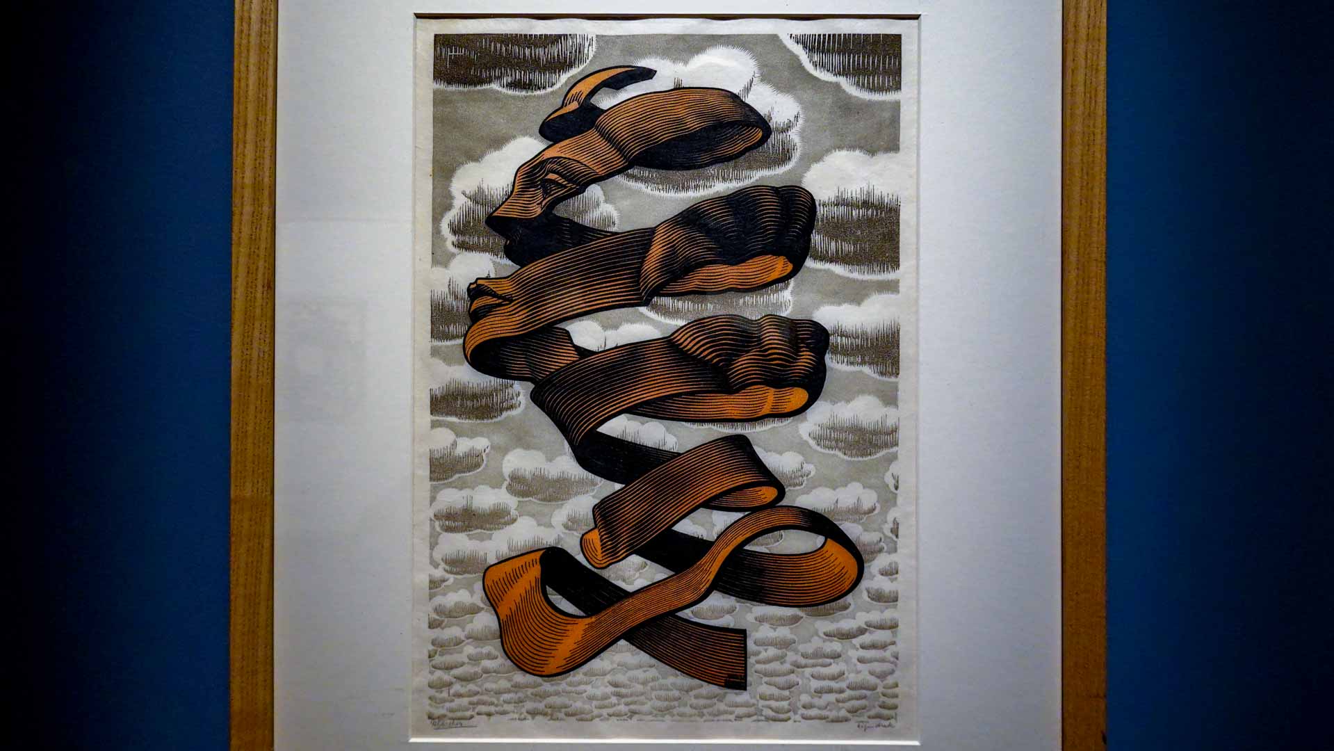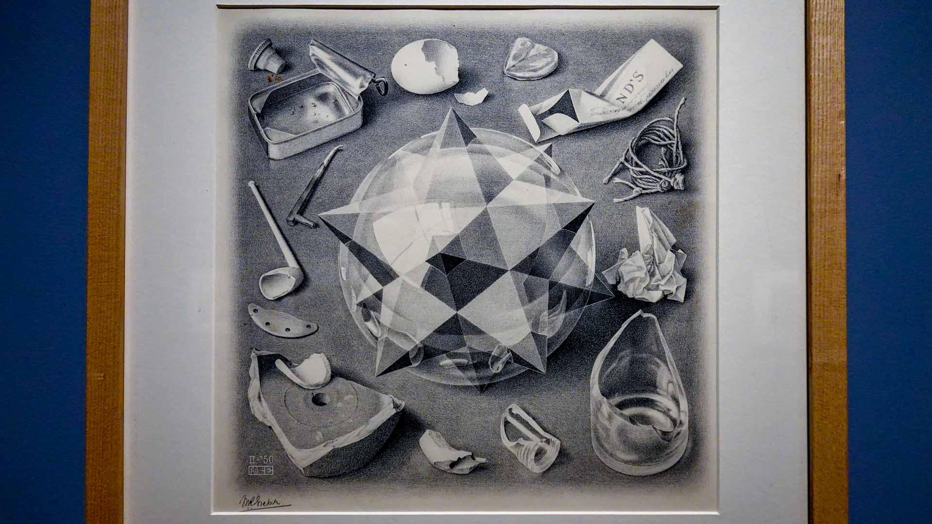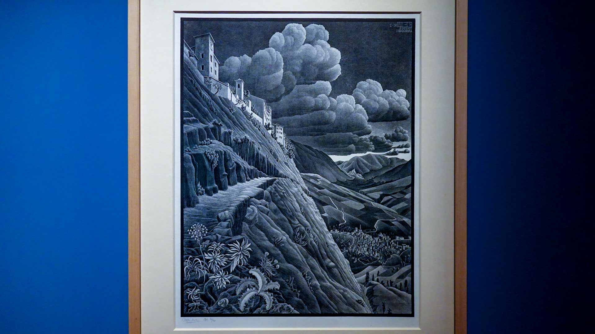 Son œuvre explore des mécanismes spatiaux et mathématiques complexes : perspective classique mais aussi perspective inversée, multiples points de fuite et perspectives impossibles comme dans Relativity, où les repères de gravité se contredisent. Il utilise les tessellations avec une rigueur quasi scientifique, transformant des motifs décoratifs hérités de l’art islamique en créatures qui se métamorphosent et s’emboîtent sans lacune, comme dans Ciel et Eau ou Reptiles. Les séries Circle Limit témoignent de son intérêt pour la géométrie hyperbolique, qu’il rend visible grâce à des transformations continues qui évoquent l’infini.