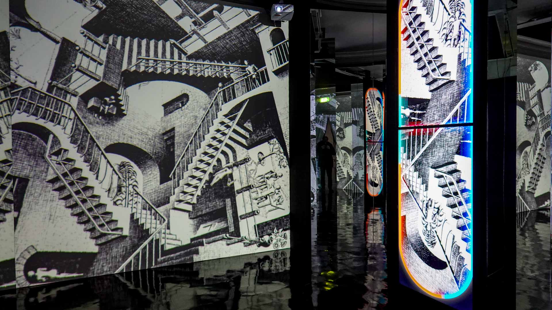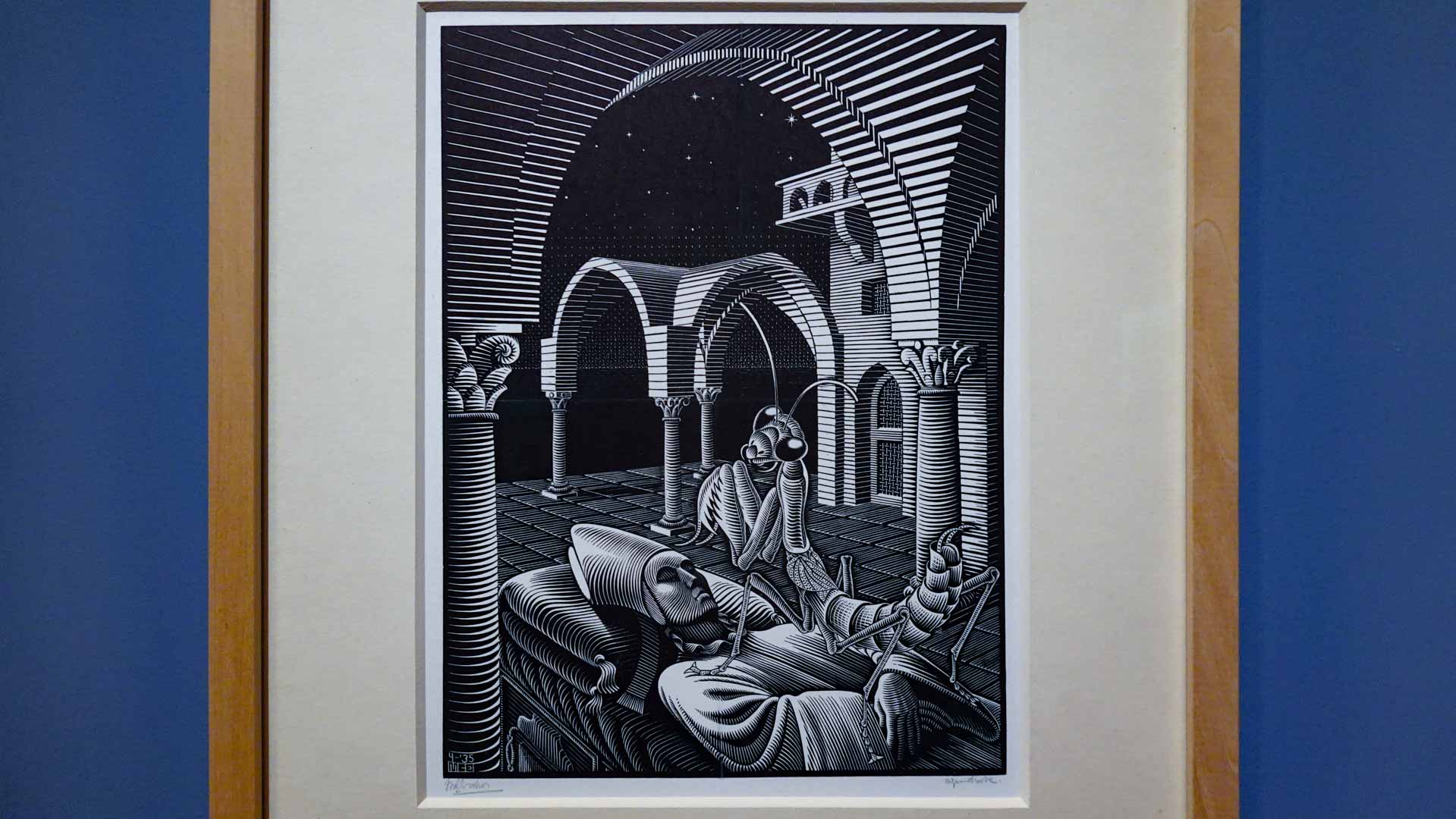 Techniquement, Escher maîtrise la xylographie (gravure sur bois aux contrastes précis), la lithographie (gravure sur pierre avec de délicats dégradés) et la mezzotinte (technique demandant un long travail d’ombre et de lumière). Son processus s’appuie sur des calculs, des schémas de symétrie et une exploration méthodique de l’espace visuel. Longtemps incompris des artistes, il est aujourd’hui reconnu comme une figure majeure reliant art, géométrie, perception et héritages décoratifs d’Al-Andalus — un créateur pour qui l’image devient un véritable laboratoire scientifique.