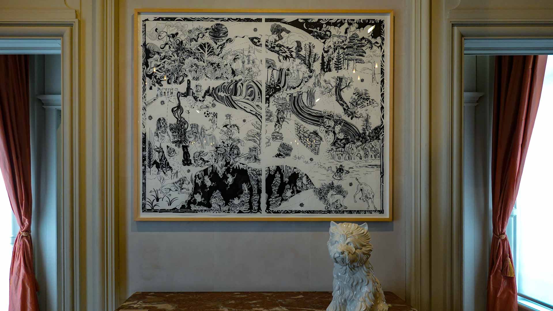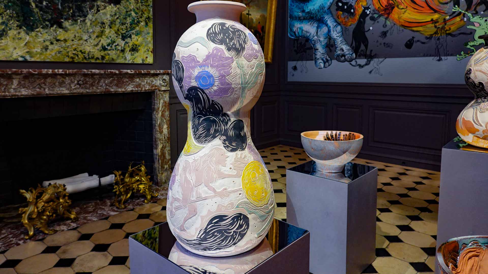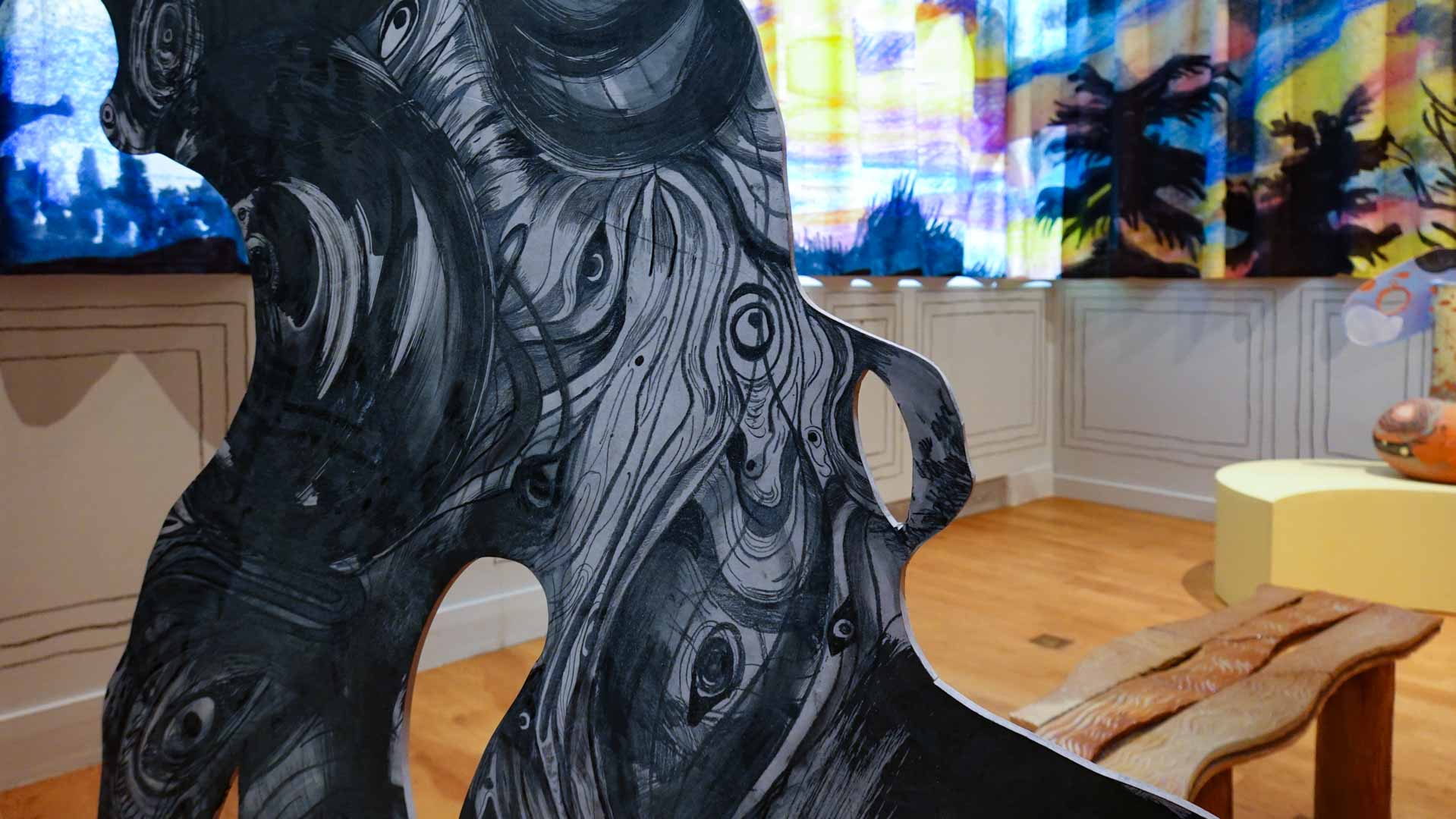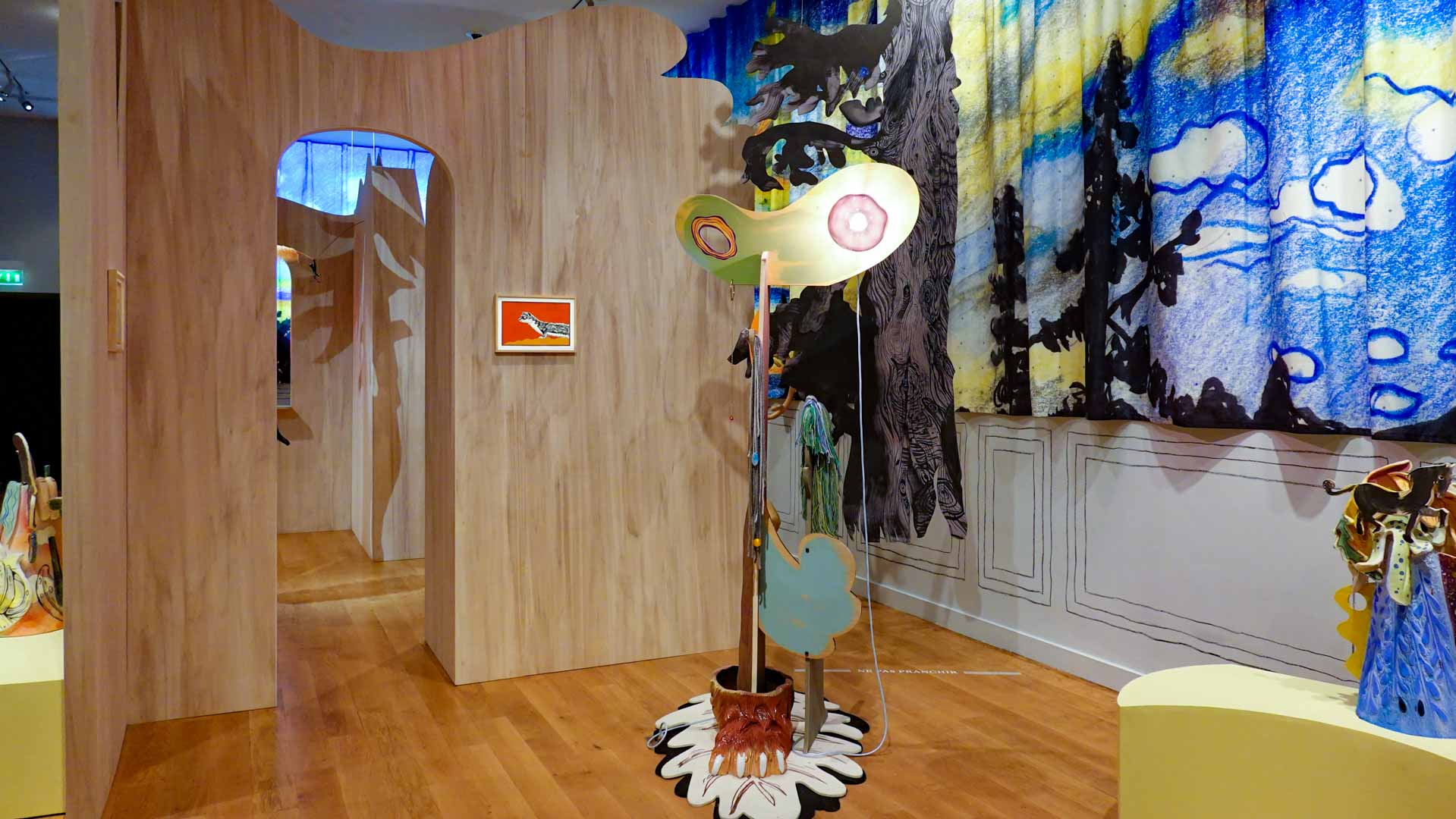 Les artistes investissent les salles du musée en y disposant céramiques, dessins, textiles, paravents et objets décoratifs qui forment un habitat imaginaire, à mi-chemin entre maison et forêt, comme si le bestiaire du musée s’animait sous une lumière nouvelle. Cette mise en scène immersive brouille volontairement les frontières entre art et artisanat, décor et installation, rappelant l’importance du geste, des motifs et des savoir-faire dans leur démarche.