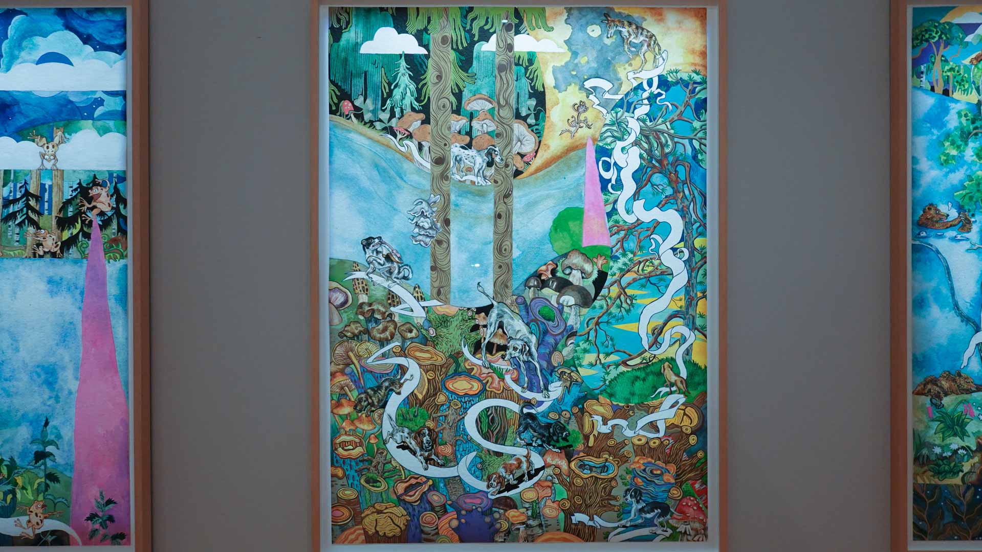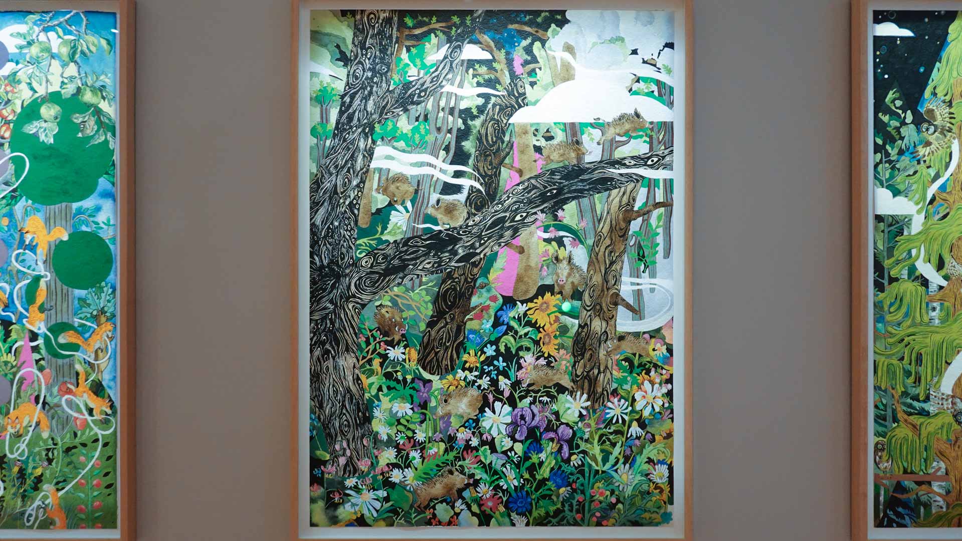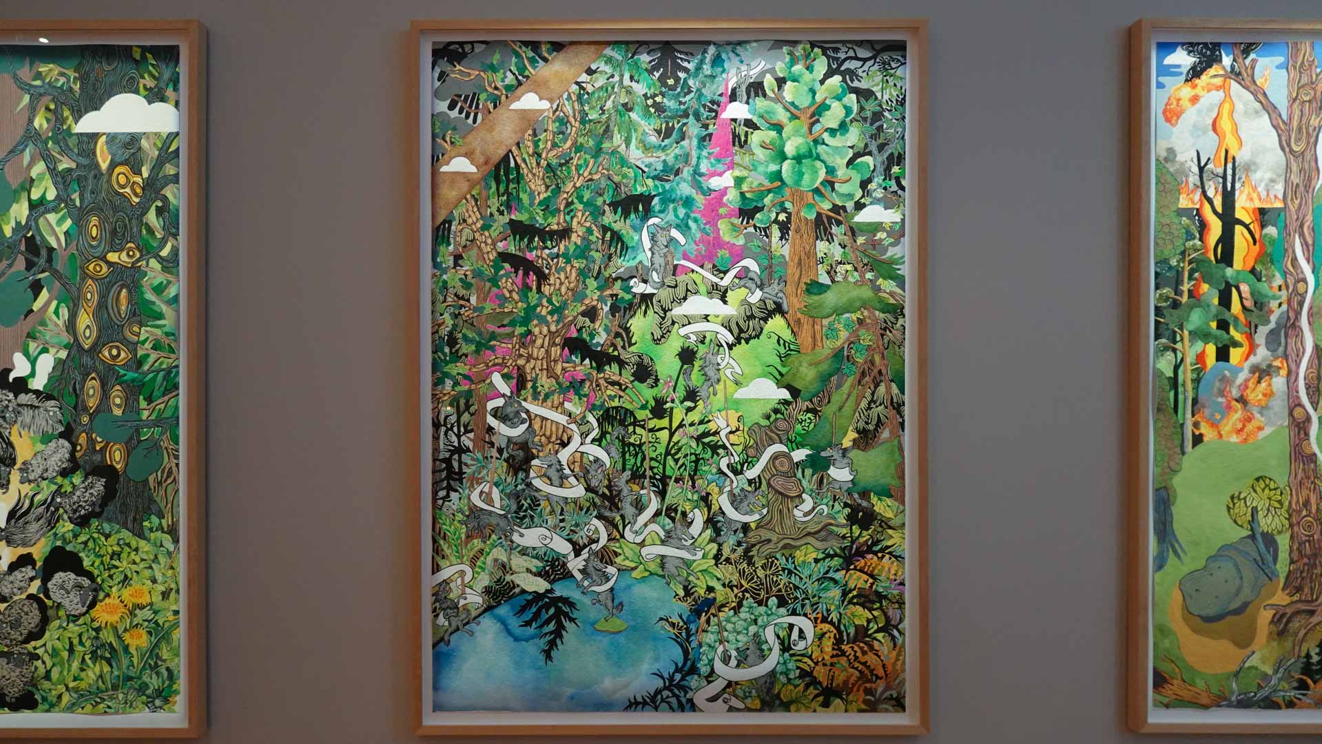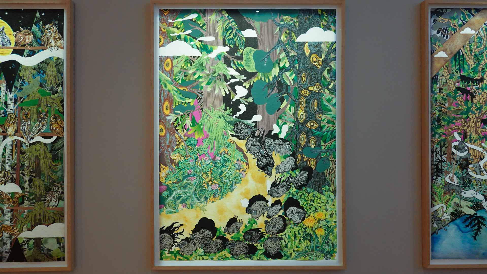 Les artistes investissent les salles du musée en y disposant céramiques, dessins, textiles, paravents et objets décoratifs qui forment un habitat imaginaire, à mi-chemin entre maison et forêt, comme si le bestiaire du musée s’animait sous une lumière nouvelle. Cette mise en scène immersive brouille volontairement les frontières entre art et artisanat, décor et installation, rappelant l’importance du geste, des motifs et des savoir-faire dans leur démarche.