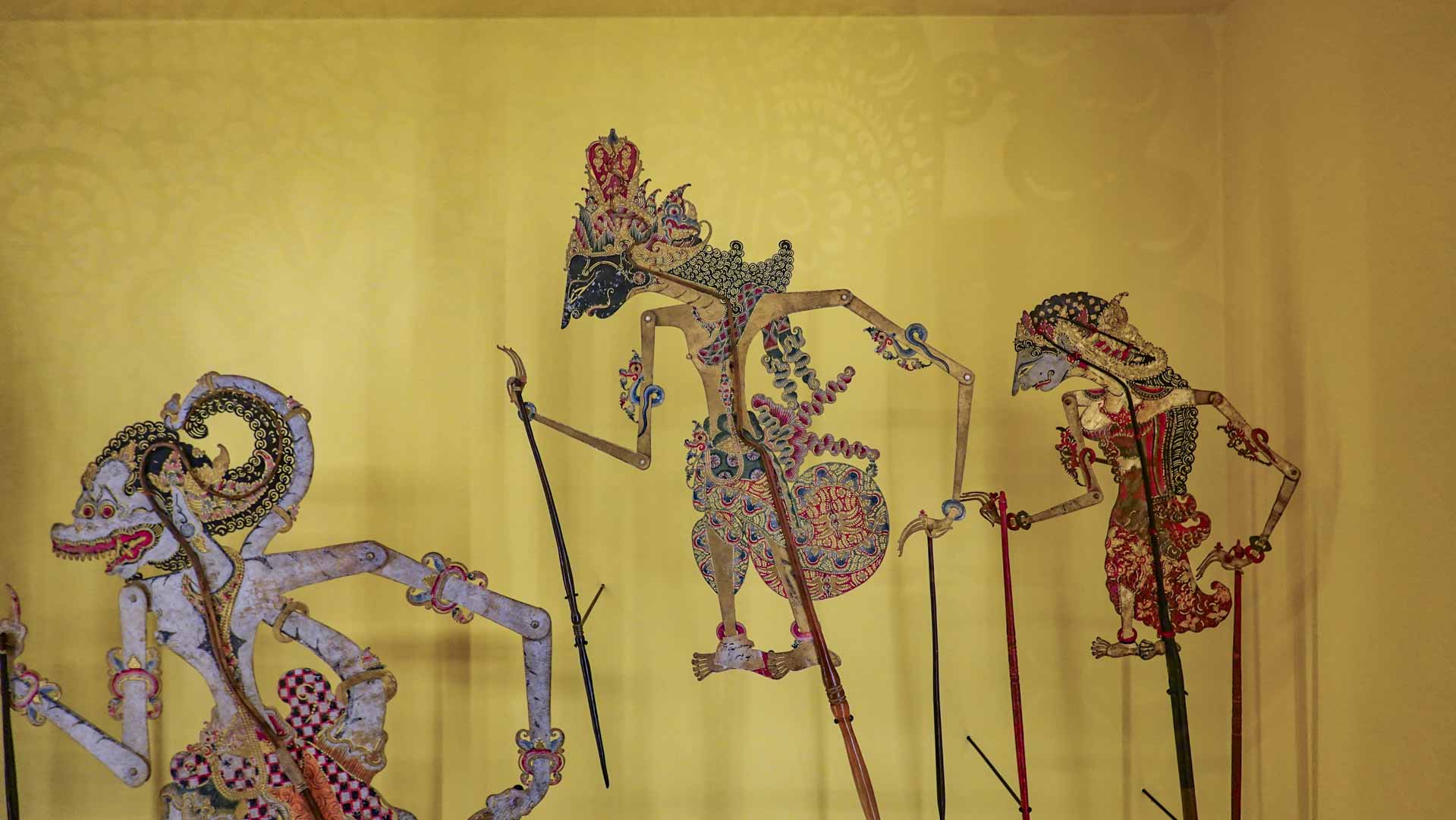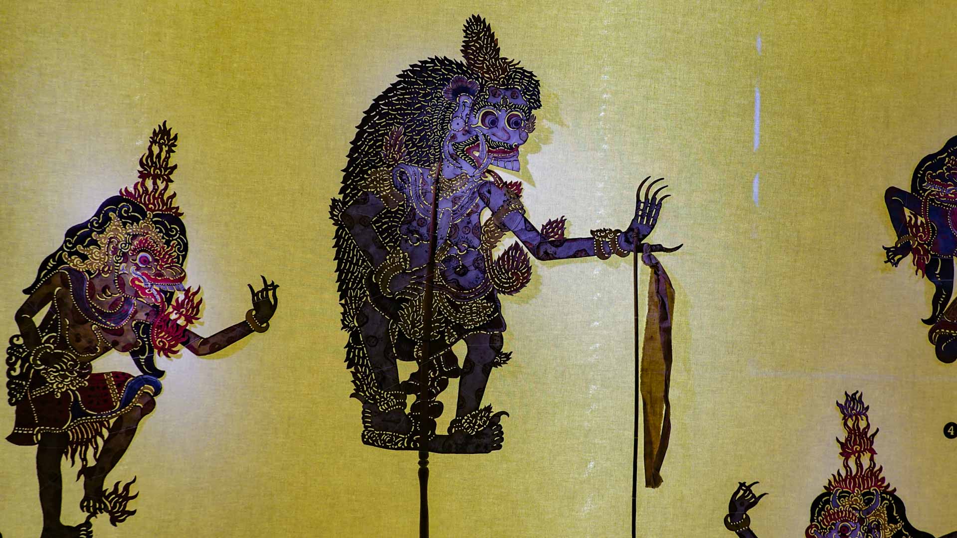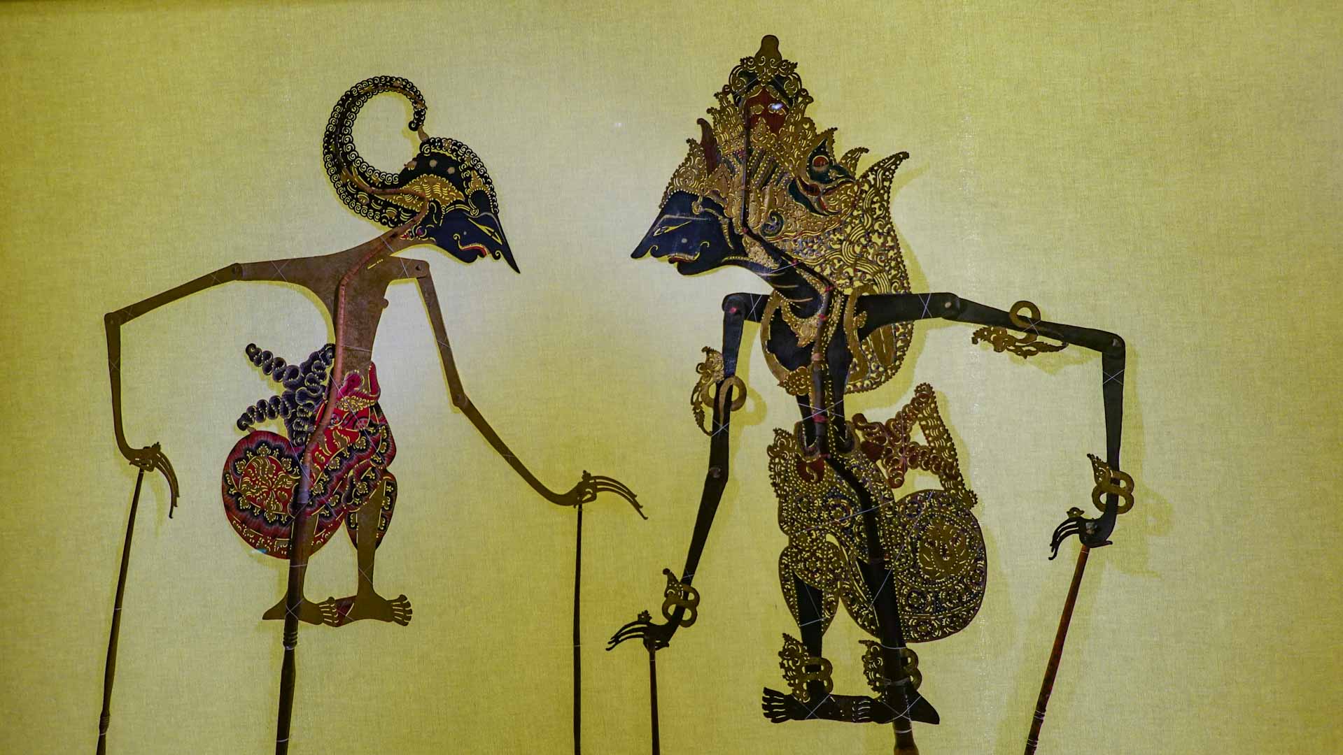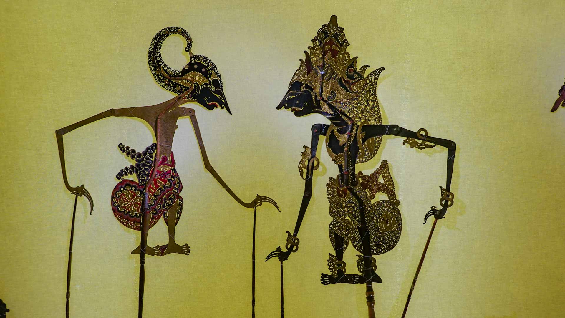 Les marionnettes, appelées wayang, sont fabriquées en cuir de buffle (kulit) minutieusement ciselé et perforé. Des tiges en corne de buffle permettent leur manipulation. Chaque marionnette représente un personnage type : les raffinés (halus), aux traits fins et nobles ; les rudes (kasar), figurant démons et guerriers ; et les bouffons (punakawan), serviteurs apportant humour et sagesse populaire.