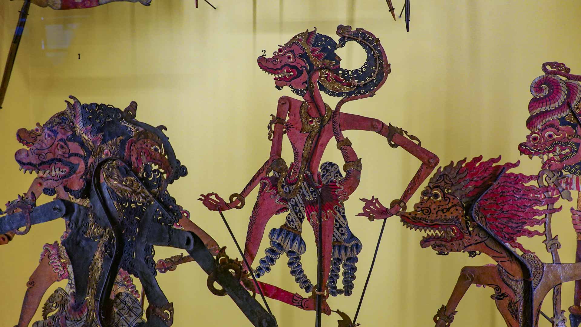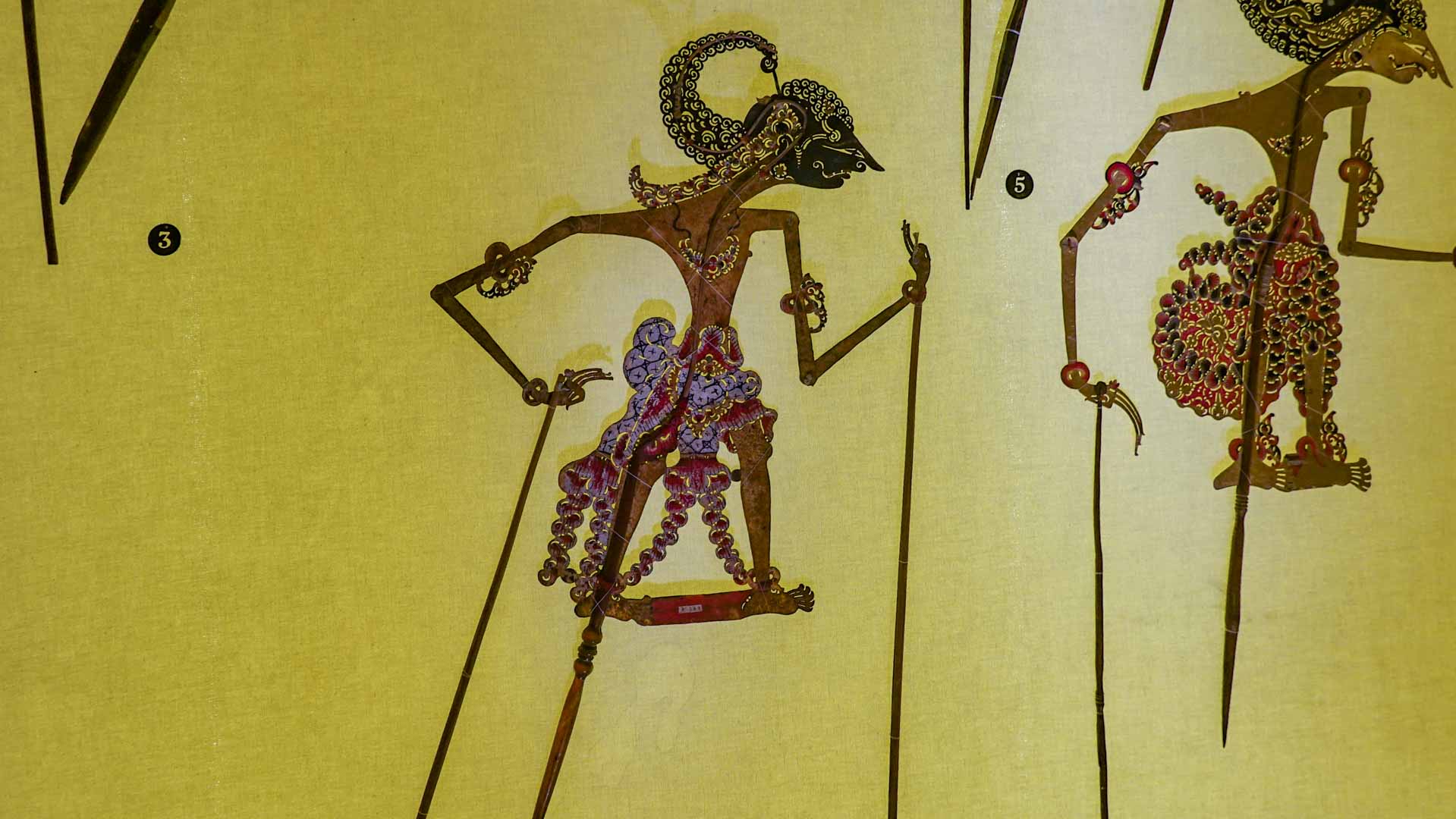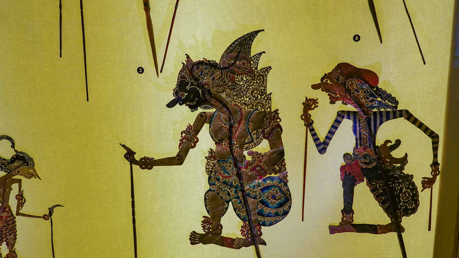 Les marionnettes, appelées wayang, sont fabriquées en cuir de buffle (kulit) minutieusement ciselé et perforé. Des tiges en corne de buffle permettent leur manipulation. Chaque marionnette représente un personnage type : les raffinés (halus), aux traits fins et nobles ; les rudes (kasar), figurant démons et guerriers ; et les bouffons (punakawan), serviteurs apportant humour et sagesse populaire.
