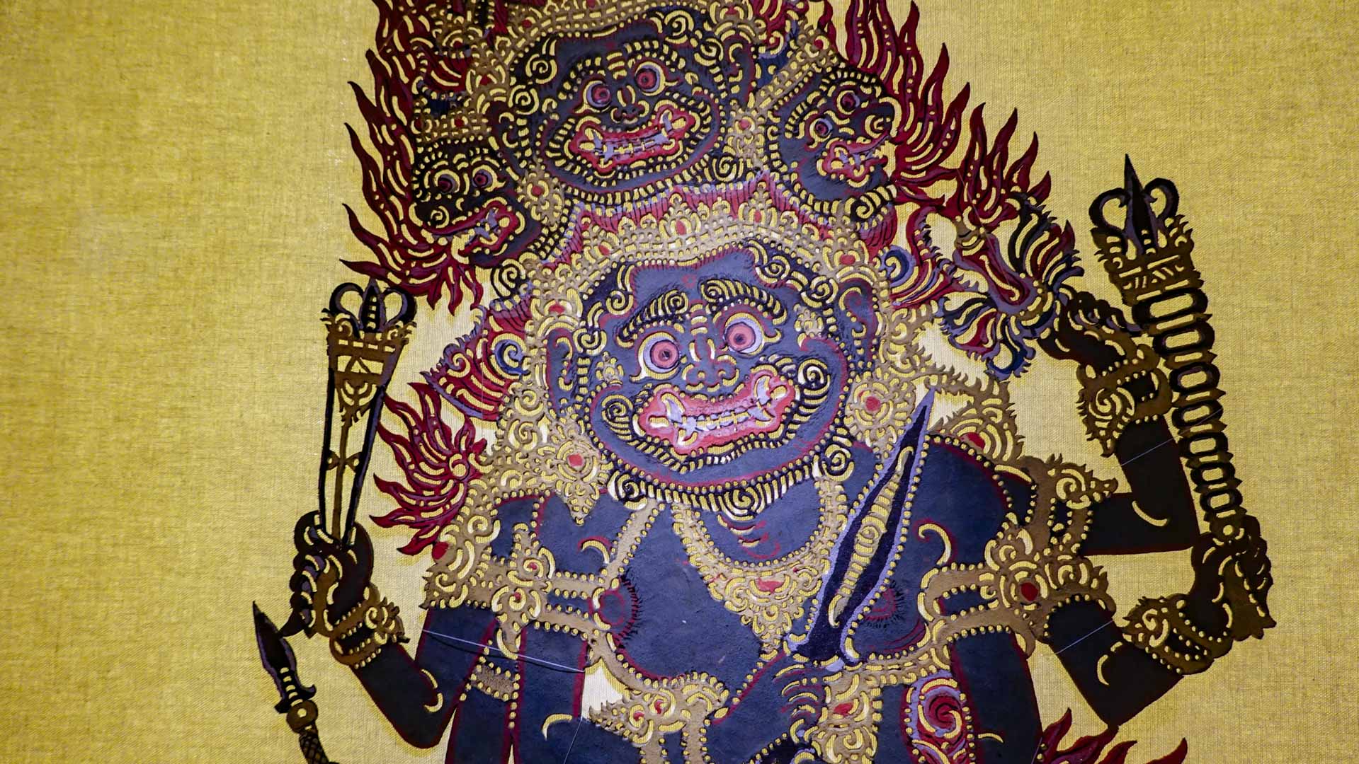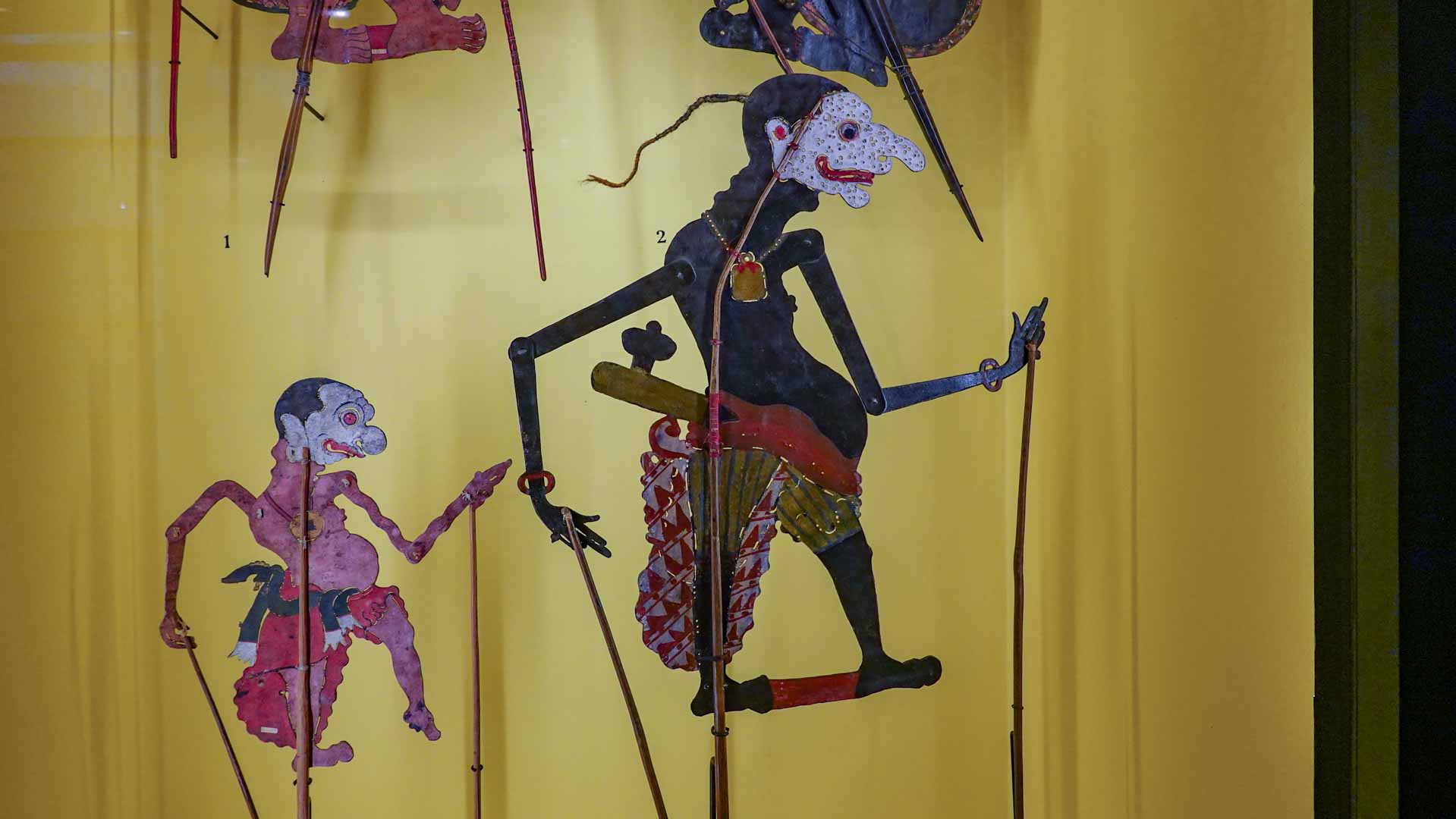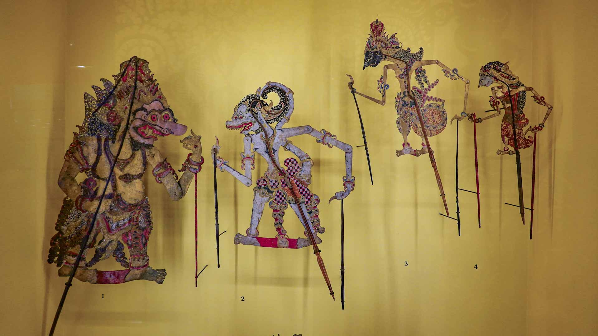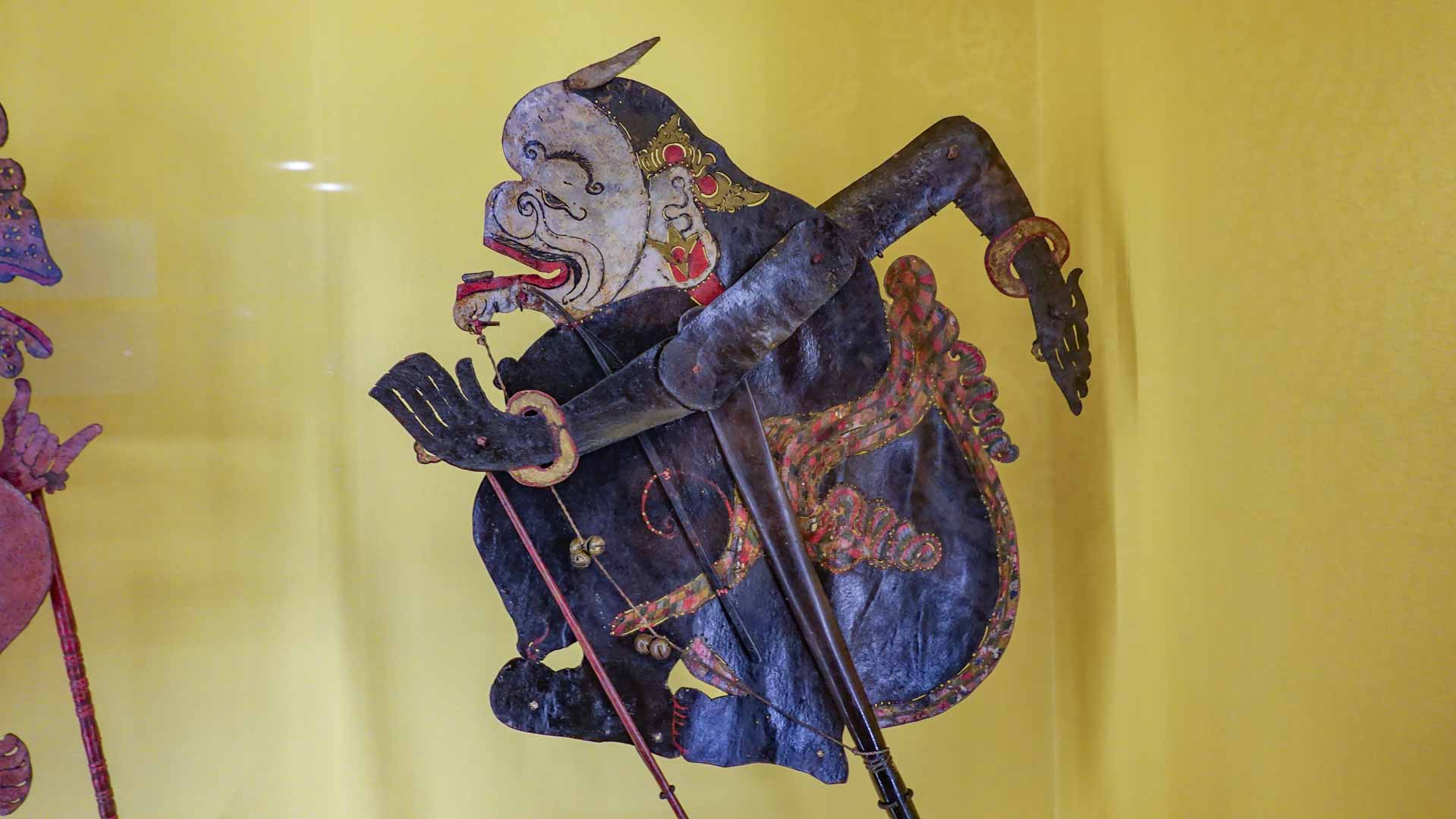 Les marionnettes, appelées wayang, sont fabriquées en cuir de buffle (kulit) minutieusement ciselé et perforé. Des tiges en corne de buffle permettent leur manipulation. Chaque marionnette représente un personnage type : les raffinés (halus), aux traits fins et nobles ; les rudes (kasar), figurant démons et guerriers ; et les bouffons (punakawan), serviteurs apportant humour et sagesse populaire.
