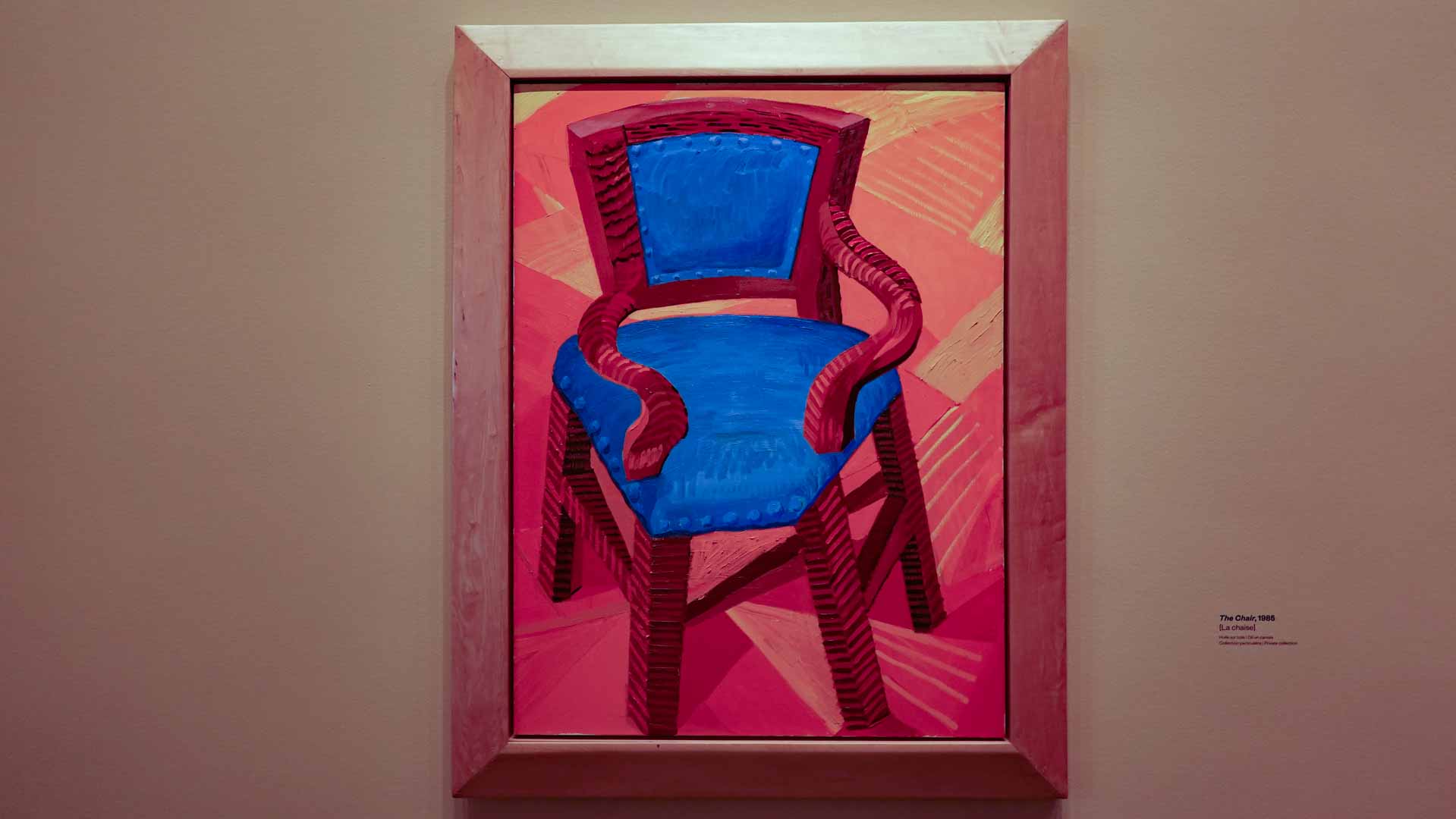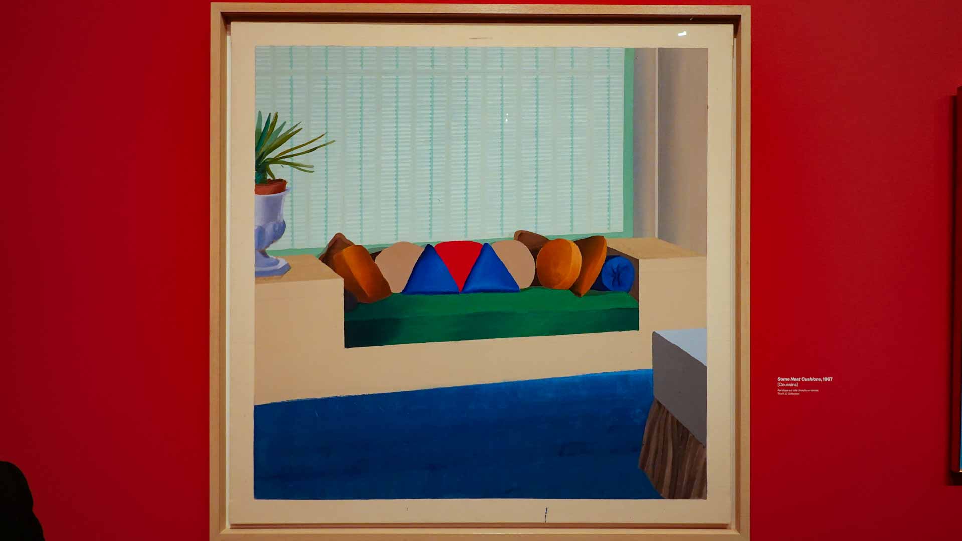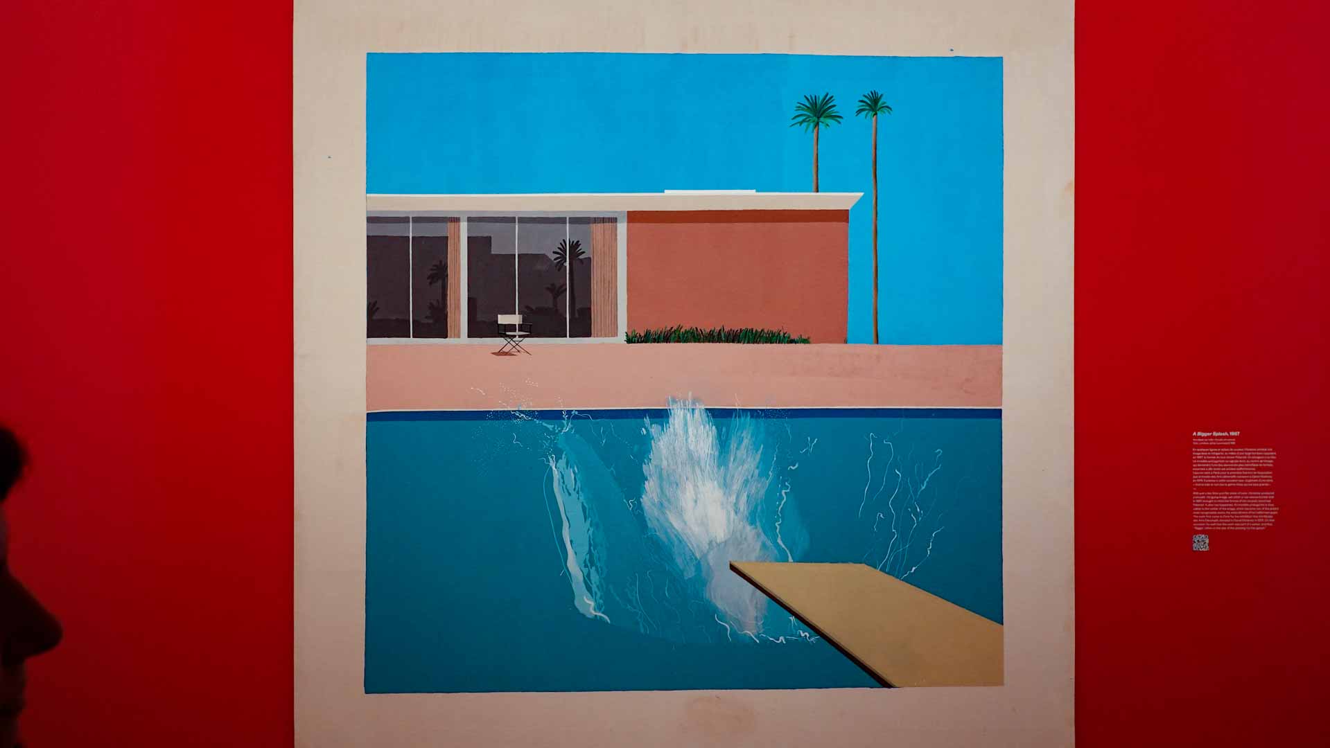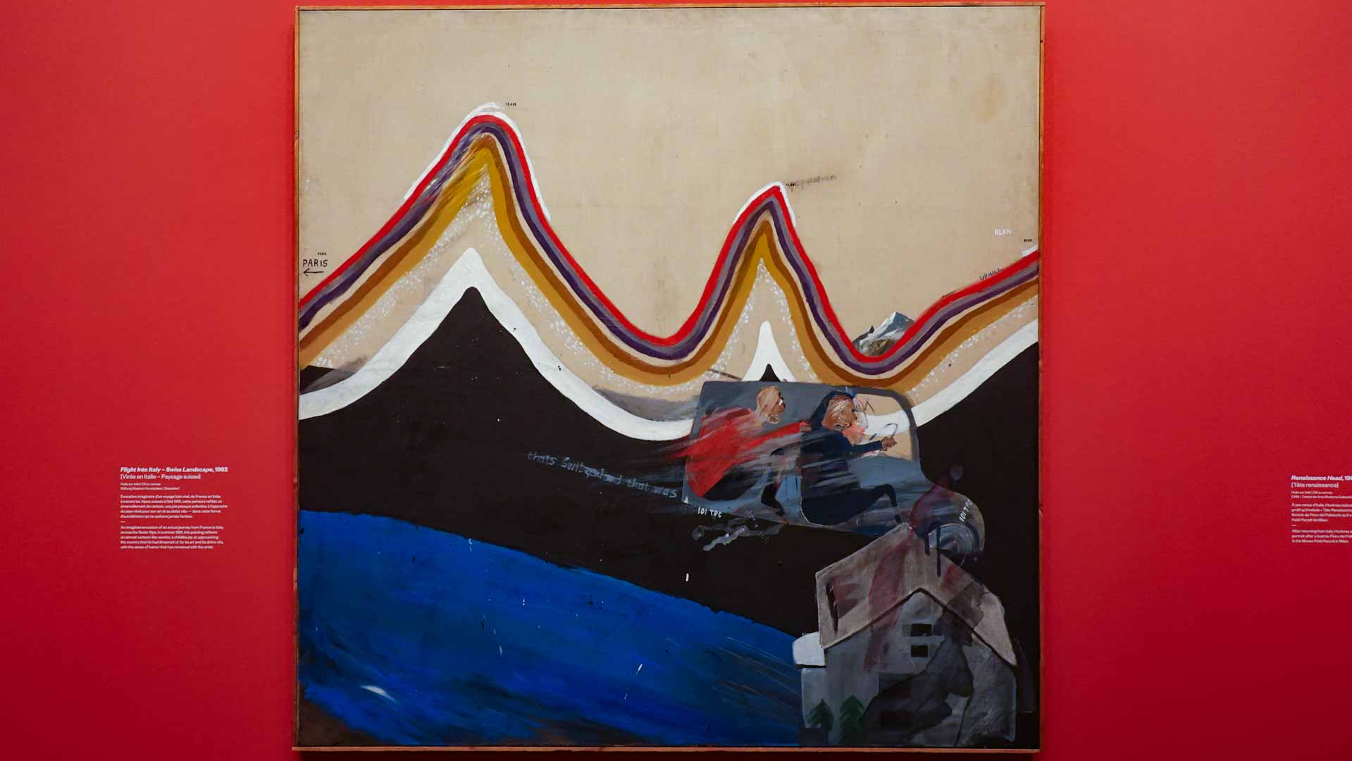 L'exposition débute avec des œuvres de jeunesse, telles que le portrait de son père réalisé en 1955, et des toiles emblématiques des années 1960 abordant l'homosexualité, comme We Two Boys Together Clinging (1961) et Two Men in a Shower (1963). Elle met également en lumière ses célèbres scènes californiennes, notamment A Bigger Splash (1967) et Portrait of an Artist (Pool with Two Figures) (1972), capturant l'esthétique ensoleillée de Los Angeles.