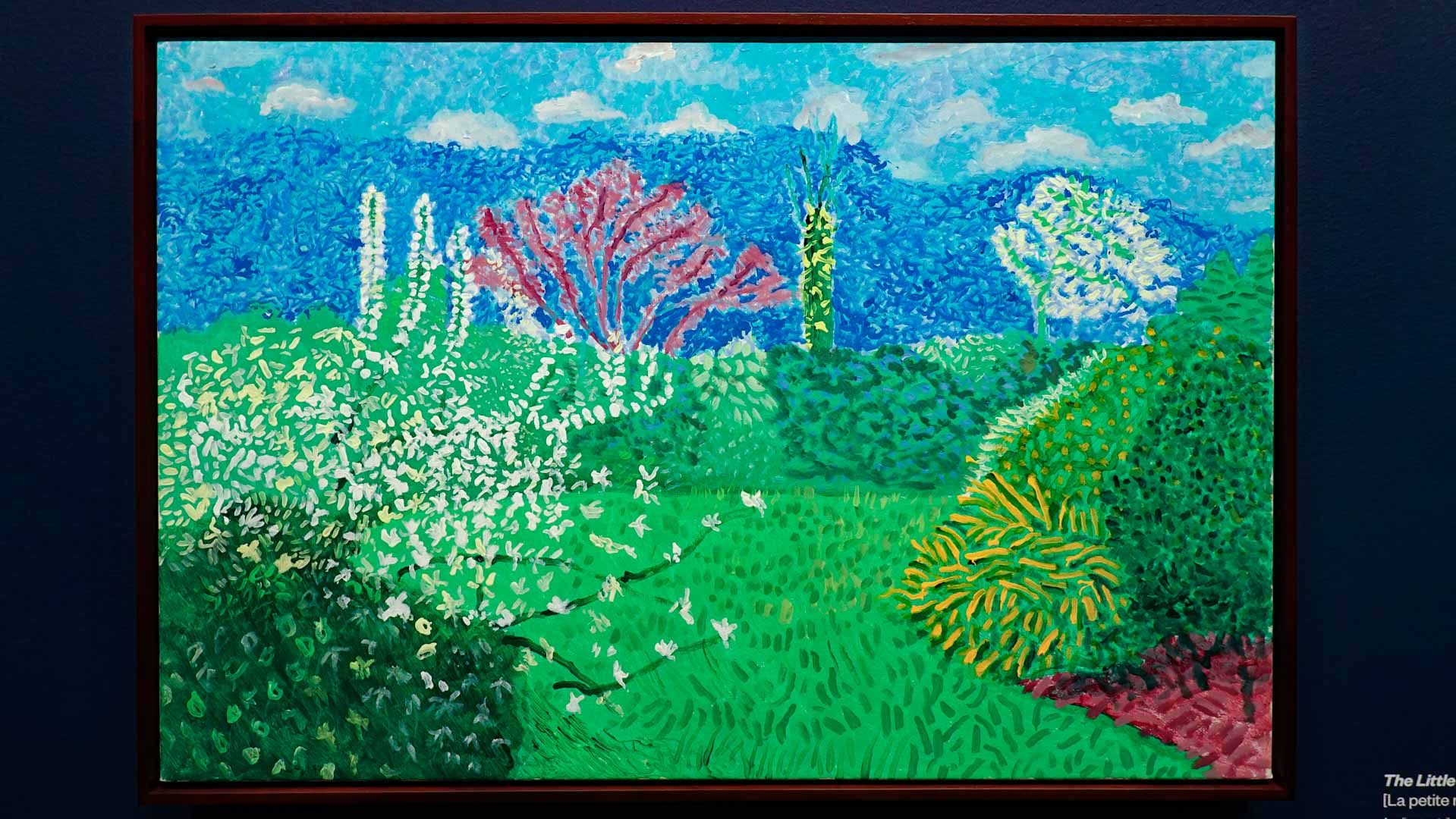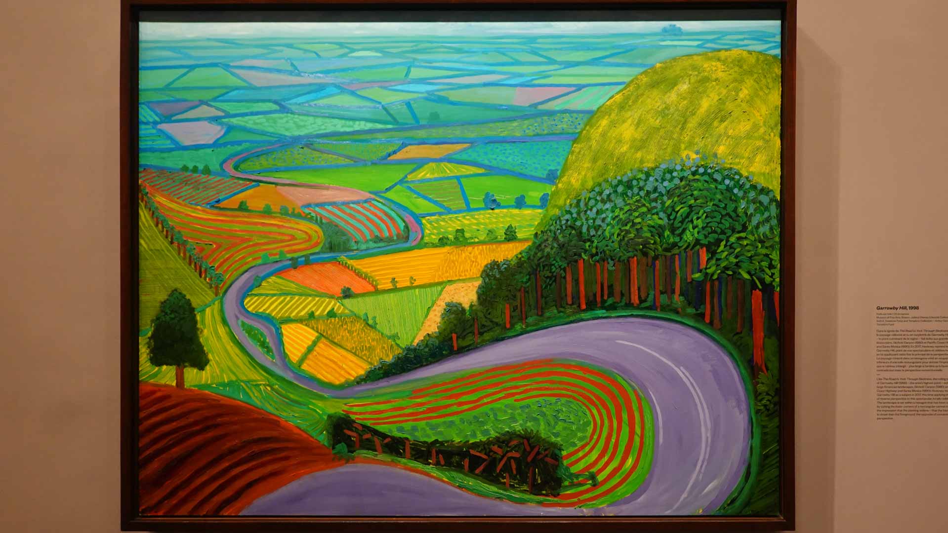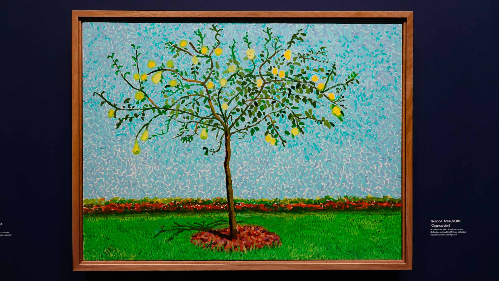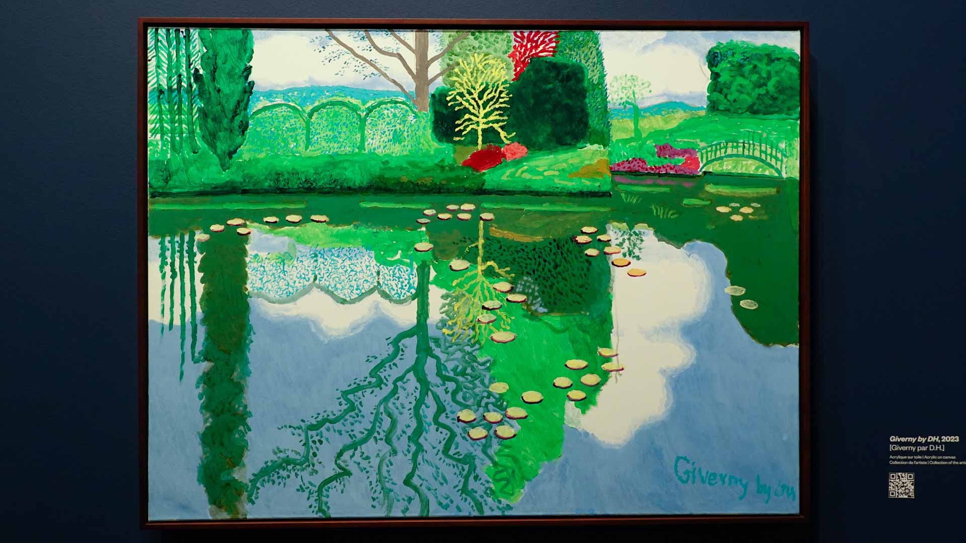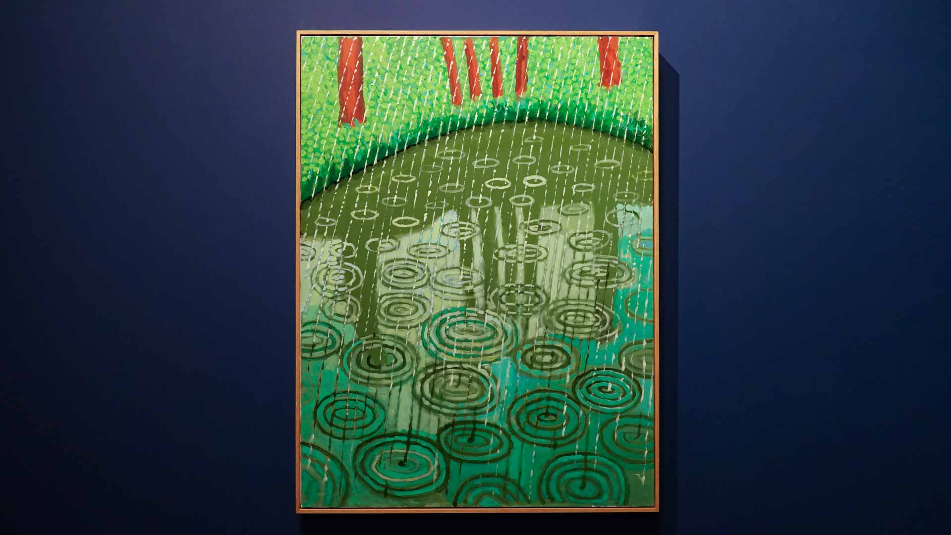 La rétrospective accorde une attention particulière aux œuvres des 25 dernières années, période marquée par une exploration intense du paysage et de la technologie. Parmi les pièces majeures, on retrouve Bigger Trees Near Warter (2007), une composition monumentale de 50 toiles représentant la campagne du Yorkshire, et A Year in Normandie (2020), une frise numérique de 90 mètres inspirée de la tapisserie de Bayeux. Durant le confinement, Hockney a également réalisé plus de 200 dessins sur iPad, capturant la floraison printanière de son jardin normand.