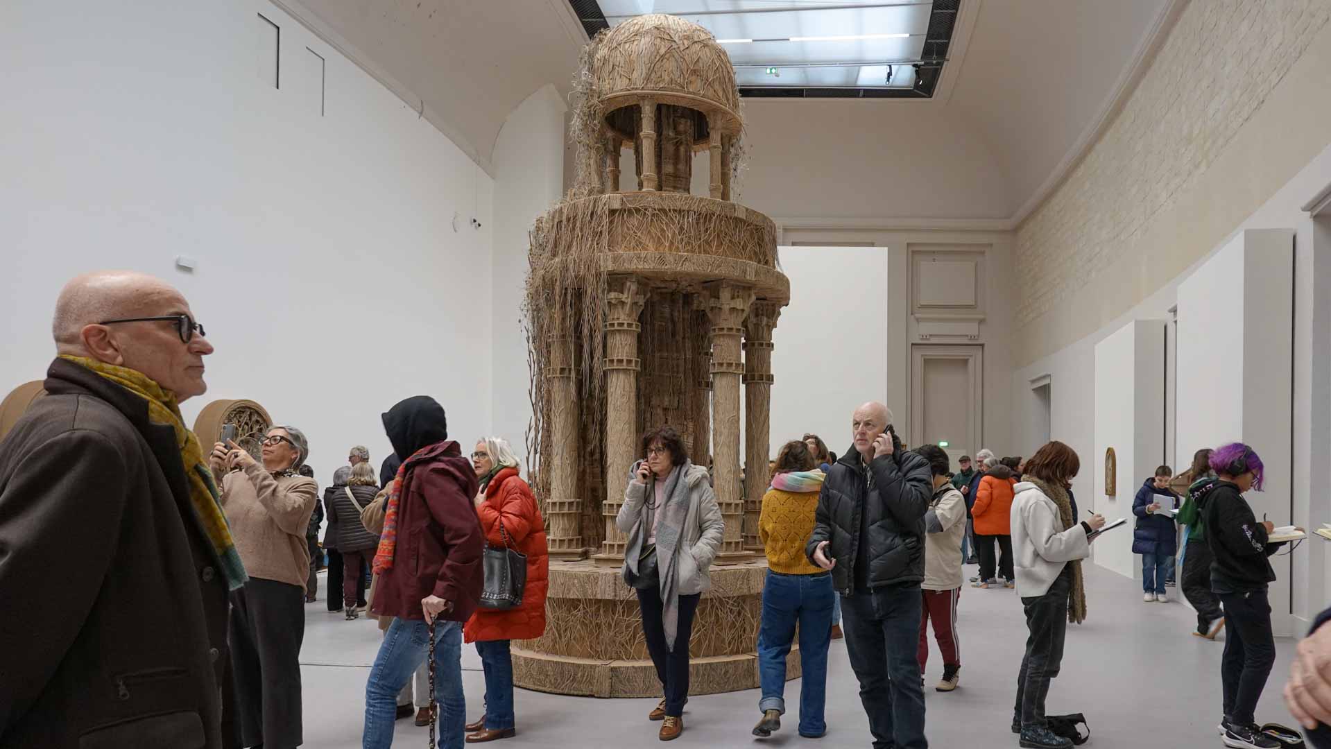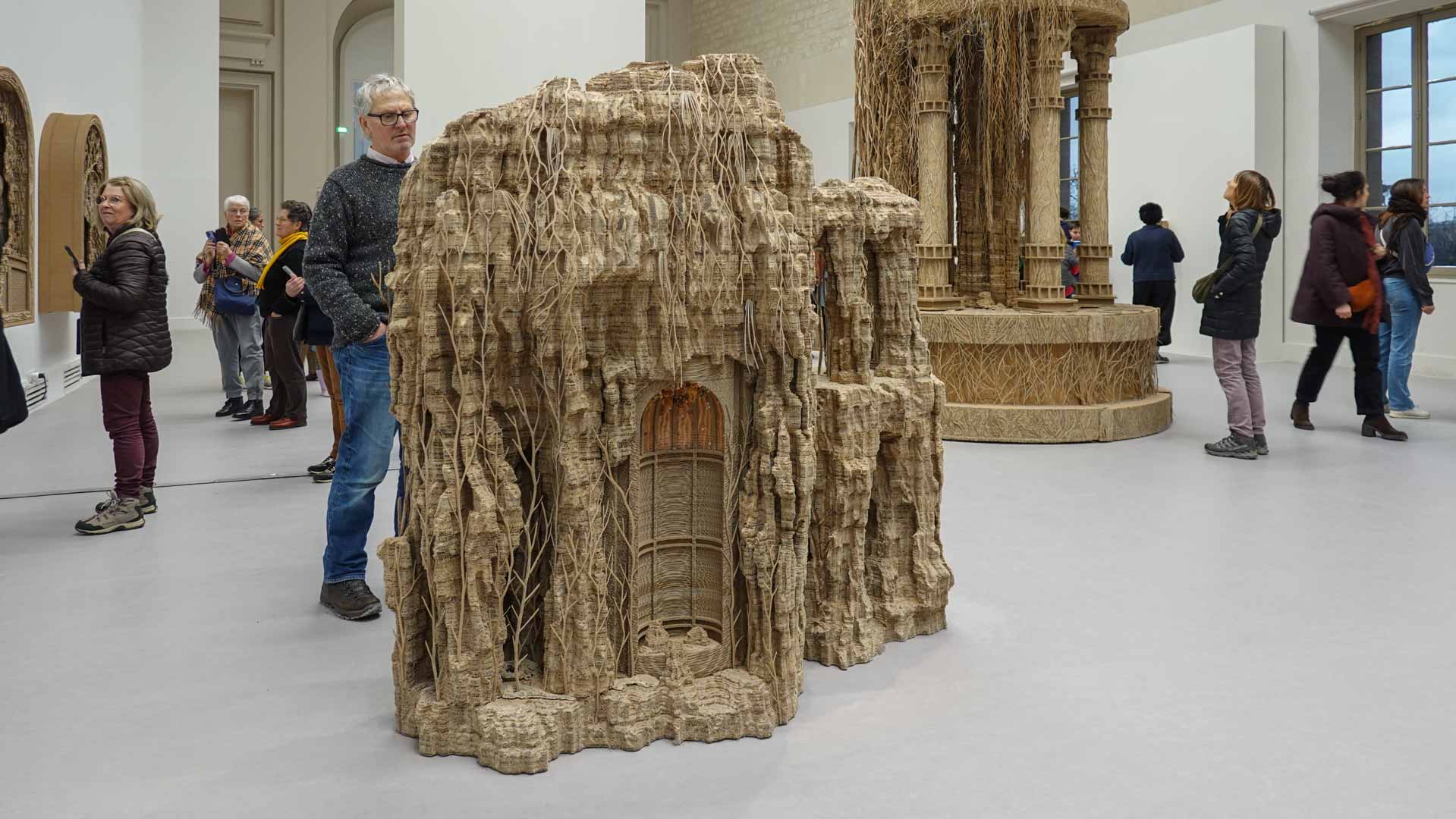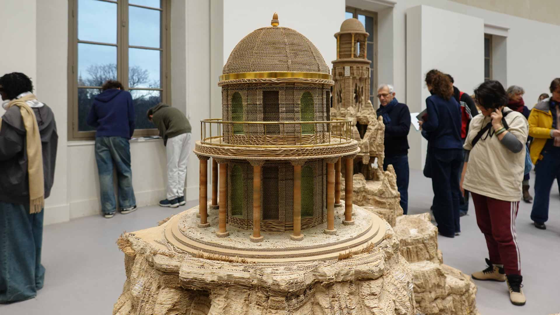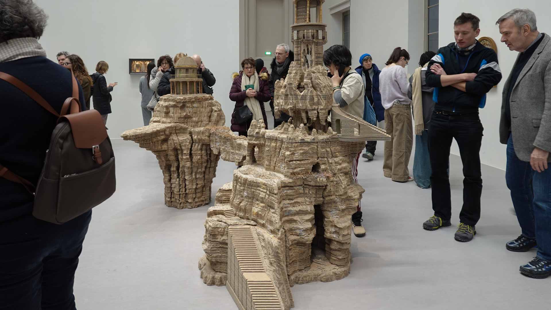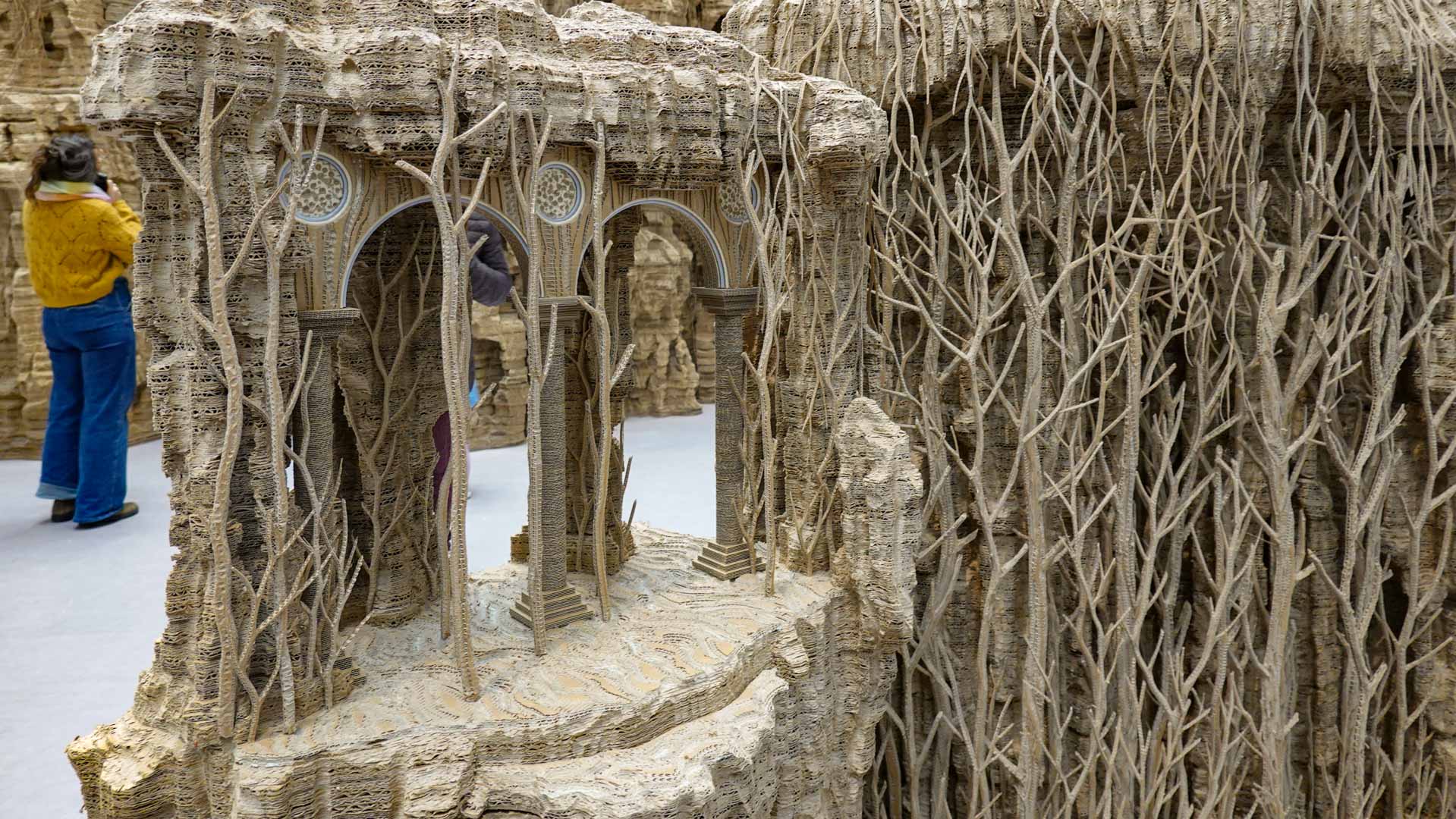 Le titre de l'exposition, Grottesco, renvoie à une légende : celle d'un jeune Romain, tombé par hasard dans une cavité oubliée où, sous terre, il découvre de magnifiques fresques. Ce n'est qu'ultérieurement que l'on reconnaîtra en ces vestiges la Domus Aurea de Néron, ensevelie depuis des siècles. À partir de ce palais qui semblait être une grotte naît le « grotesque » — un style où le végétal, l'architectural, le fantastique s'enlacent dans un imaginaire foisonnant.