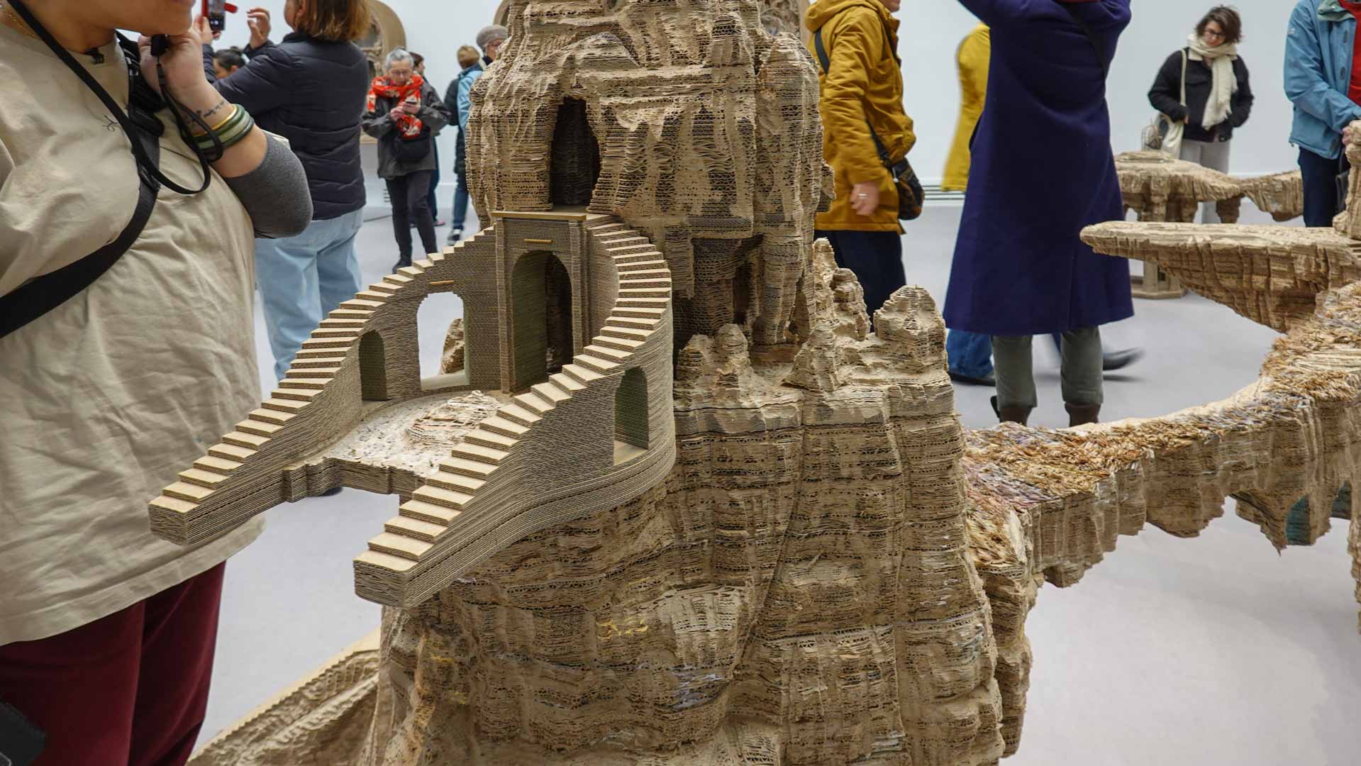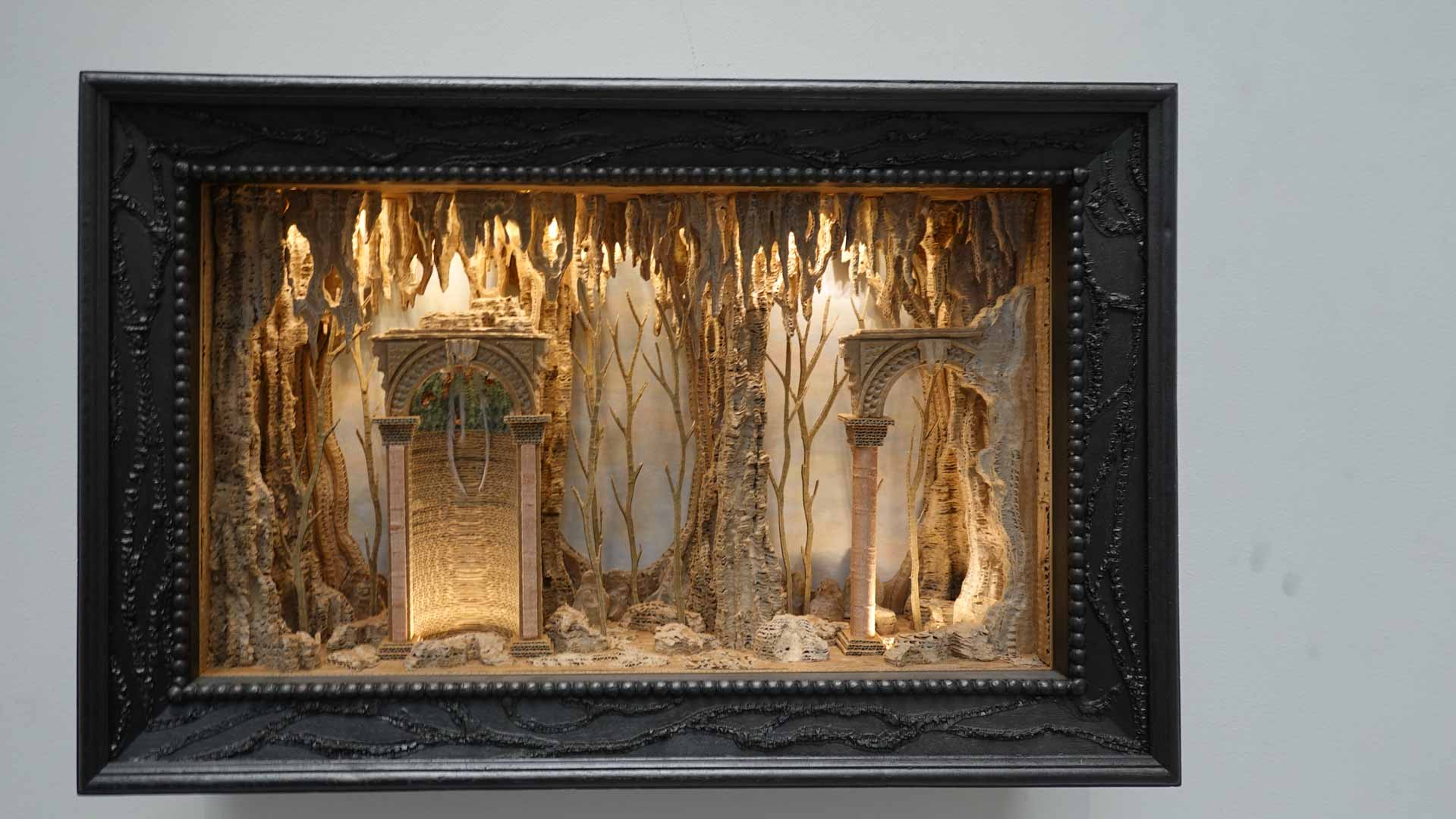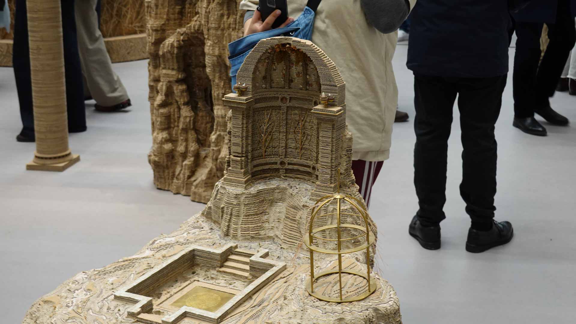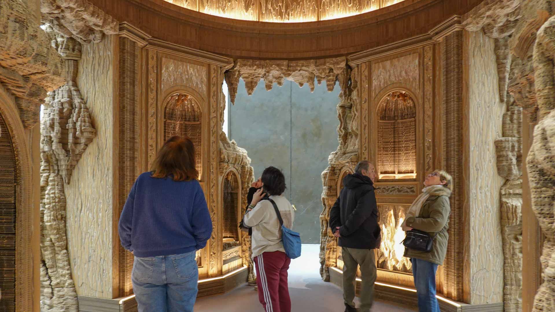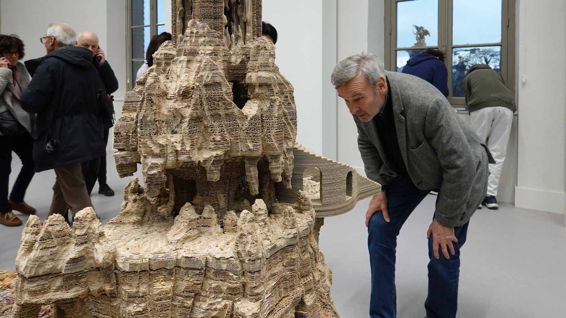 Le titre de l'exposition, Grottesco, renvoie à une légende : celle d'un jeune Romain, tombé par hasard dans une cavité oubliée où, sous terre, il découvre de magnifiques fresques. Ce n'est qu'ultérieurement que l'on reconnaîtra en ces vestiges la Domus Aurea de Néron, ensevelie depuis des siècles. À partir de ce palais qui semblait être une grotte naît le « grotesque » — un style où le végétal, l'architectural, le fantastique s'enlacent dans un imaginaire foisonnant.