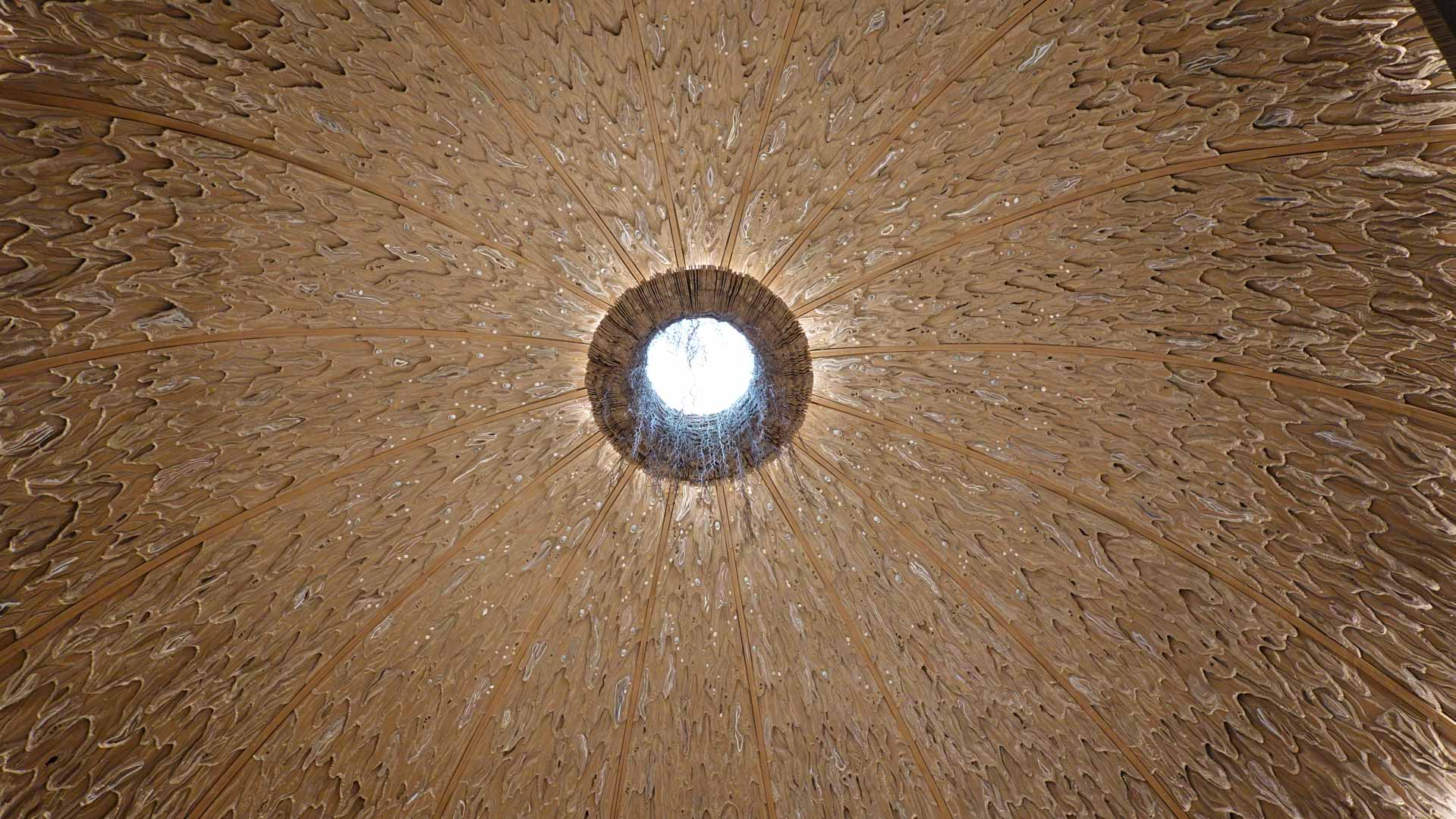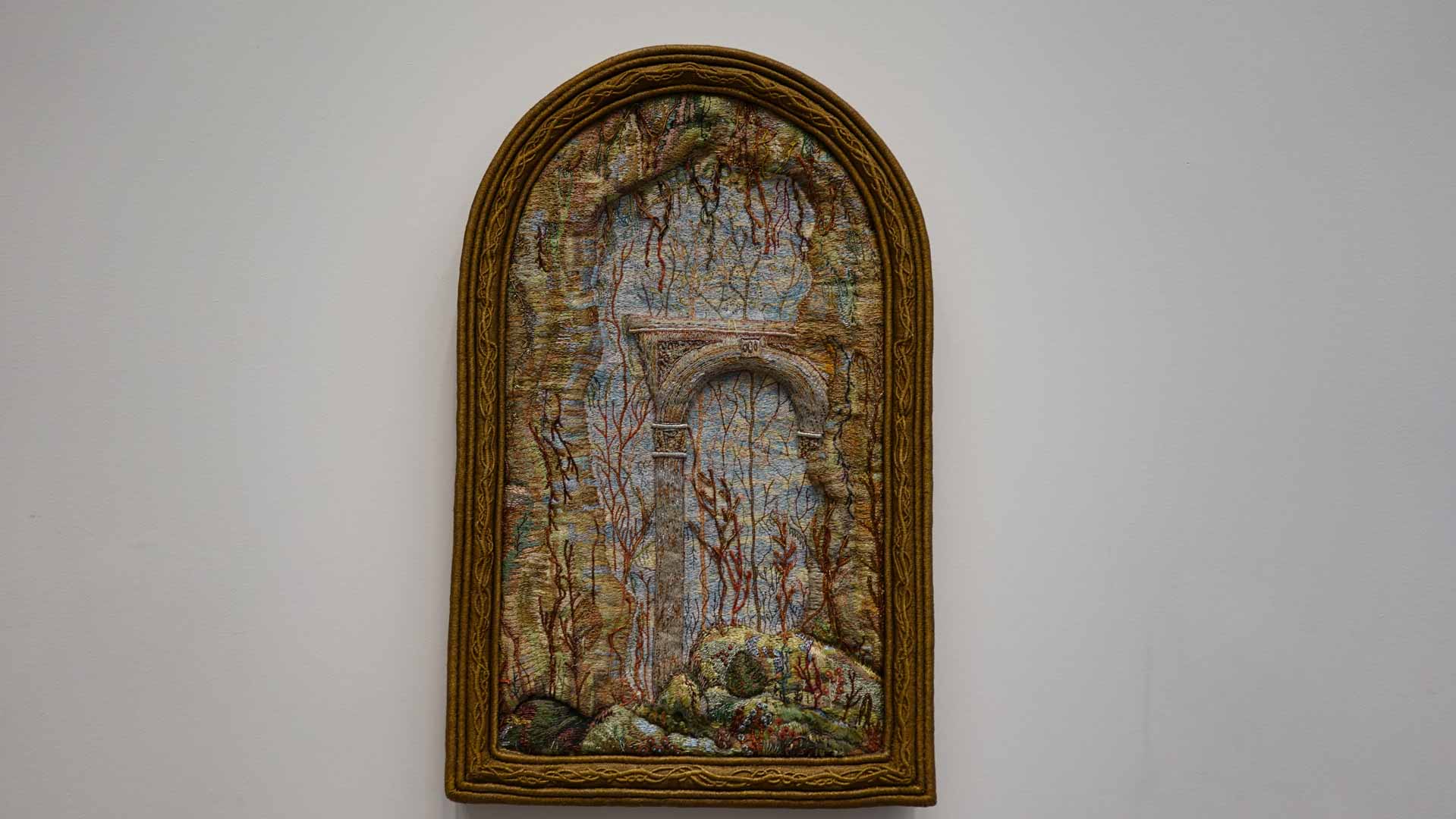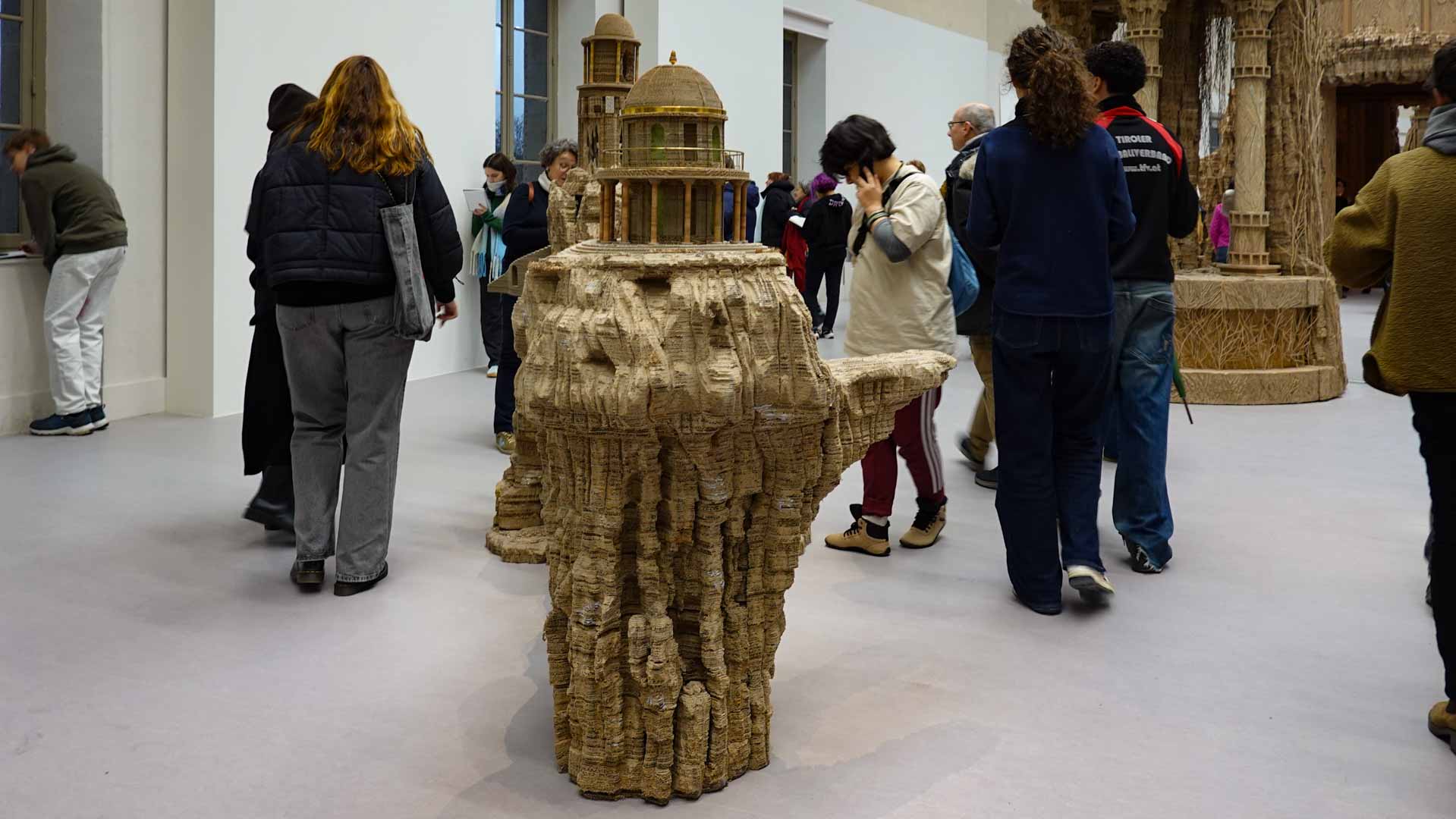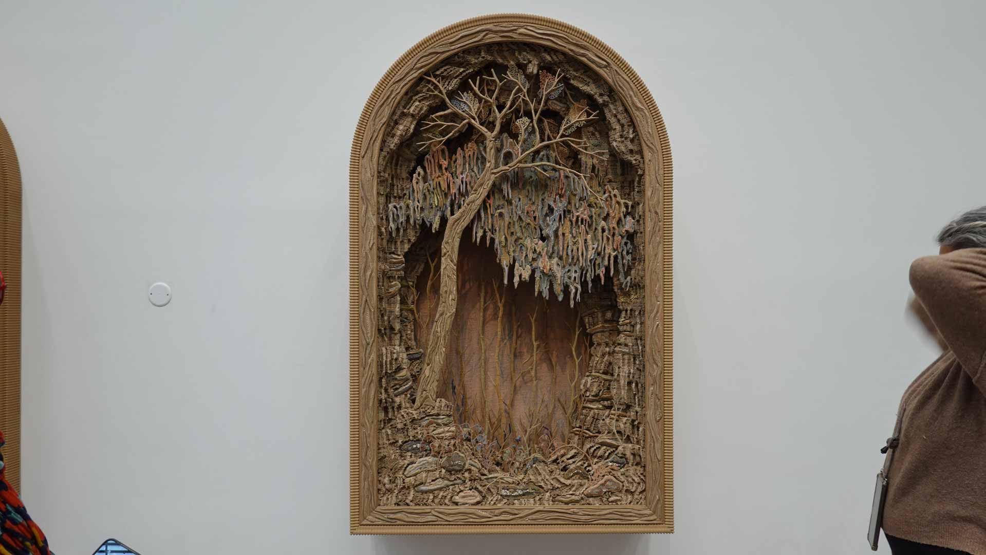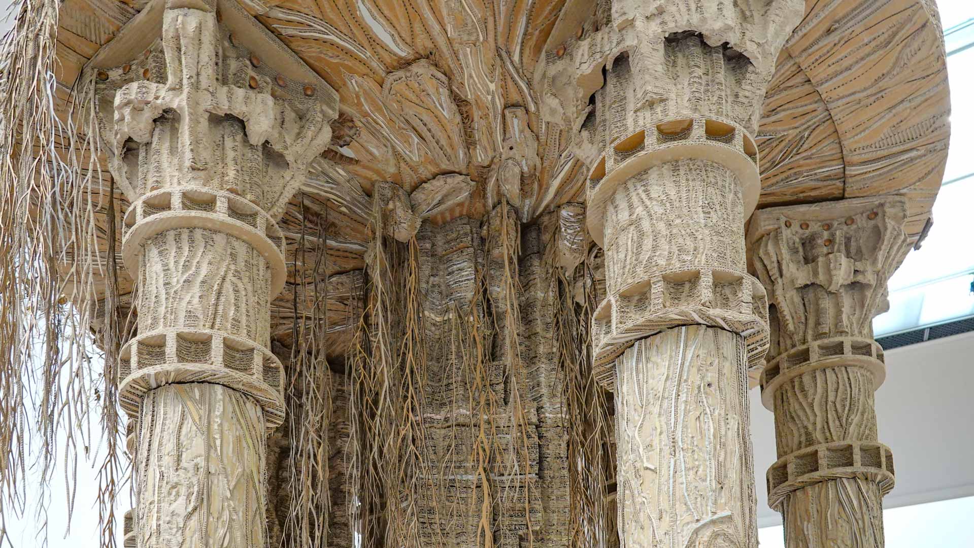 Le titre de l'exposition, Grottesco, renvoie à une légende : celle d'un jeune Romain, tombé par hasard dans une cavité oubliée où, sous terre, il découvre de magnifiques fresques. Ce n'est qu'ultérieurement que l'on reconnaîtra en ces vestiges la Domus Aurea de Néron, ensevelie depuis des siècles. À partir de ce palais qui semblait être une grotte naît le « grotesque » — un style où le végétal, l'architectural, le fantastique s'enlacent dans un imaginaire foisonnant.