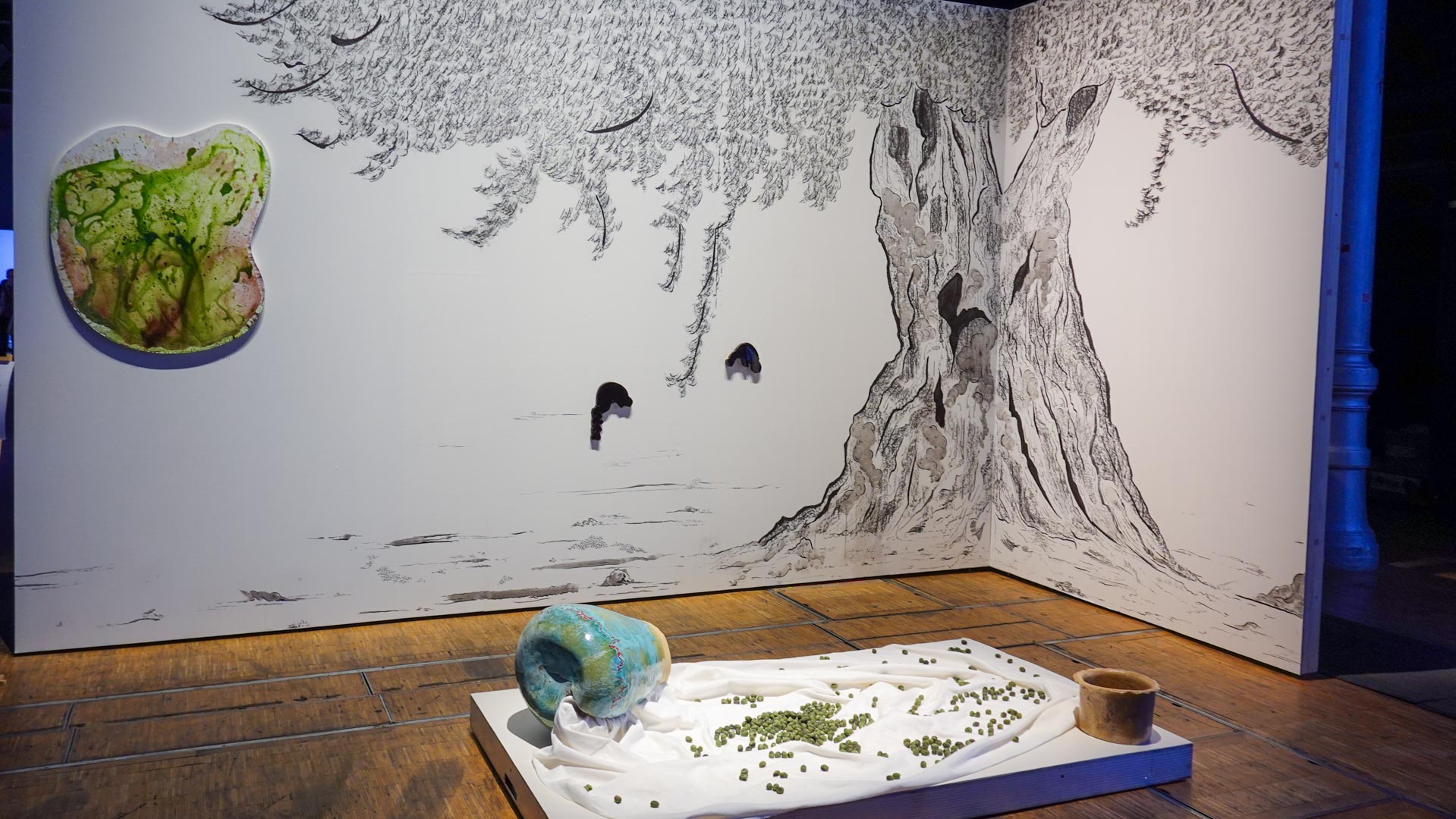 Lieu de découverte libre et stimulant pour le public, entièrement composée d’éléments de récupération (cimaises, socles, vitrines) d’anciens événements de La Villette sur plus de 3500 m2, 100% L’EXPO est également pensée comme un tremplin professionnel pour ces artistes en début de carrière, l’opportunité de s’inscrire dans un réseau.