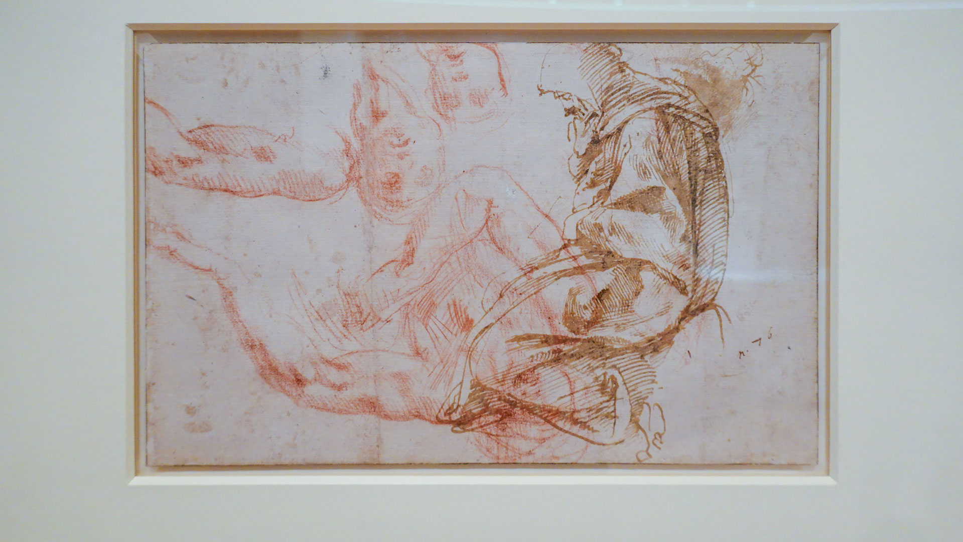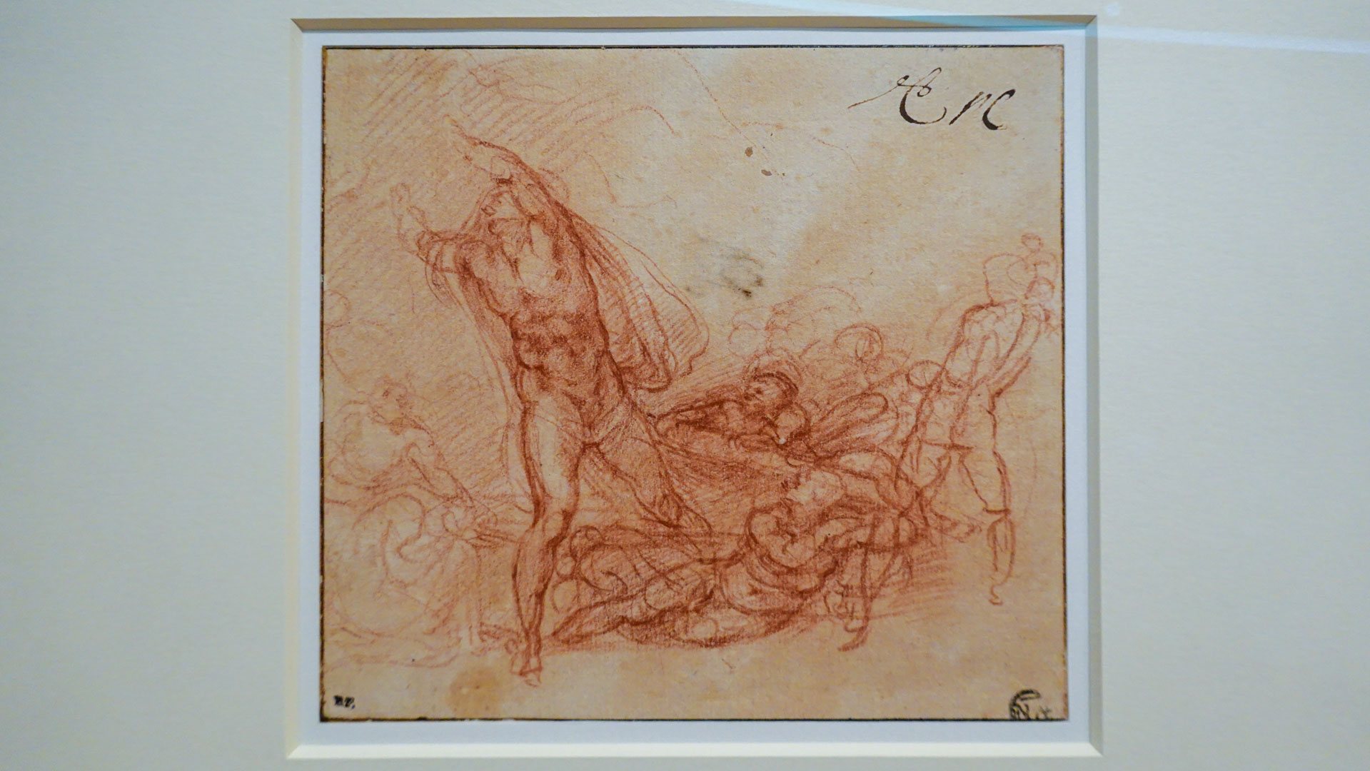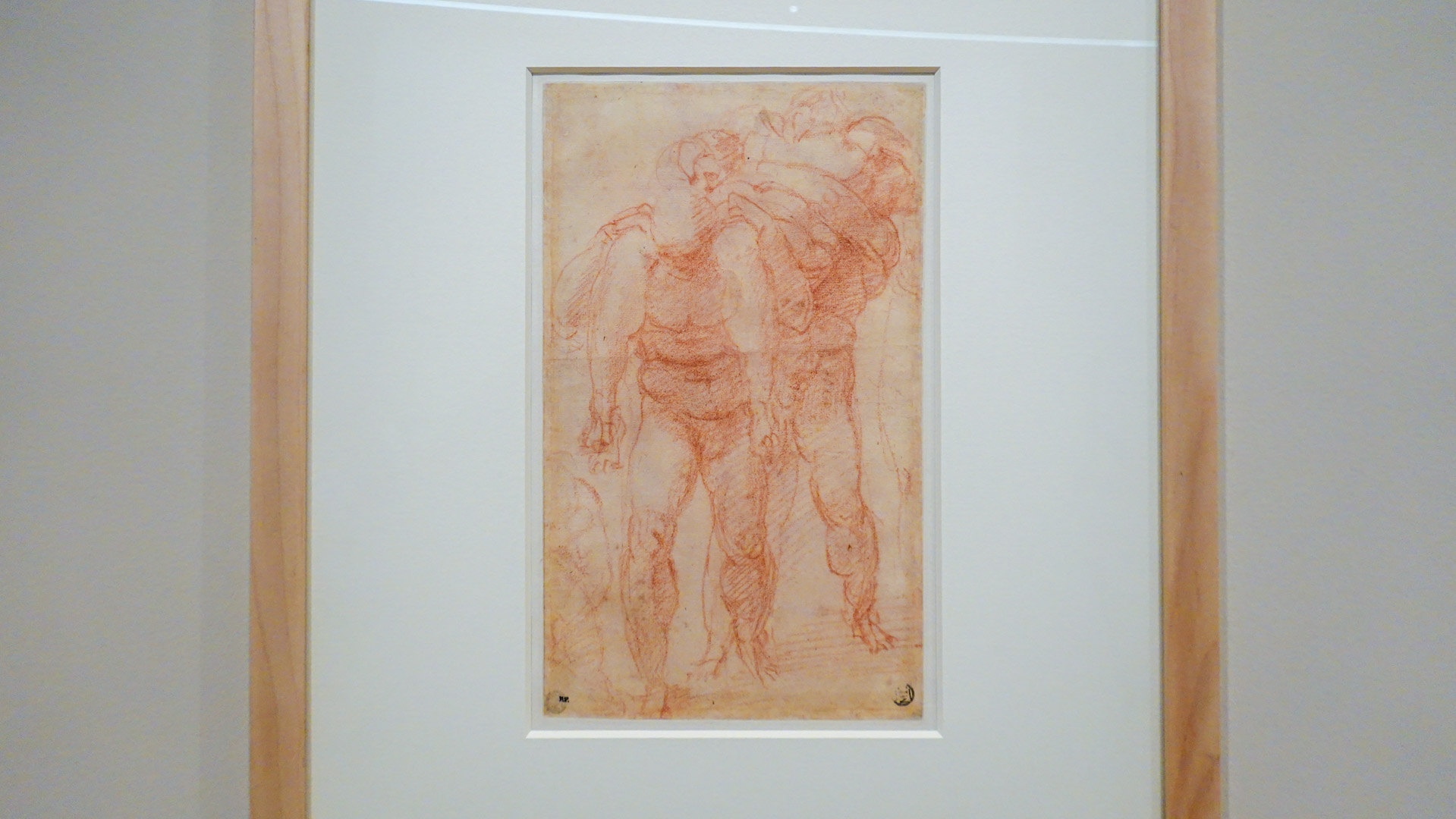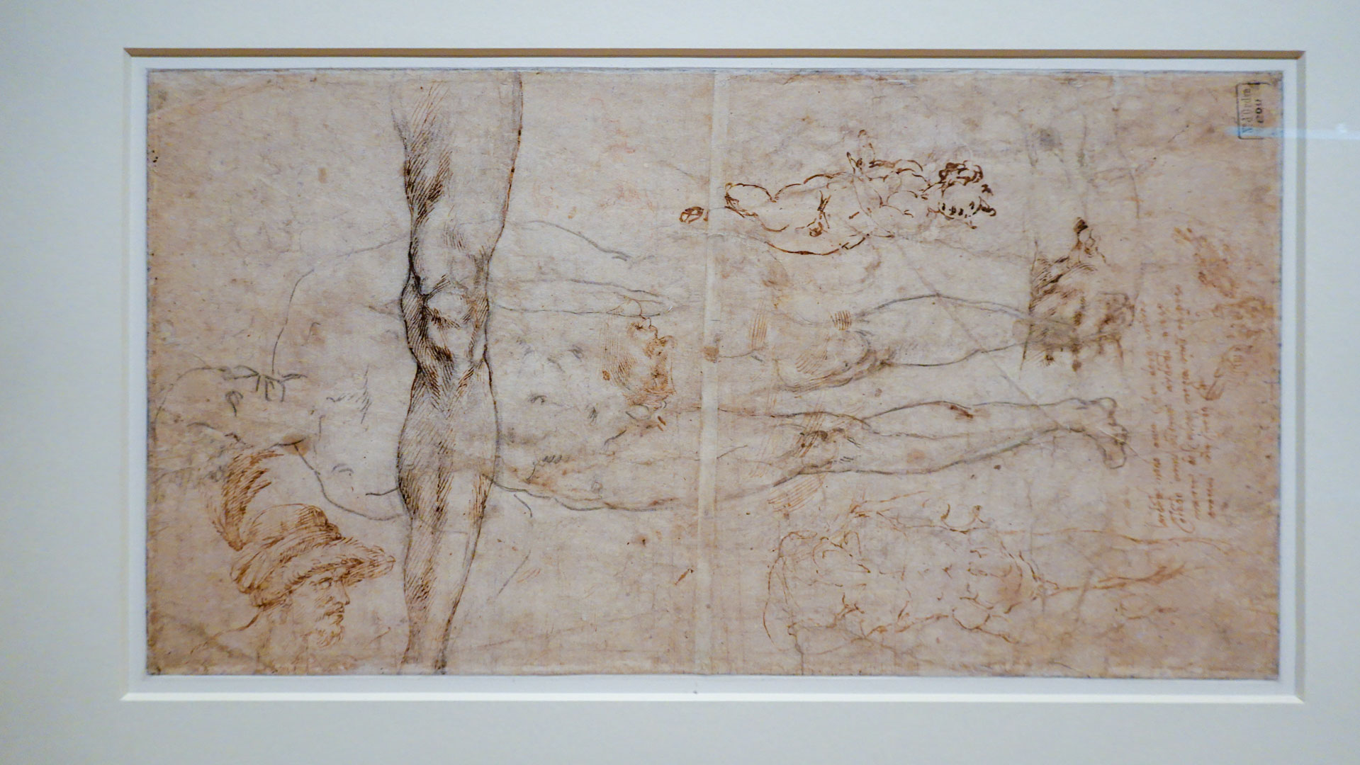Un choix de dessins à la sanguine et à l'estompe de Michel-Ange et de Rodin témoigne de l'animation des corps suggérée par la vibration des contours, répondant aux effets de surface produit par le non finito. Celui-ci, en accrochant la lumière, crée un doux halo lumineux autour du marbre, sorte de sfumato ancrant l'œuvre dans l'atmosphère environnante.