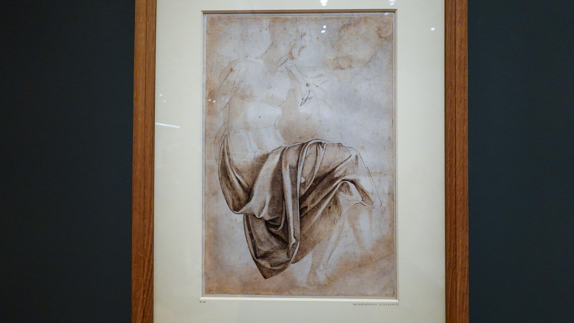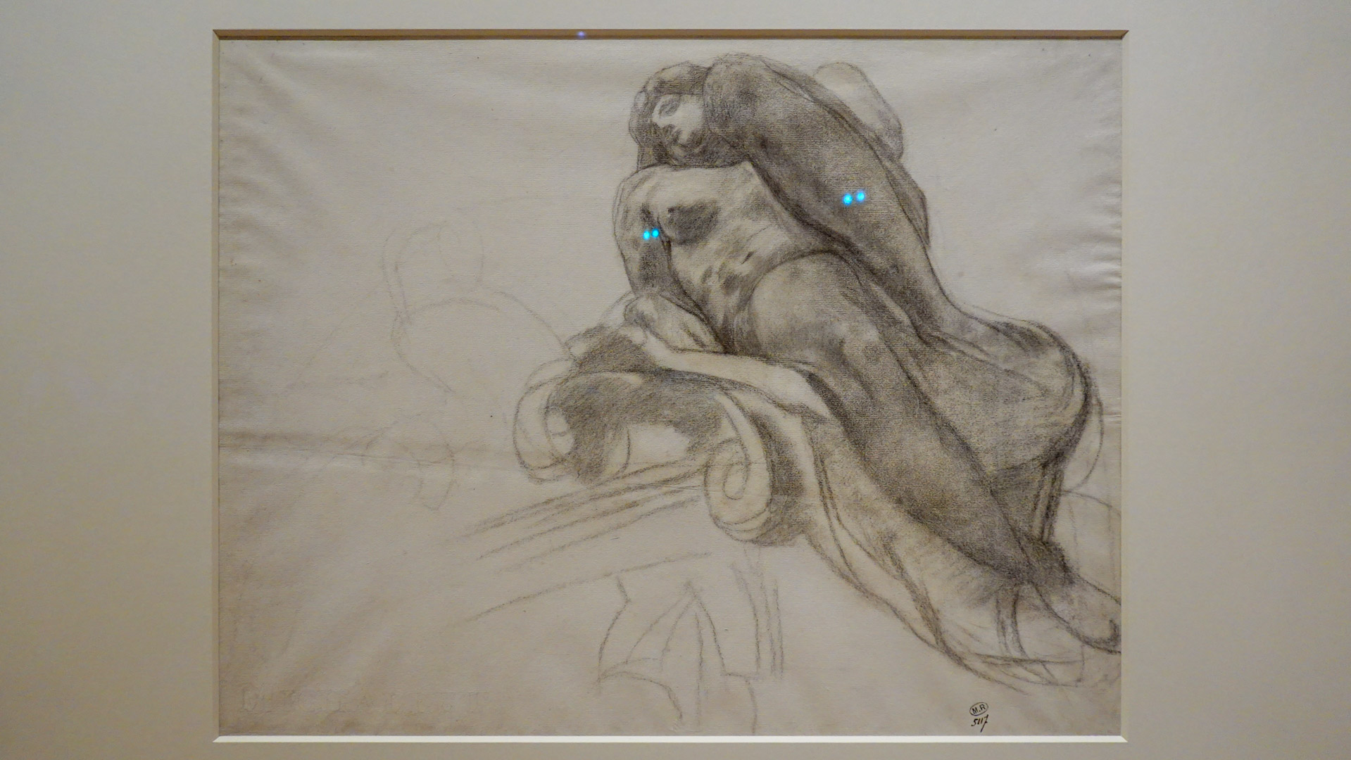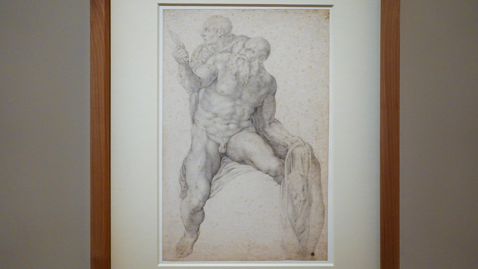 Un choix de dessins à la sanguine et à l'estompe de Michel-Ange et de Rodin témoigne de l'animation des corps suggérée par la vibration des contours, répondant aux effets de surface produit par le non finito. Celui-ci, en accrochant la lumière, crée un doux halo lumineux autour du marbre, sorte de sfumato ancrant l'œuvre dans l'atmosphère environnante.