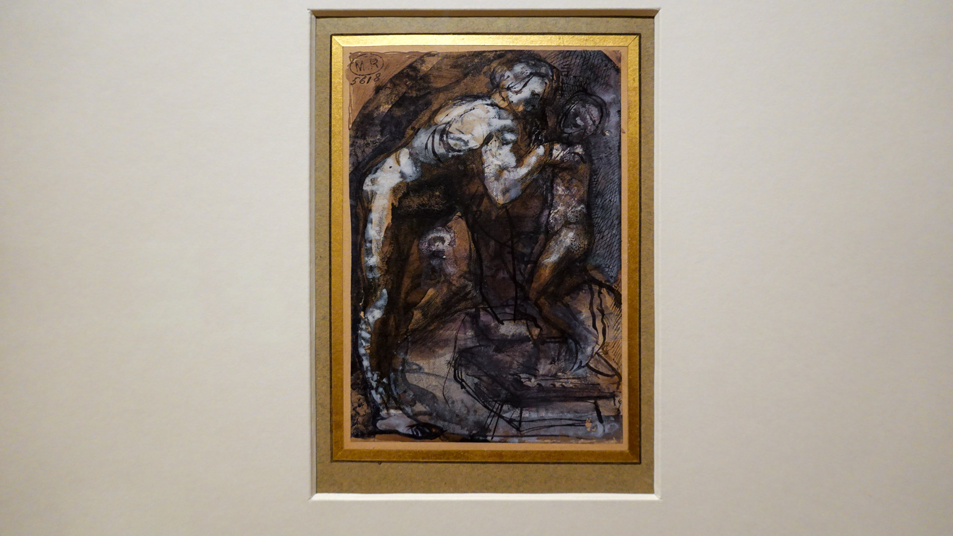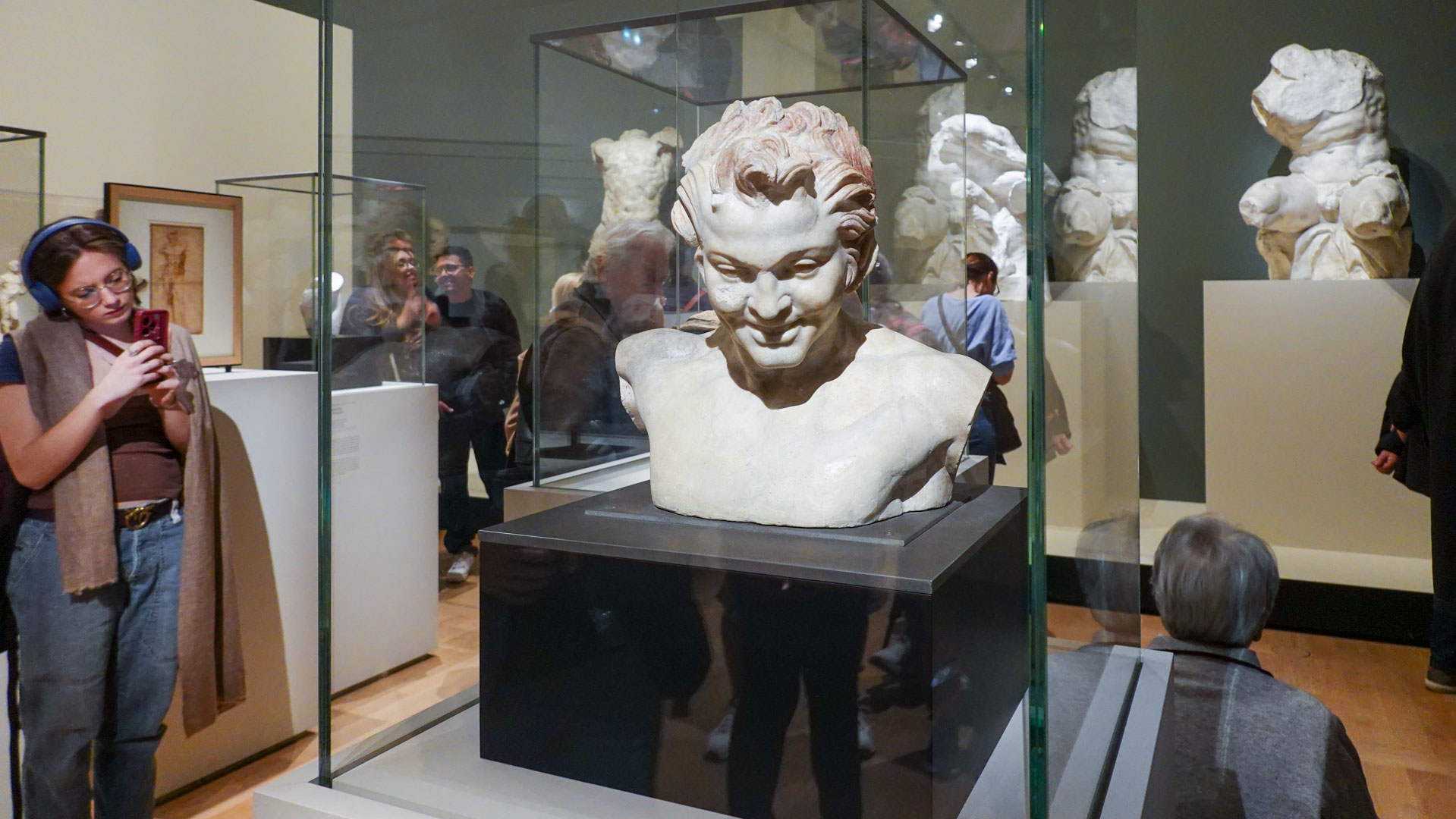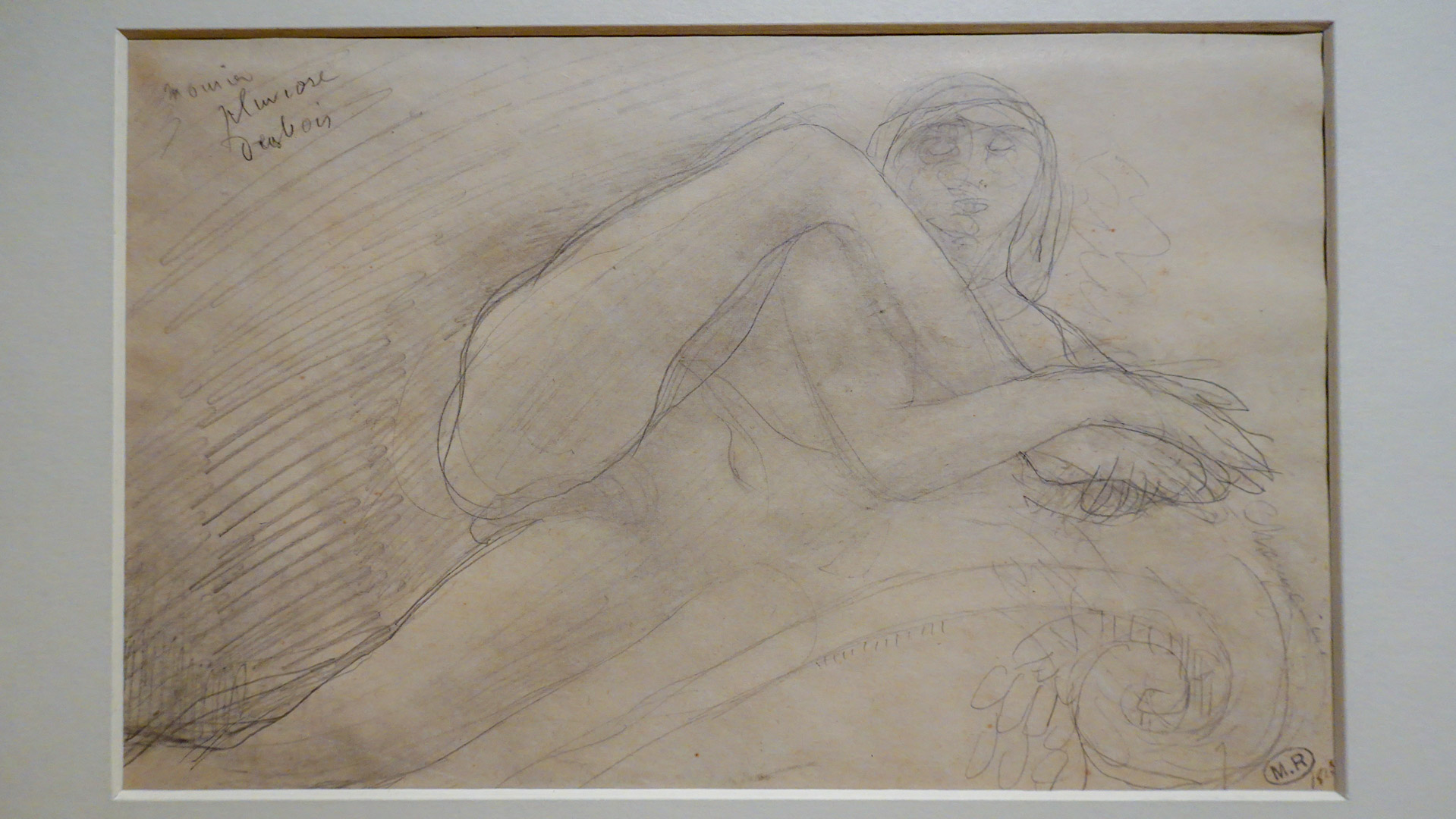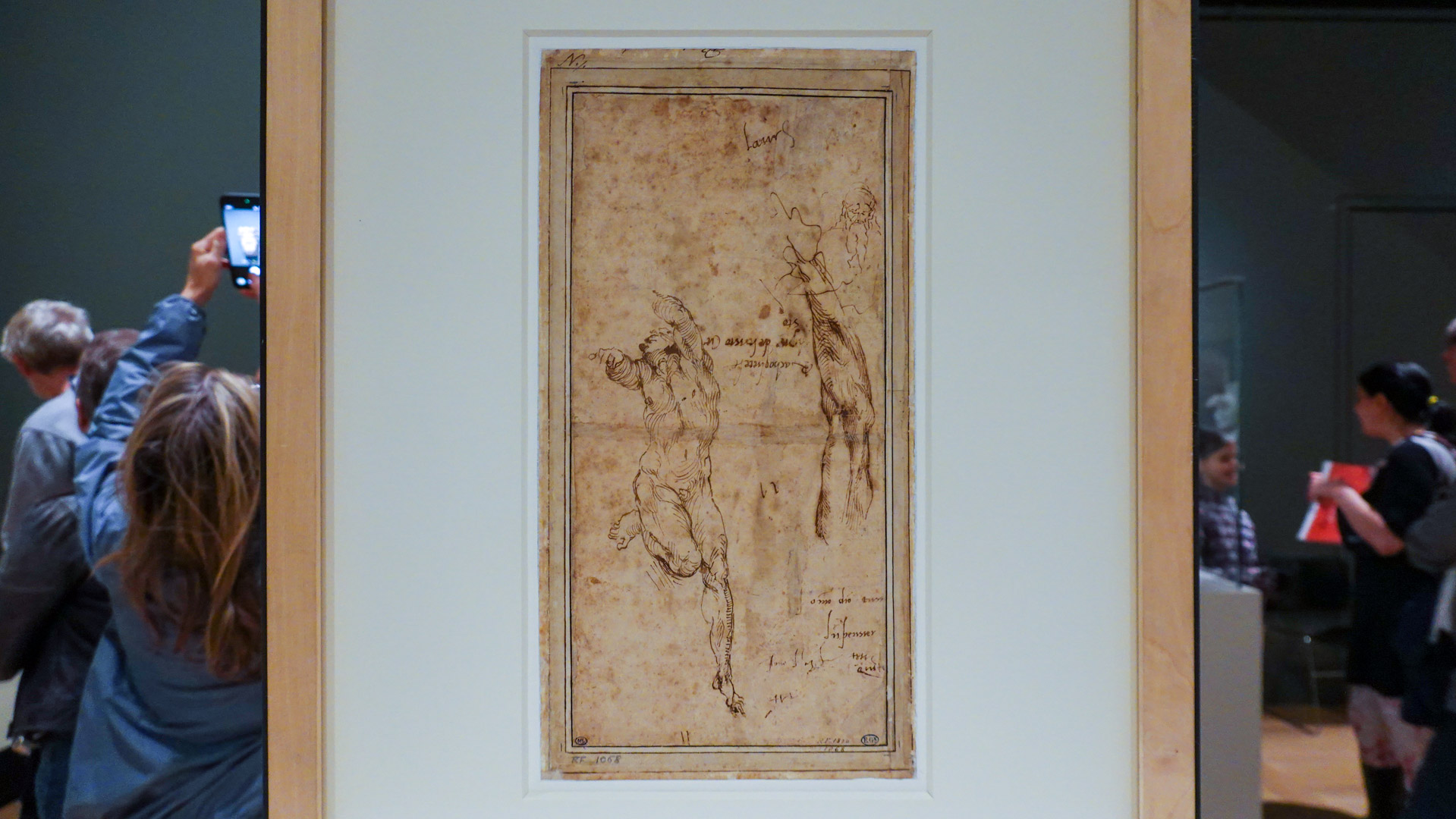Un choix de dessins à la sanguine et à l'estompe de Michel-Ange et de Rodin témoigne de l'animation des corps suggérée par la vibration des contours, répondant aux effets de surface produit par le non finito. Celui-ci, en accrochant la lumière, crée un doux halo lumineux autour du marbre, sorte de sfumato ancrant l'œuvre dans l'atmosphère environnante.