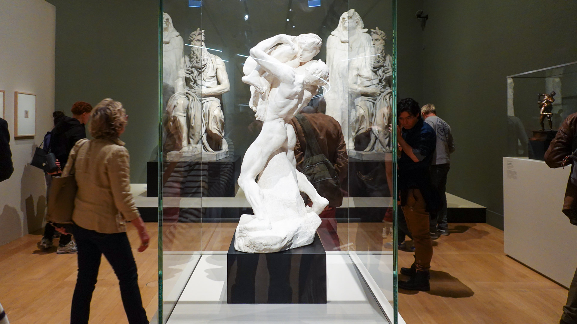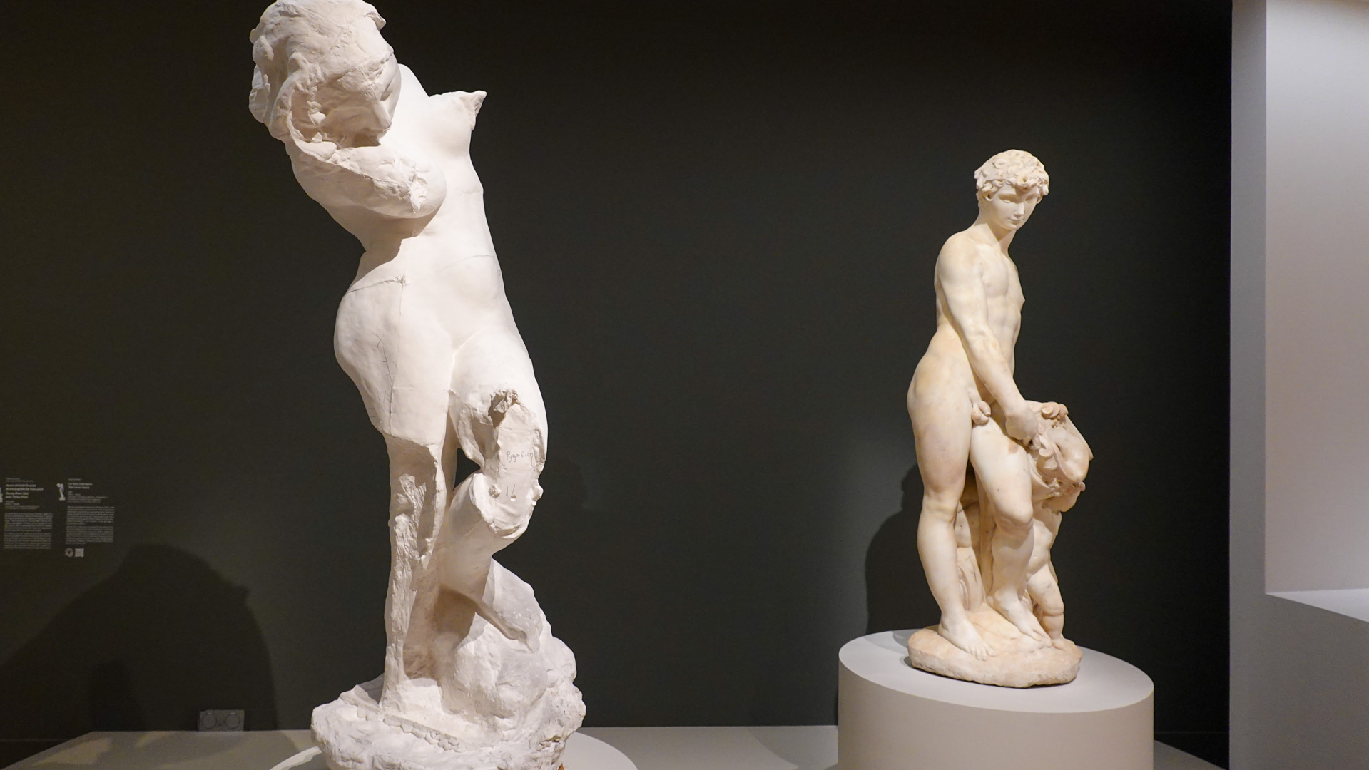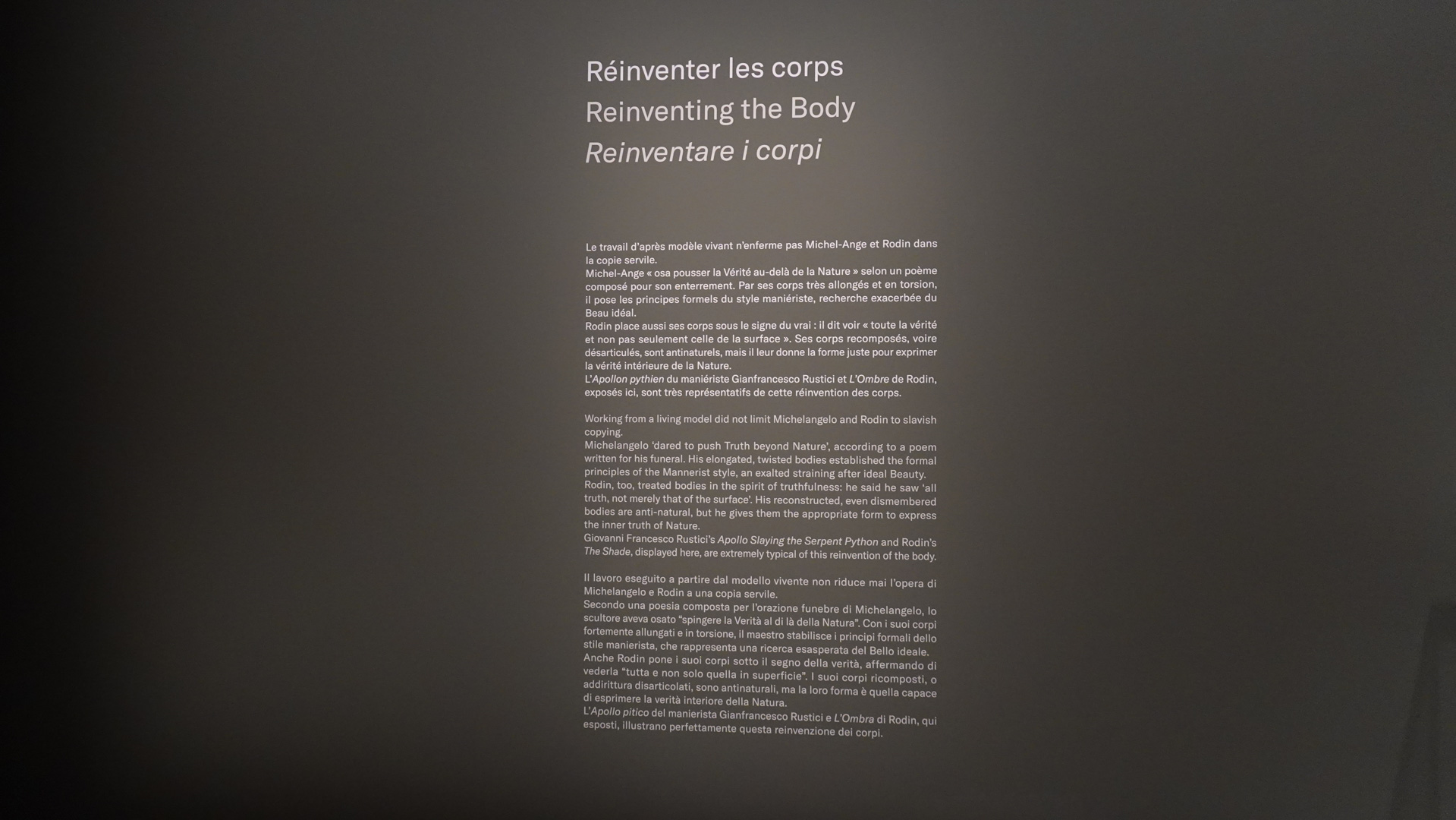 Mais la figure finale dépasse la stricte reproduction naturaliste d'un corps et passe par la recomposition de l'anatomie, aboutissant à la formation de figures idéales chez Michel-Ange, qui en viennent à remplacer la Nature pour la génération suivante, et à la création chez Auguste Rodin de formes que l'artiste veut justes et vraies. Admirateurs et fin connaisseurs de l'art antique, que Rodin a collectionné avec passion, les deux artistes se mesurent à ce grand modèle et cherchent à le dépasser.