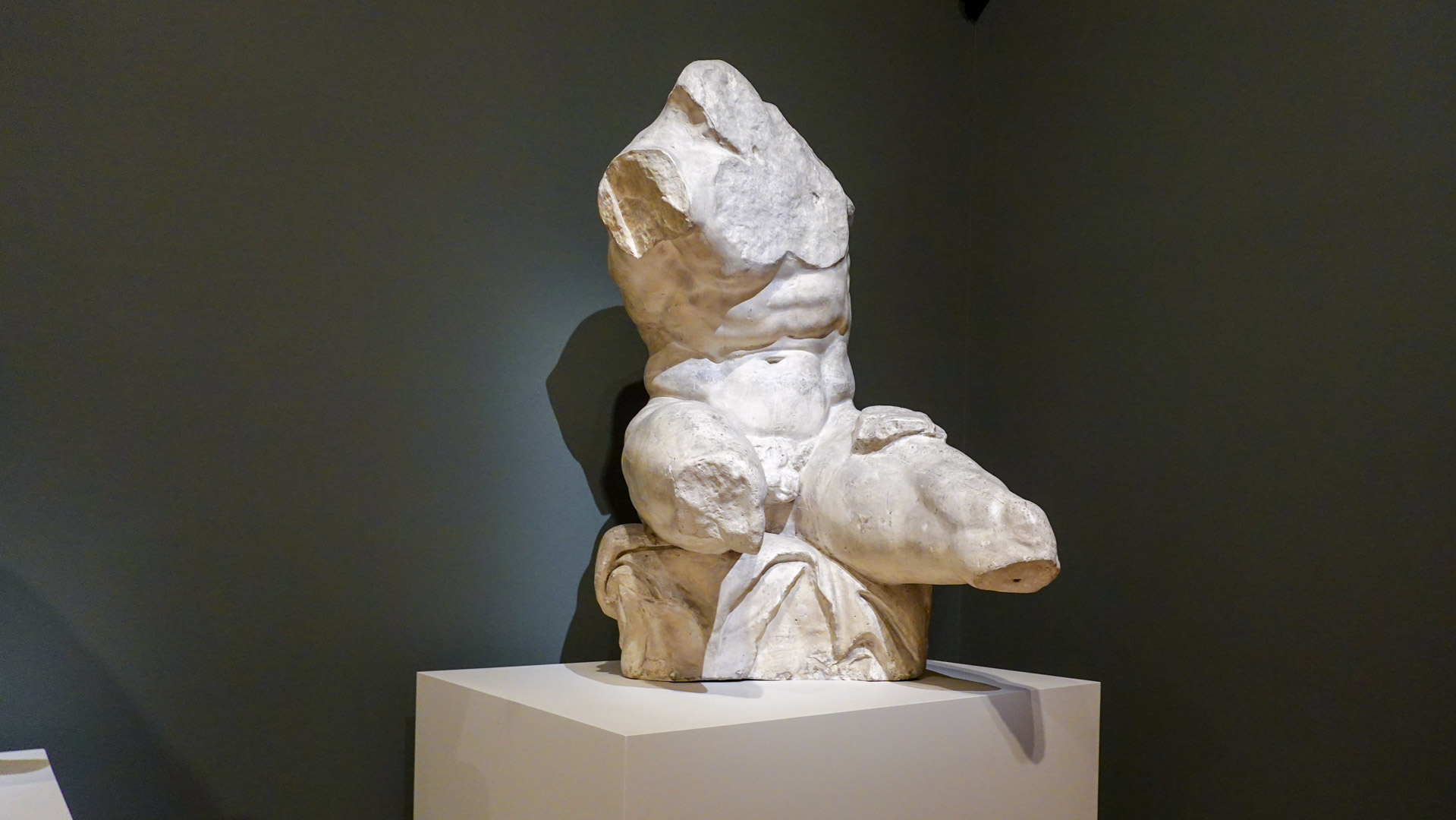 Pour Vasari, ce dépassement incarne le sens profond de la venue de Michel-Ange sur terre. L'avènement du torse comme forme artistique constitue le noyau de cette section : alors que Michel-Ange aurait refusé de restaurer le Torse du Belvédère, reconnaissant la complétude esthétique de cette forme fragmentaire, Rodin est le premier artiste à avoir conçu des torses comme œuvre en soi, instituant ainsi l'un des principaux sujets de la modernité en sculpture.