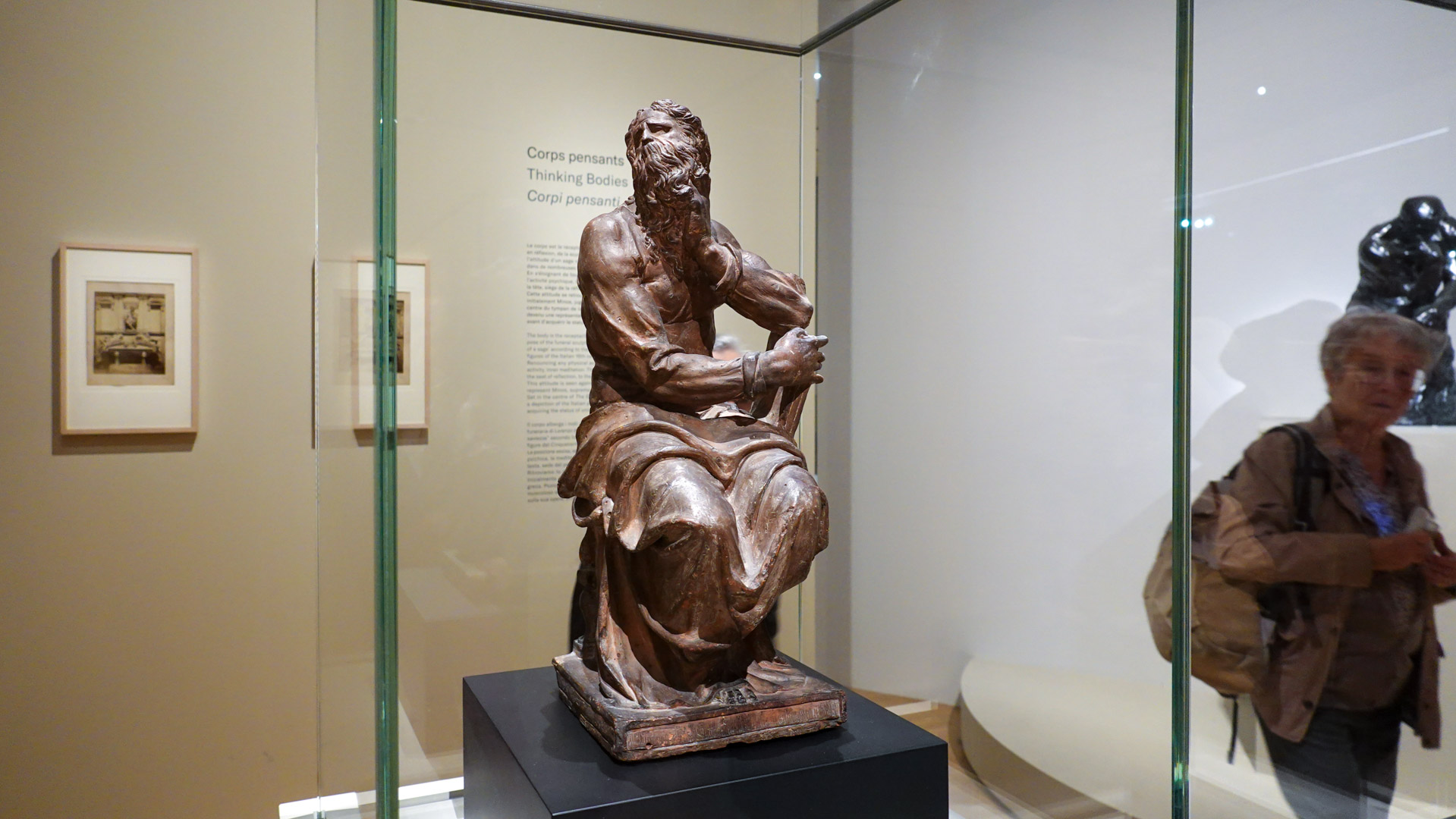 En choisissant le corps comme sujet central de leurs œuvres, Michel-Ange comme Rodin le perçoivent comme animé d'une vie intérieure intense. Leurs figures sont des habitacles de la pensée et du rêve, parfois aux confins de la mort. La psyché en vient à imprimer le corps lui-même et l'enveloppe charnelle devient figure de l'âme dans le Saint Barthélémy de Michel-Ange ou le Balzac d'Auguste Rodin, œuvres auxquelles la Peau de Joseph Beuys et et la Vanitas : robe de chair pour albinos anorexique de Jana Sterbak offrent de puissants échos contemporains. Les anatomies et les visages, les positions des figures et les compositions de groupes expriment sentiments et passions humaines, dont sont traversés le Jugement dernier de Michel-Ange et La Porte de l'Enfer d'Auguste Rodin, respectivement présentés grâce à une copie d'époque et une maquette, tout comme le grand relief en bronze du Serpent d'airain de Vincenzo Danti, sculpteur michelangélesque.