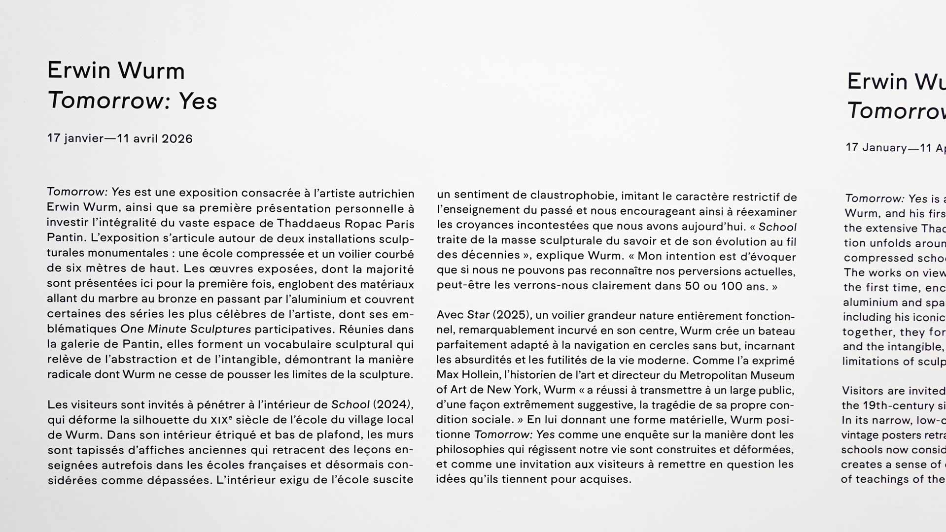 L’exposition s’articule autour de deux installations sculpturales monumentales : School (2024), une école "compressée" que le public peut traverser, et Star (2025), un voilier grandeur nature courbé s’élevant à près de six mètres, conçu pour “prendre des virages”.