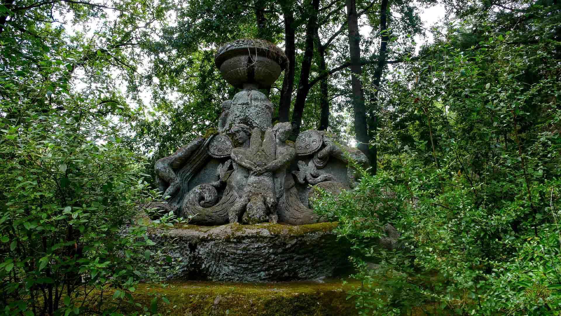 Située au fond d’une vallée dominée par le château des Orsini, la forêt est peuplée de sculptures dispersées au milieu de la végétation naturelle. Les jardins présentent un ensemble de thèmes de la mythologie grecque et de la Renaissance évoquant des épisodes d’œuvres baroques telles que le Songe de Poliphile de Francesco Colonna, ou le poème Floridant de Bernardo Tasso ou encore le Roland furieux de L'Arioste.