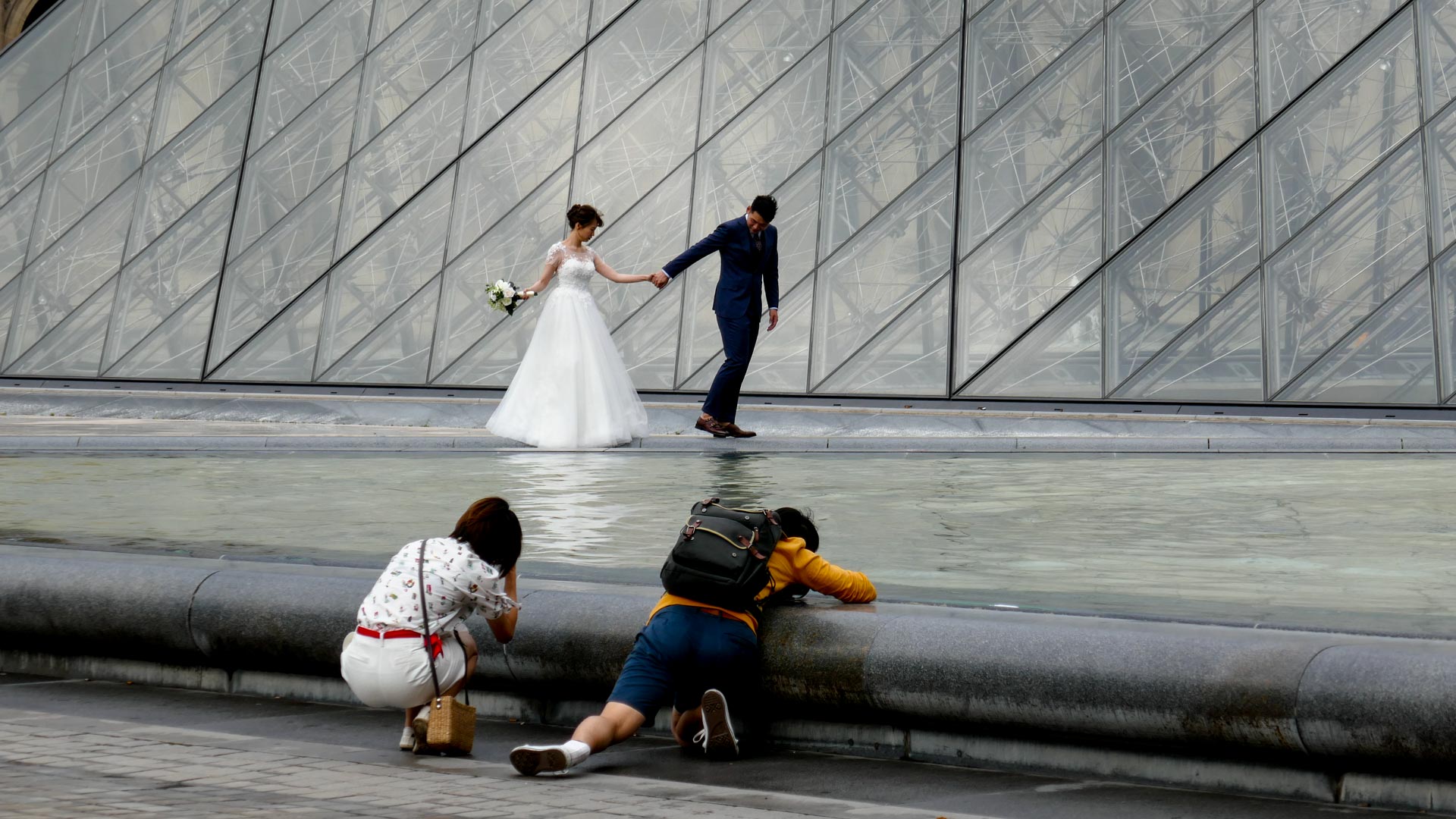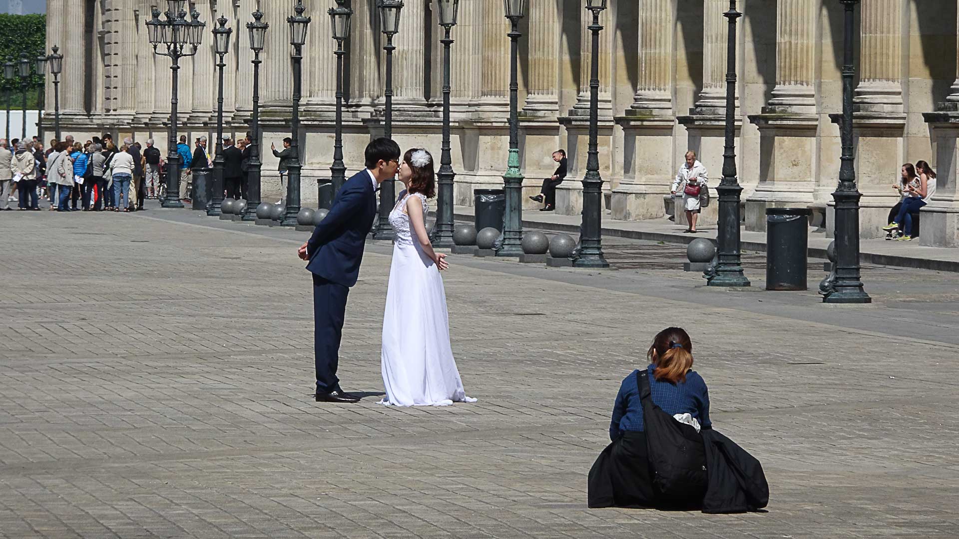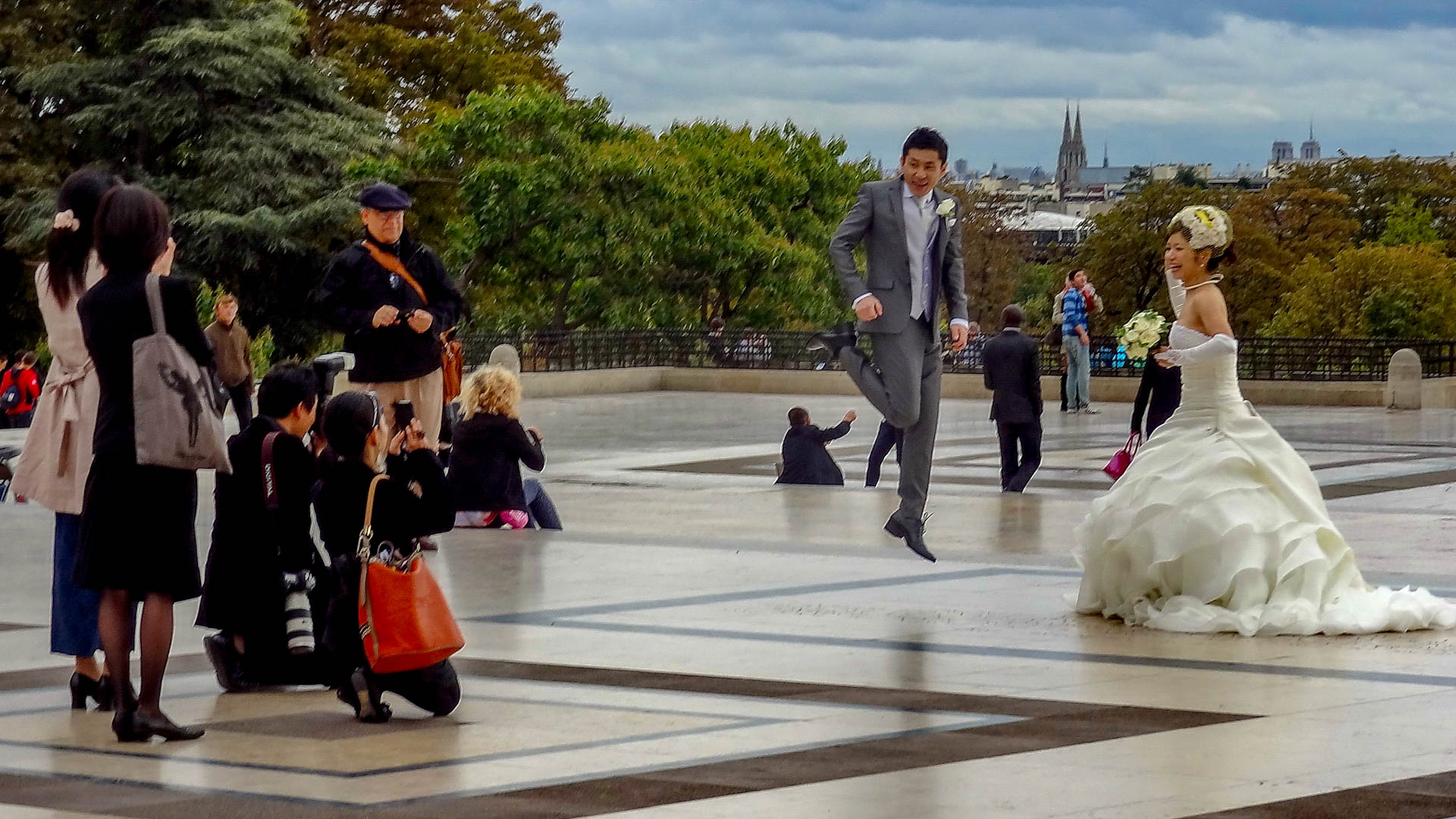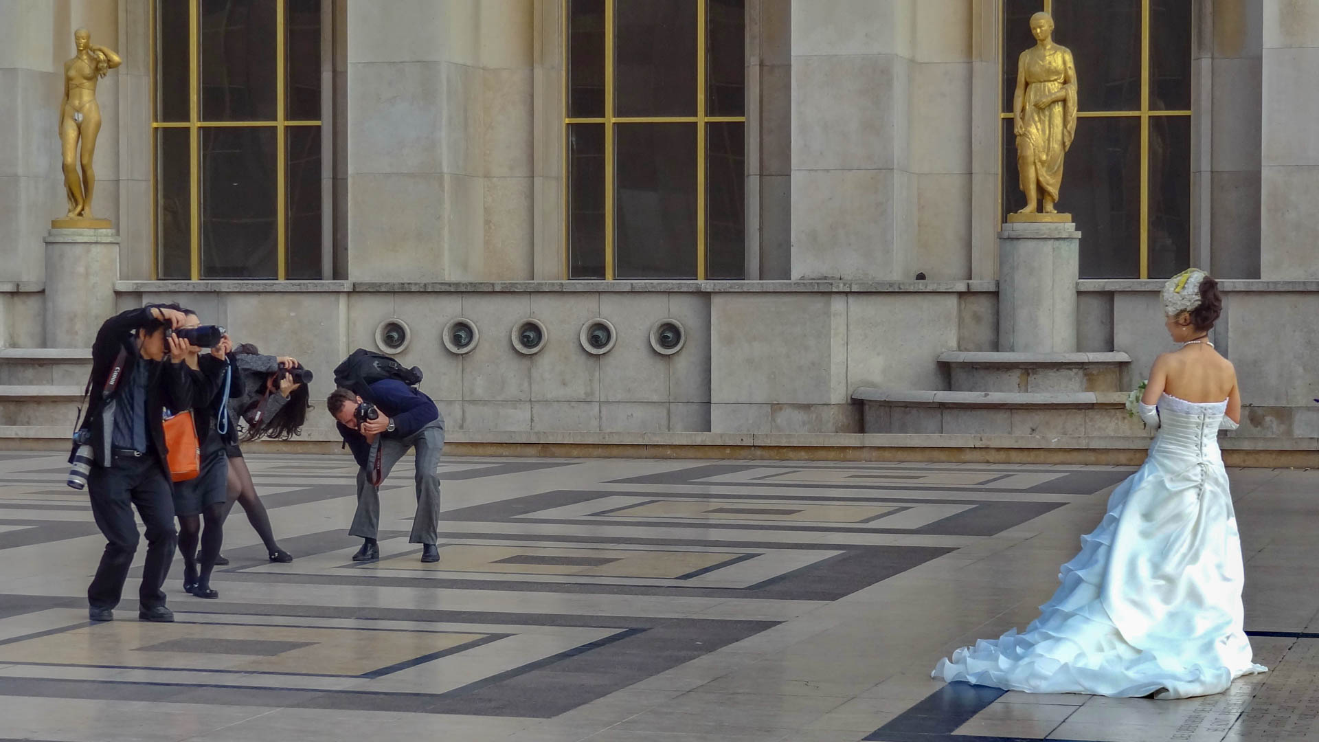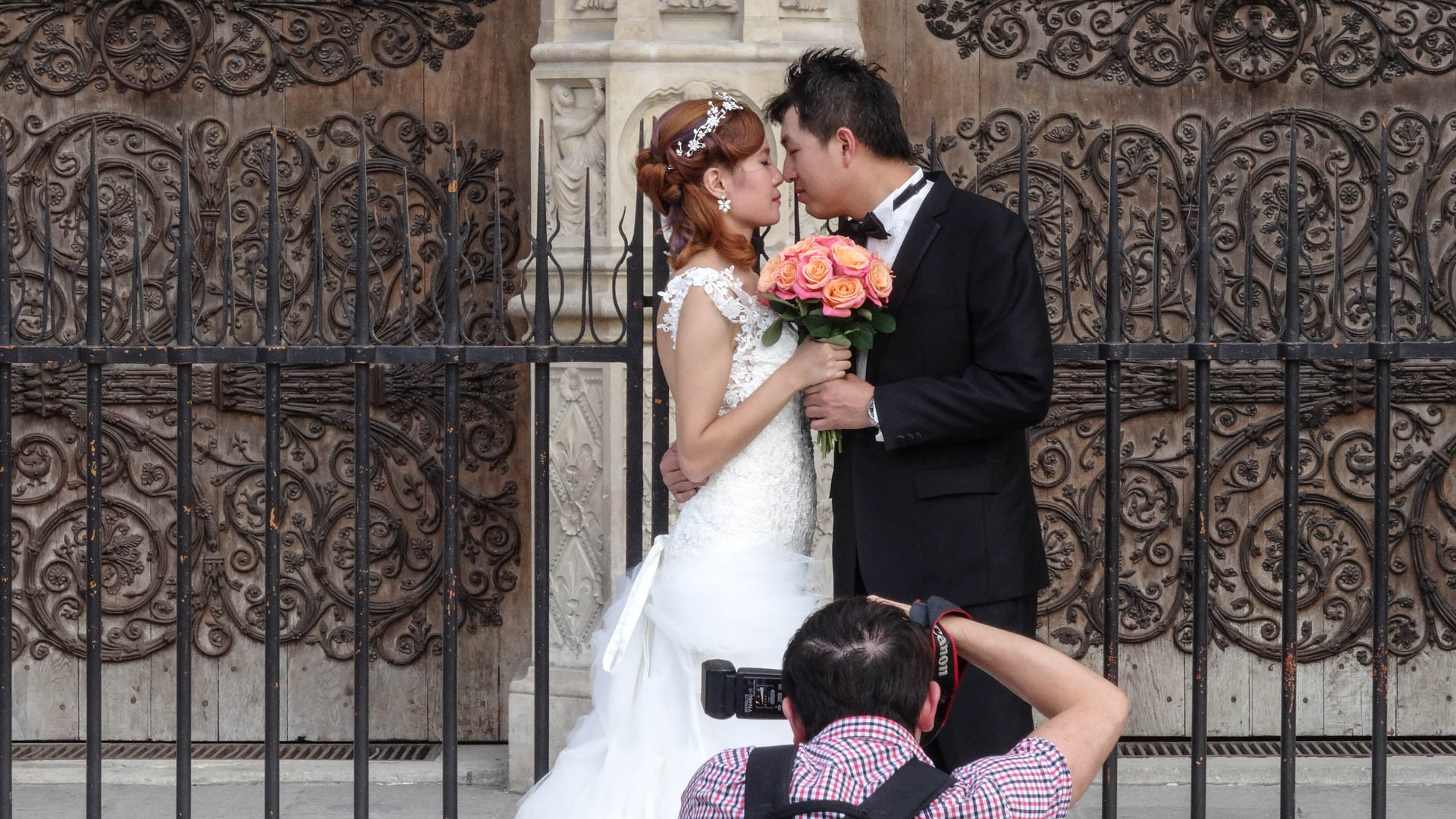 Les shoots parisiens de photos de mariages tiennent plus de l'exploit sportif que du voyage romantique.
