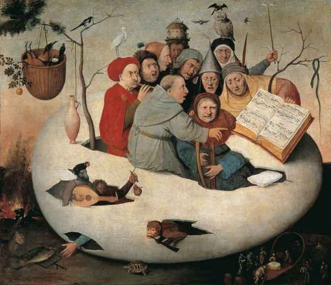 La multiplication des fous donne lieu à différents mythes qui prétendent expliquer leur genèse (notamment avec le thème de l’œuf), et leur expansion sur toute la terre, en particulier avec l’idée de la Nef des fous. Le tableau de Jérôme Bosch intitulé par la critique moderne La Nef des fous comme le livre de Brant, n’est en réalité que le fragment d’un triptyque démembré. Le message général du tableau renvoyait à l’univers de la folie, mais aussi à d’autres motifs : la peinture des vices, des fins dernières et l’incertitude du destin humain. Pieter Bruegel l’Ancien, comme Bosch, continue parfois d’user de la figure du fou de manière traditionnelle. Mais le plus souvent, il lui donne lui aussi une valeur nouvelle : le fou passe au second plan, il souligne, en tant que témoin, la folie des hommes.