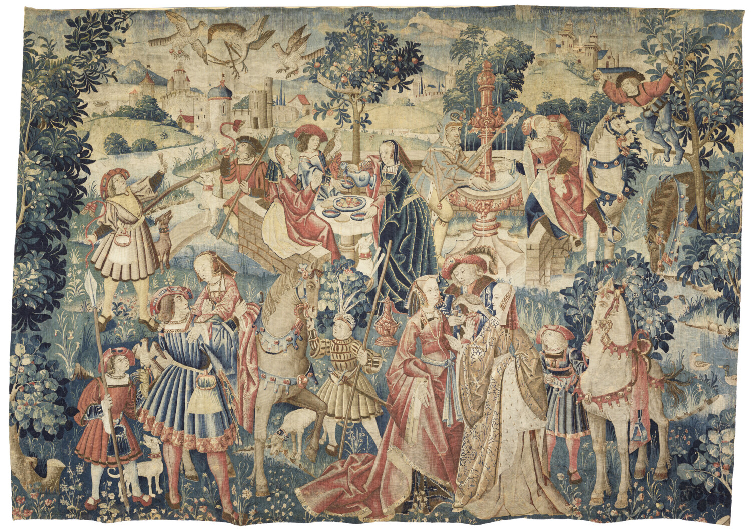 Dans la littérature courtoise, le jardin est le lieu par excellence de la rencontre des amants. Mais, avec le développement de la gravure au XVe siècle, un nouveau personnage s’introduit dans le jardin d’amour : le fou, qui, par sa figure grinçante et ses gestes souvent obscènes, réduit l’amour à la luxure. Personnage lubrique, il devient le symbole de la luxure. Les gravures servent de modèles à tous types de support : orfèvrerie, vitrail, ou objets de la vie quotidienne sont envahis par ce fou sarcastique. Il dénonce la luxure des vieux barbons qui se laissent enjôler par de jeunes femmes qui en veulent à leur argent tout autant que celle des plus jeunes qui se laissent aller à la débauche dans les étuves ou maisons publiques, tel le Fils prodigue de la parabole.